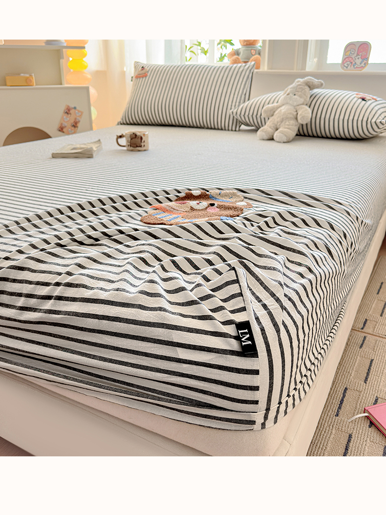 (总)乐美家纺 2025新款A类高克重刺绣牛奶绒床笠三件套,好朋狗,森林乐队,熊熊派对,小熊奶盖,萌宠派对,萝莉猫