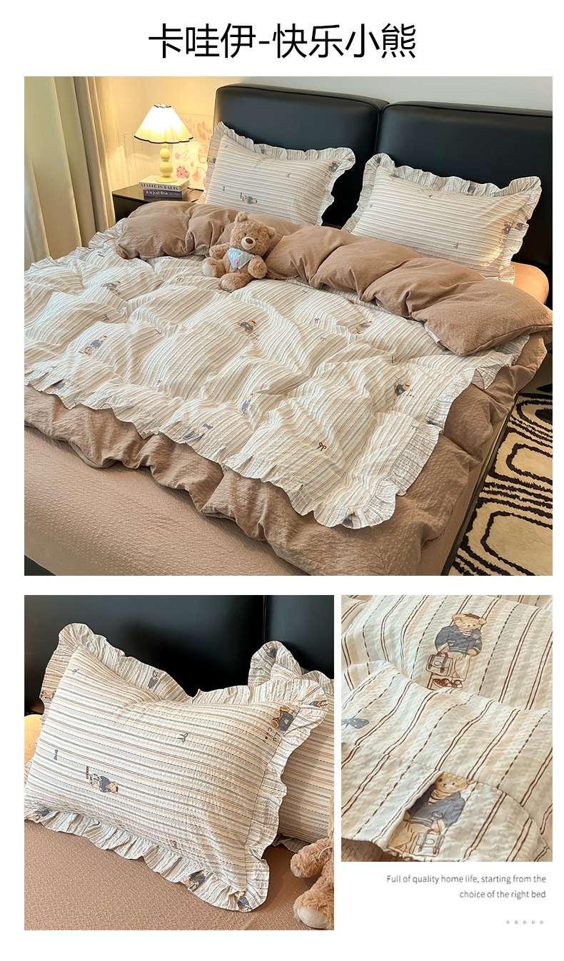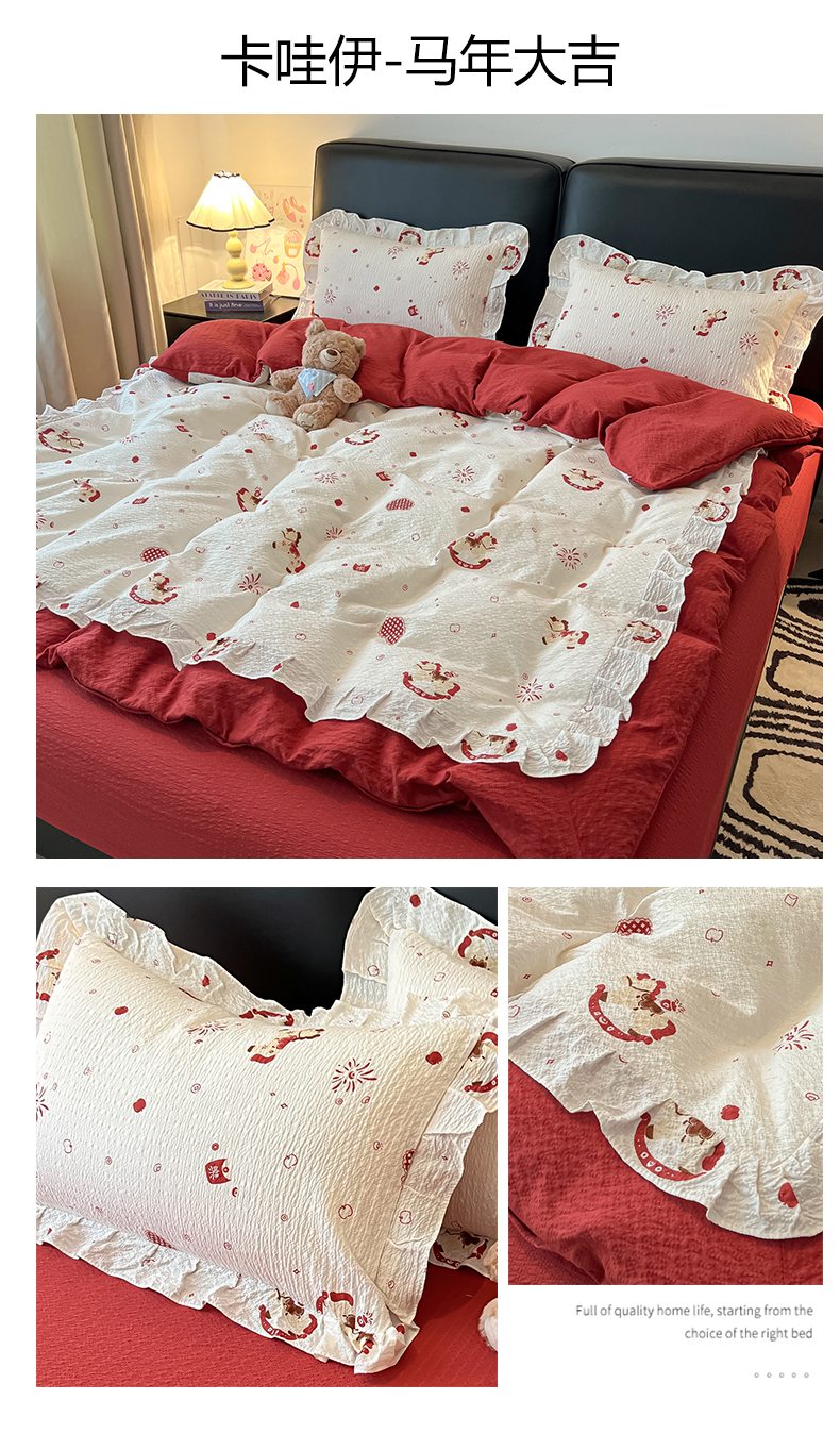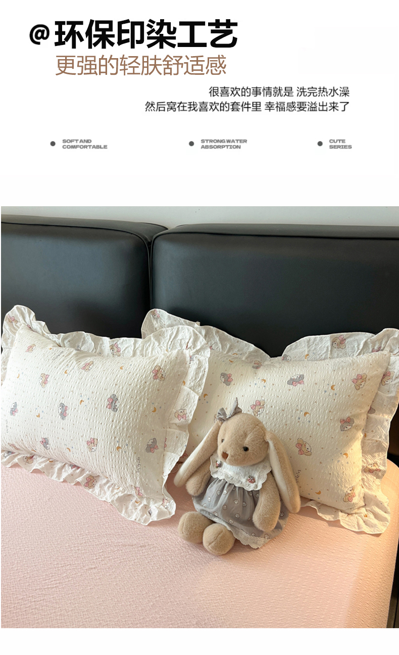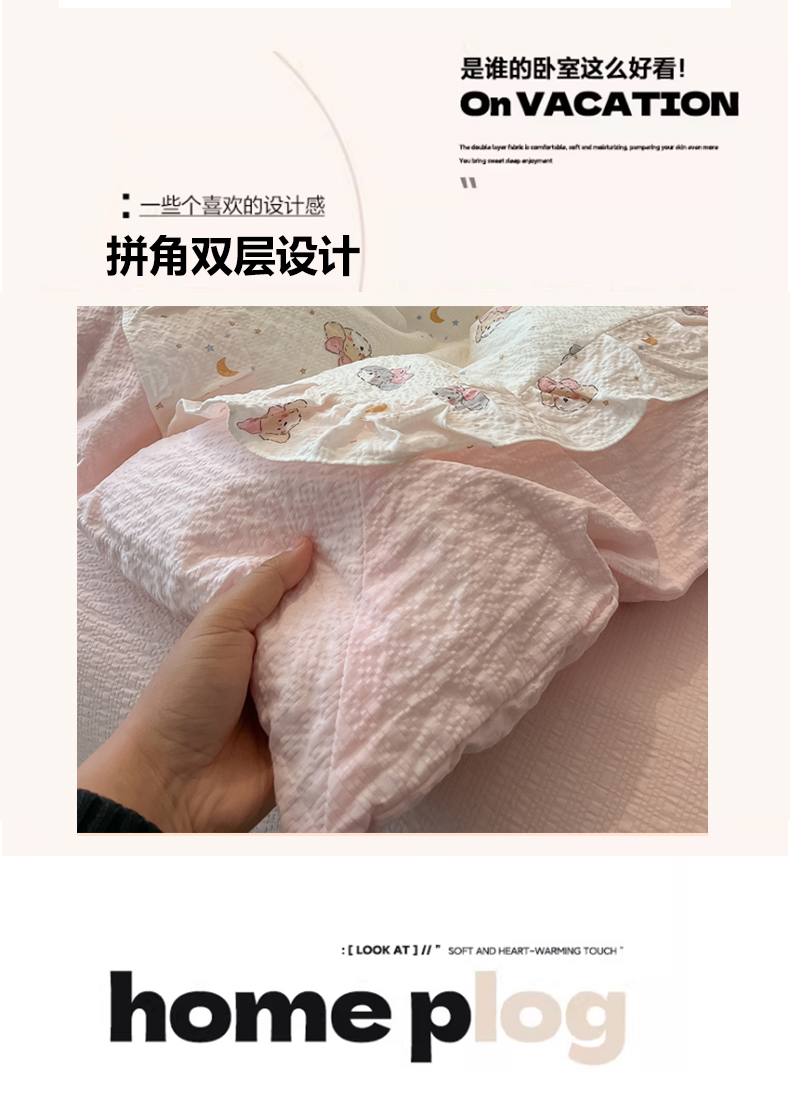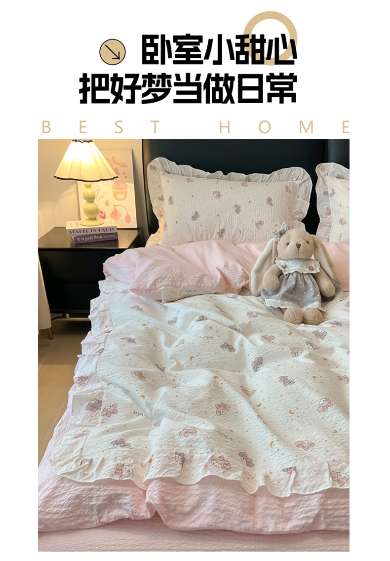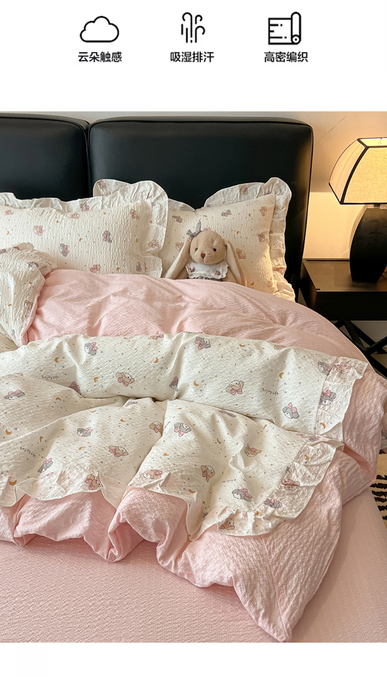 当前位置: 91家纺网 > 商品网购 > 床品套件 > 四件套 > 其它四件套 > 子钦家纺 2026春夏新款提花泡芙棉花边拼角工艺床单床笠四件套-卡哇伊 卡哇伊-蝴蝶结狗