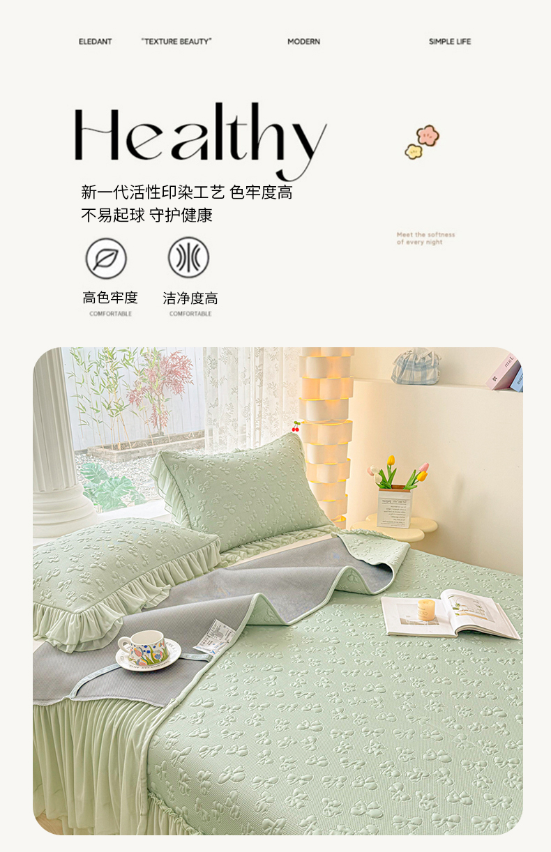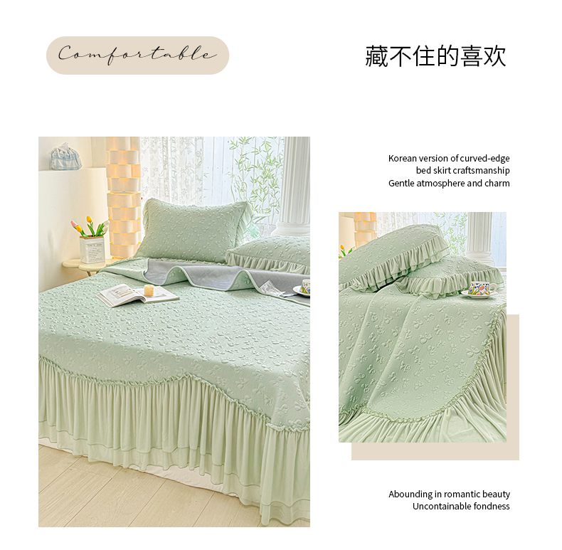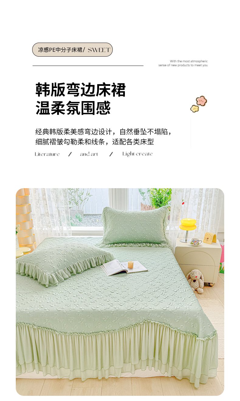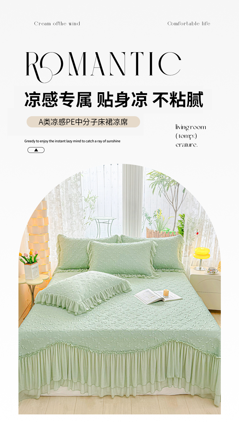 金绣美居 2026新款PE高分子复合凉感席韩版床裙款凉席三件套-小确幸 小确幸-幸运绿