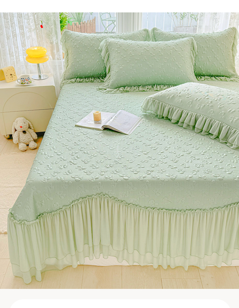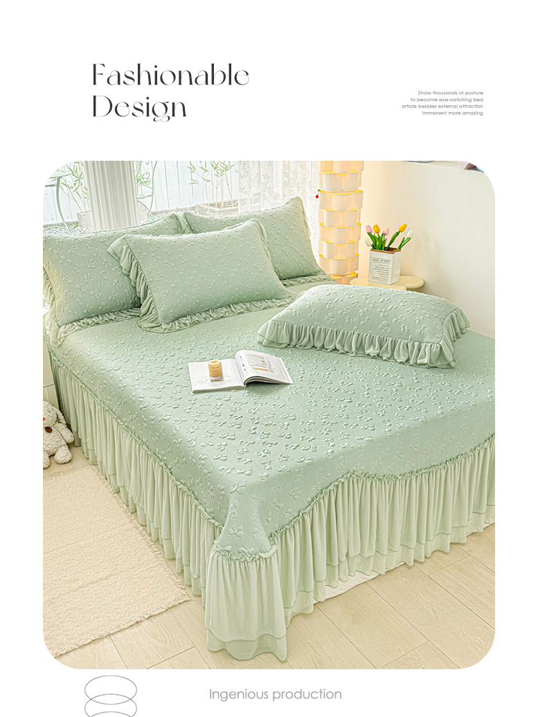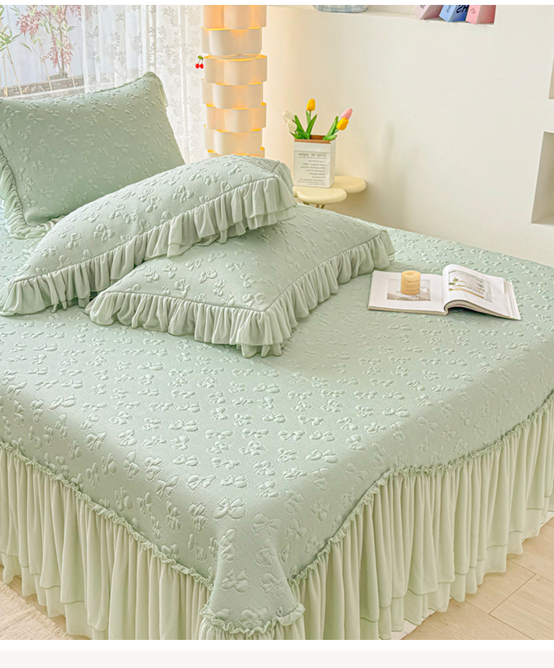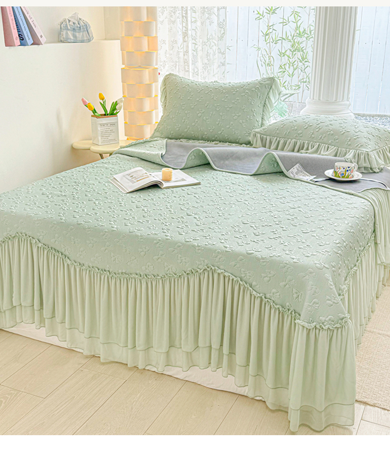 金绣美居 2026新款PE高分子复合凉感席韩版床裙款凉席三件套-小确幸 小确幸-幸运绿