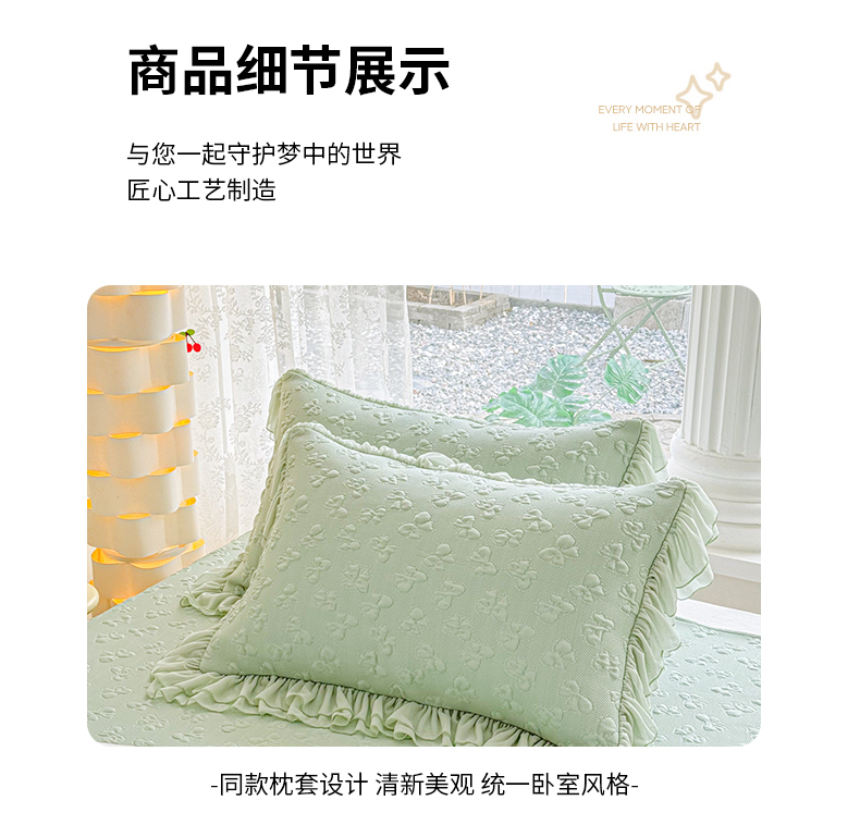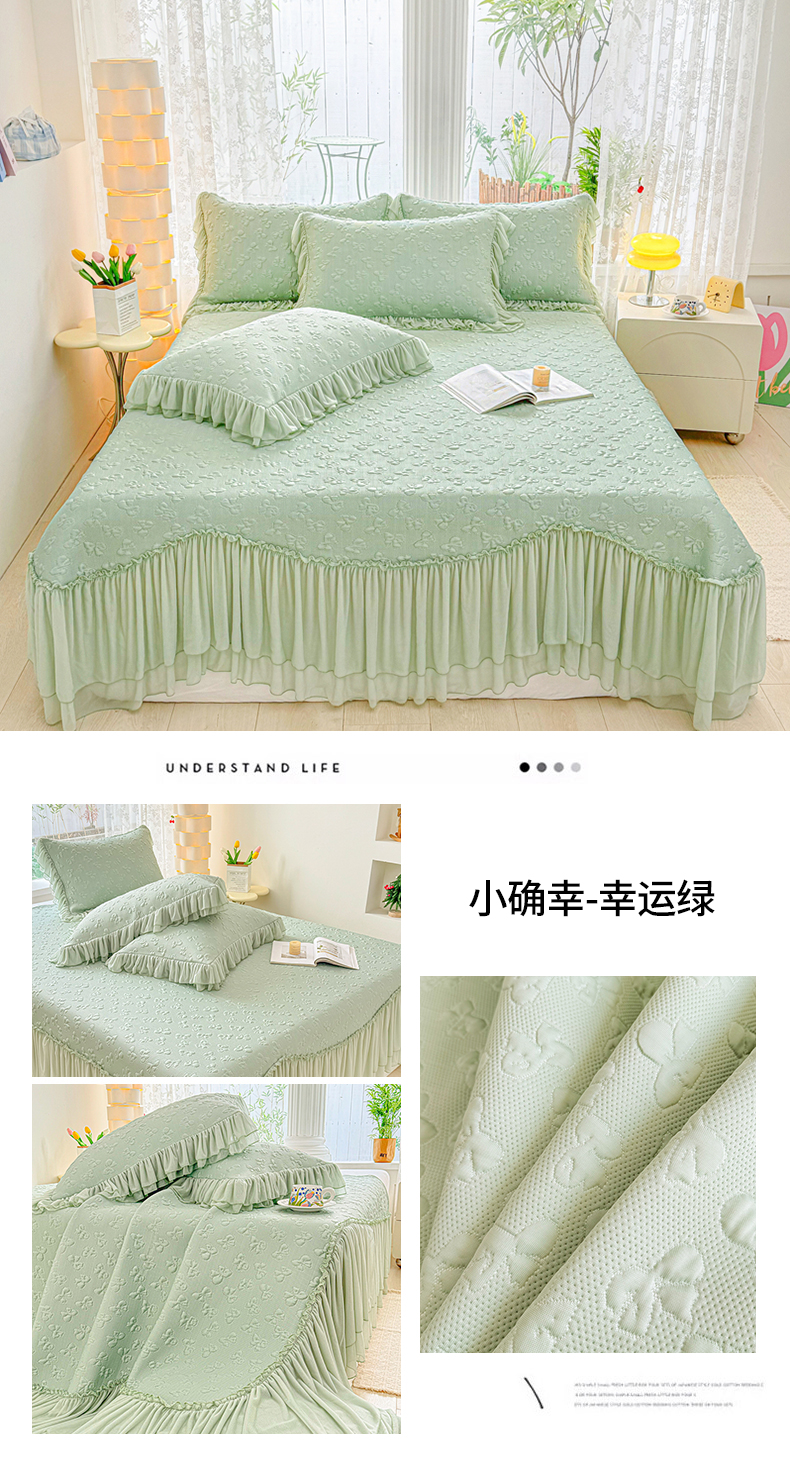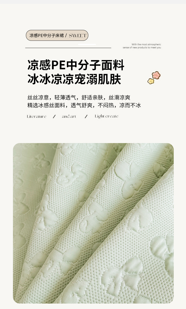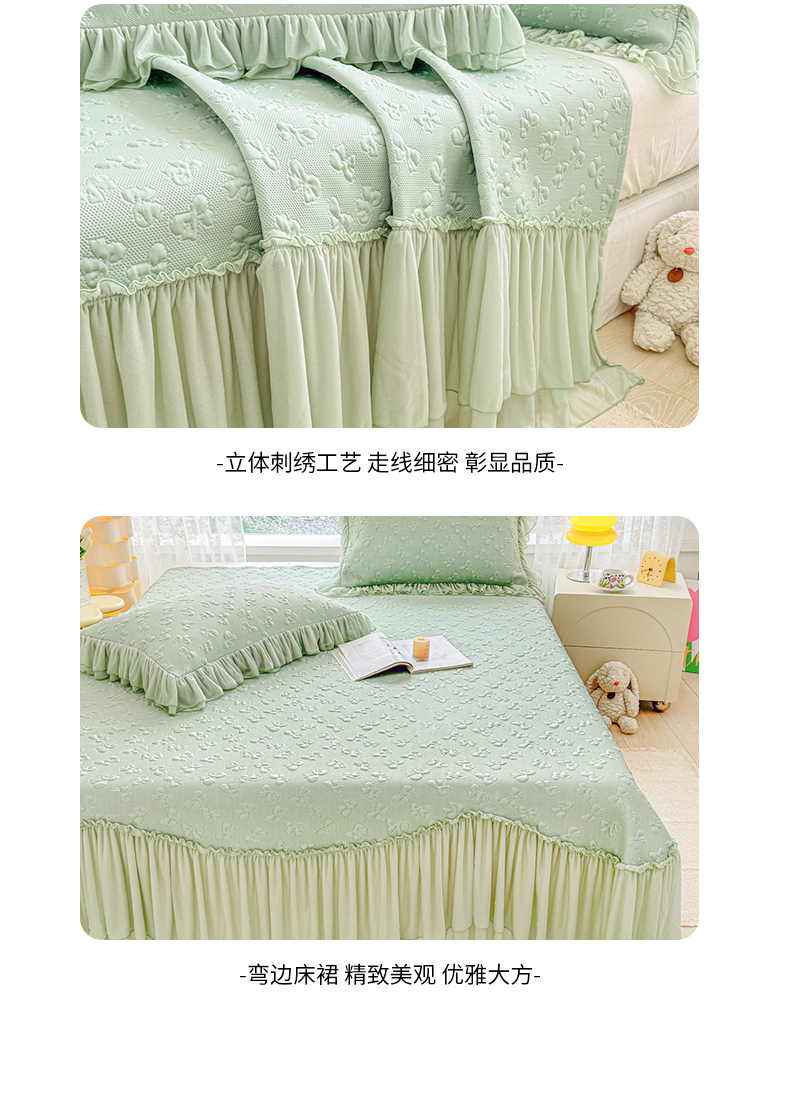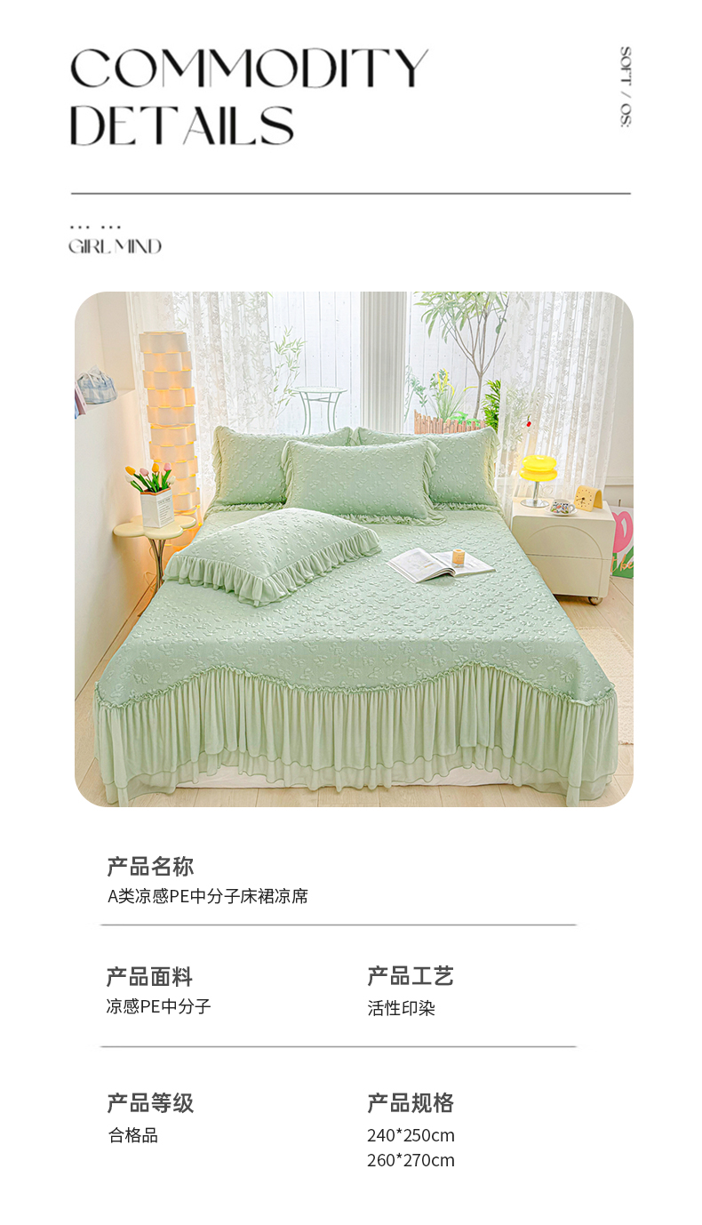 商品名称:金绣美居 2026新款PE高分子复合凉感席韩版床裙款凉席三件套-小确幸 小确幸-幸运绿