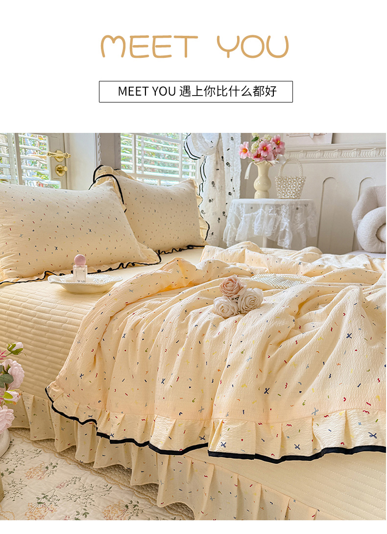 韩约家纺 2026春夏新款皱皱纱床盖款夏被夏凉被空调被四件套 安娜花园
