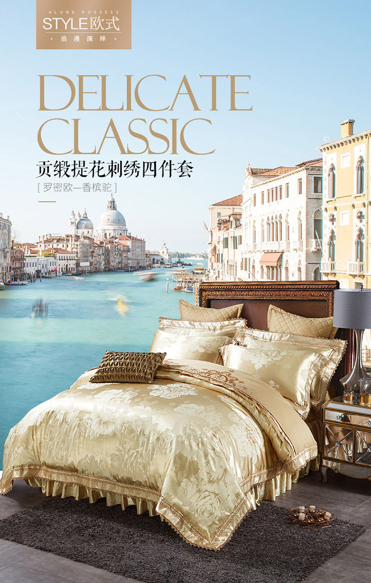 当前位置: 91家纺网 > 商品网购 > 床品套件 > 四件套 > 全棉普通四件套 > 兴美佳家纺 欧式刺绣花夹棉床笠式床罩床裙四件套罗密欧—香槟驼