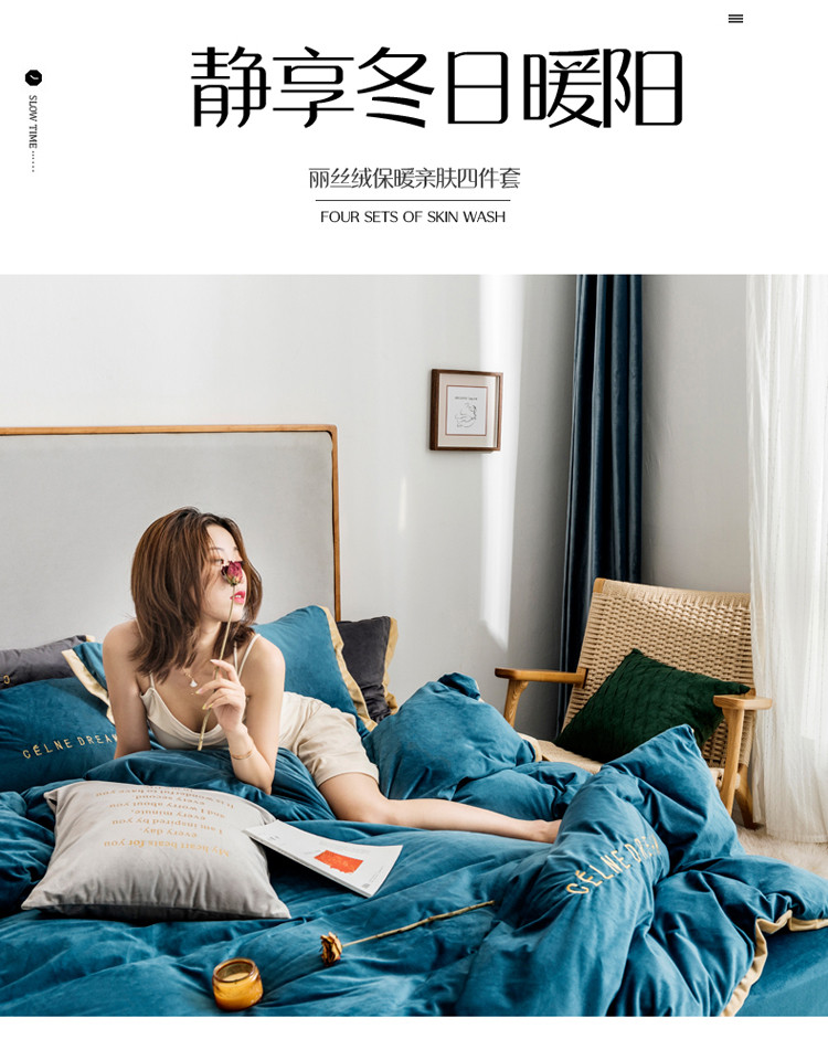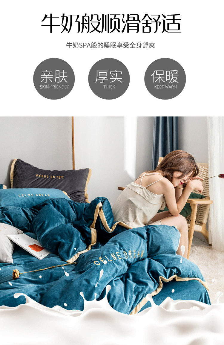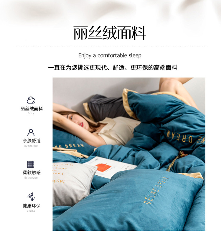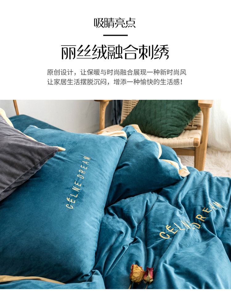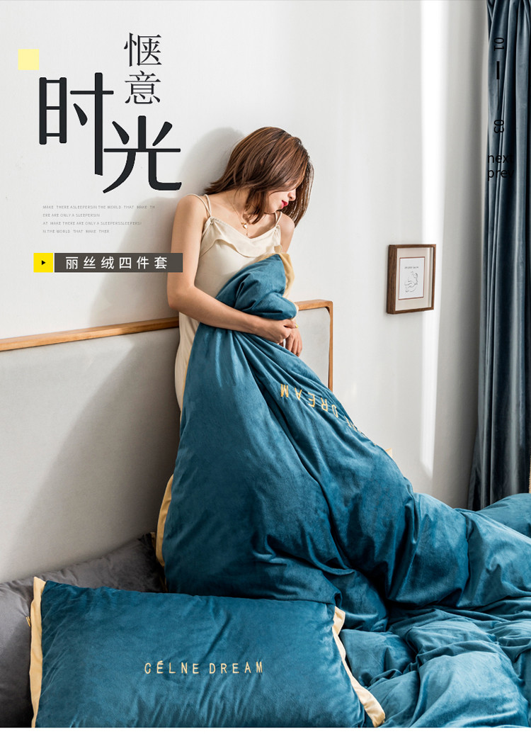 商品名称:安妮 2020赛琳娜丽丝绒水晶绒四件套床单款《带包装》月光蓝