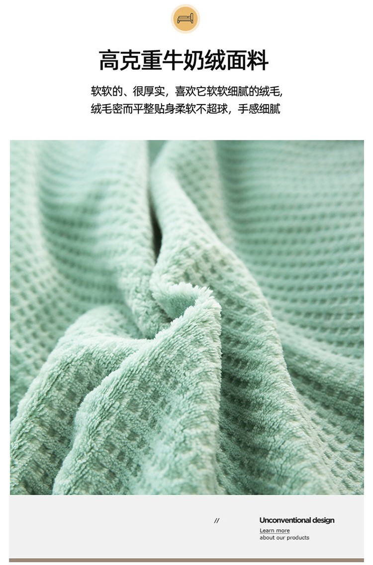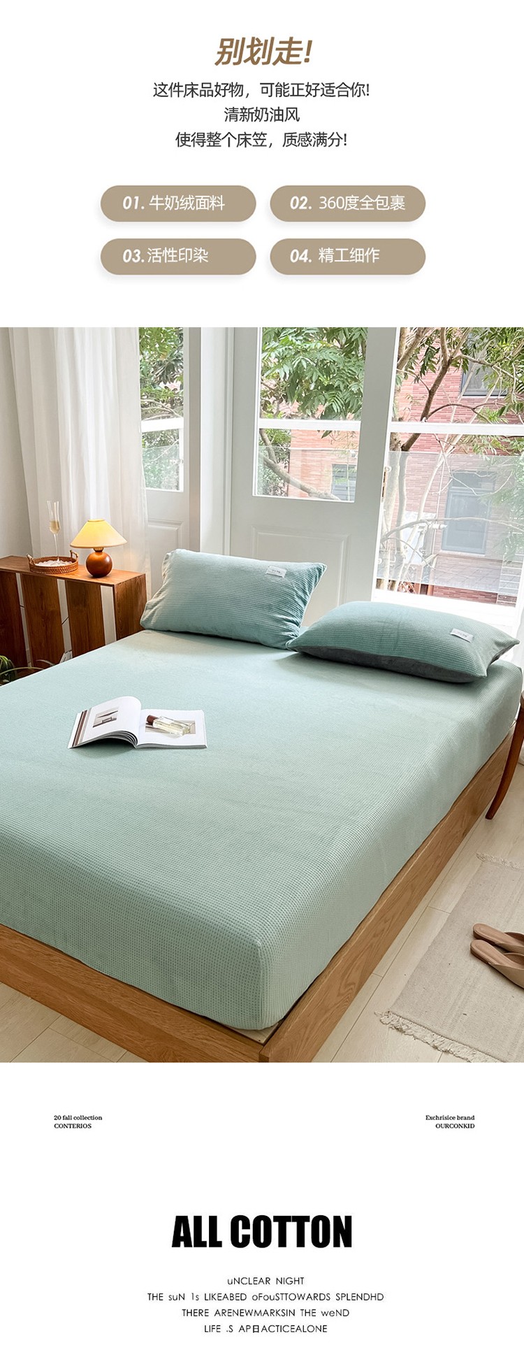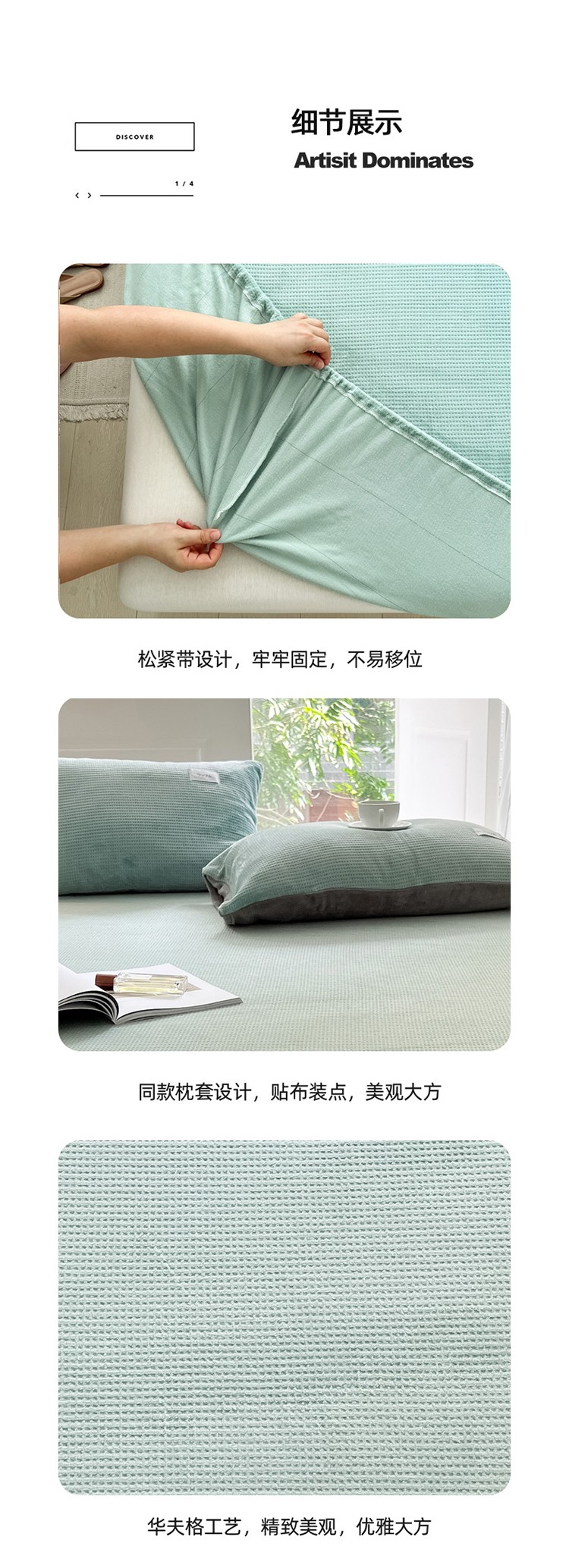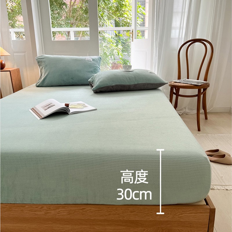 商品名称:山舍 2022新款高克重华夫格牛奶绒床笠和床笠三件套 浅绿