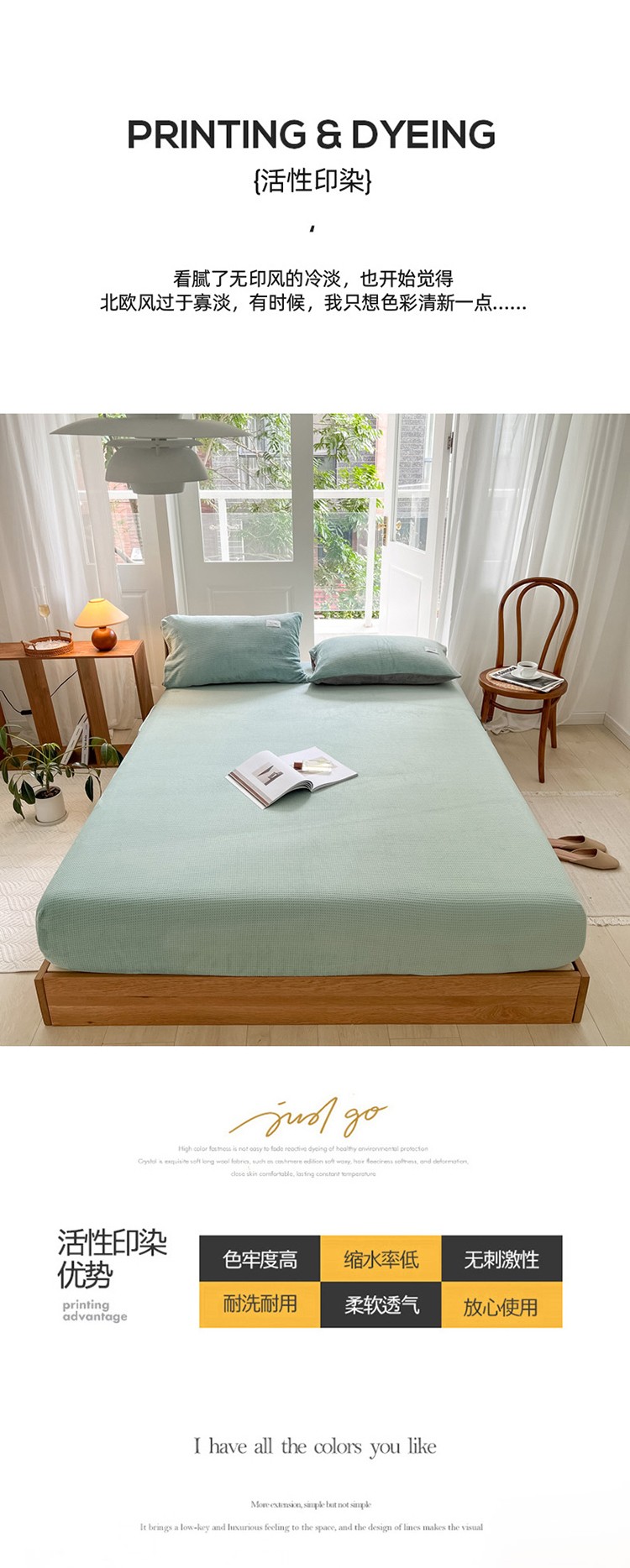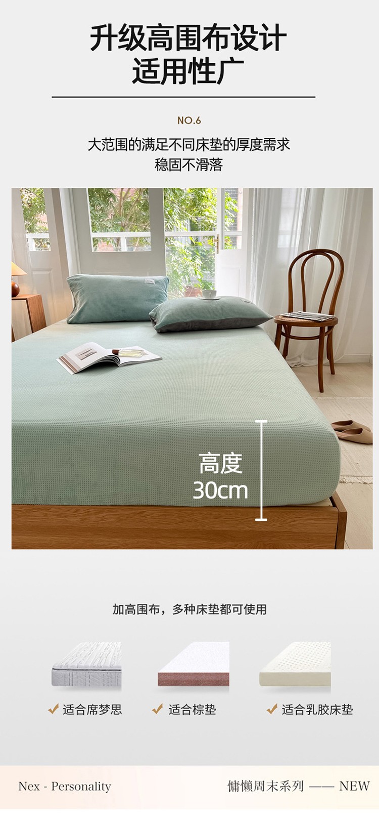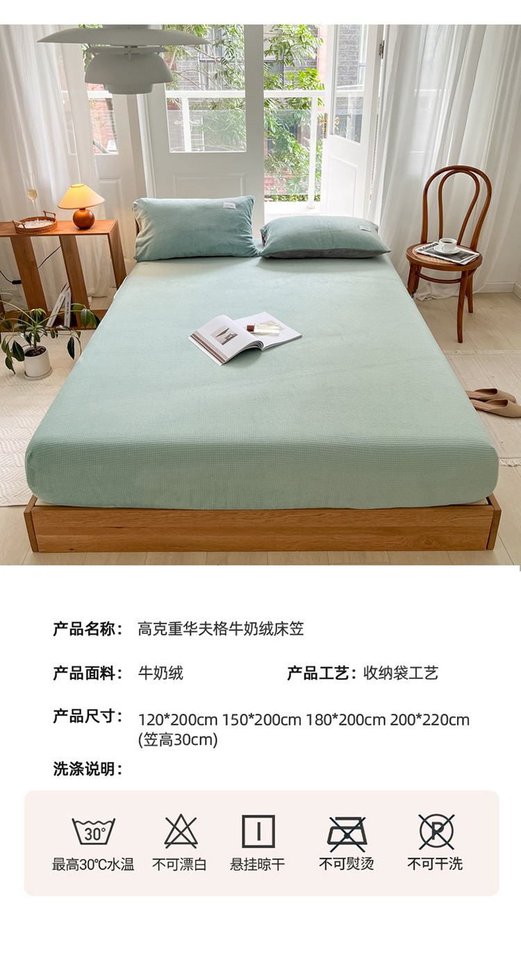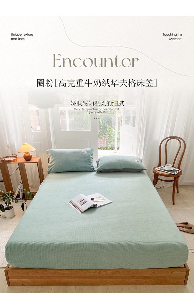 商品名称:山舍 2022新款高克重华夫格牛奶绒床笠和床笠三件套 浅绿