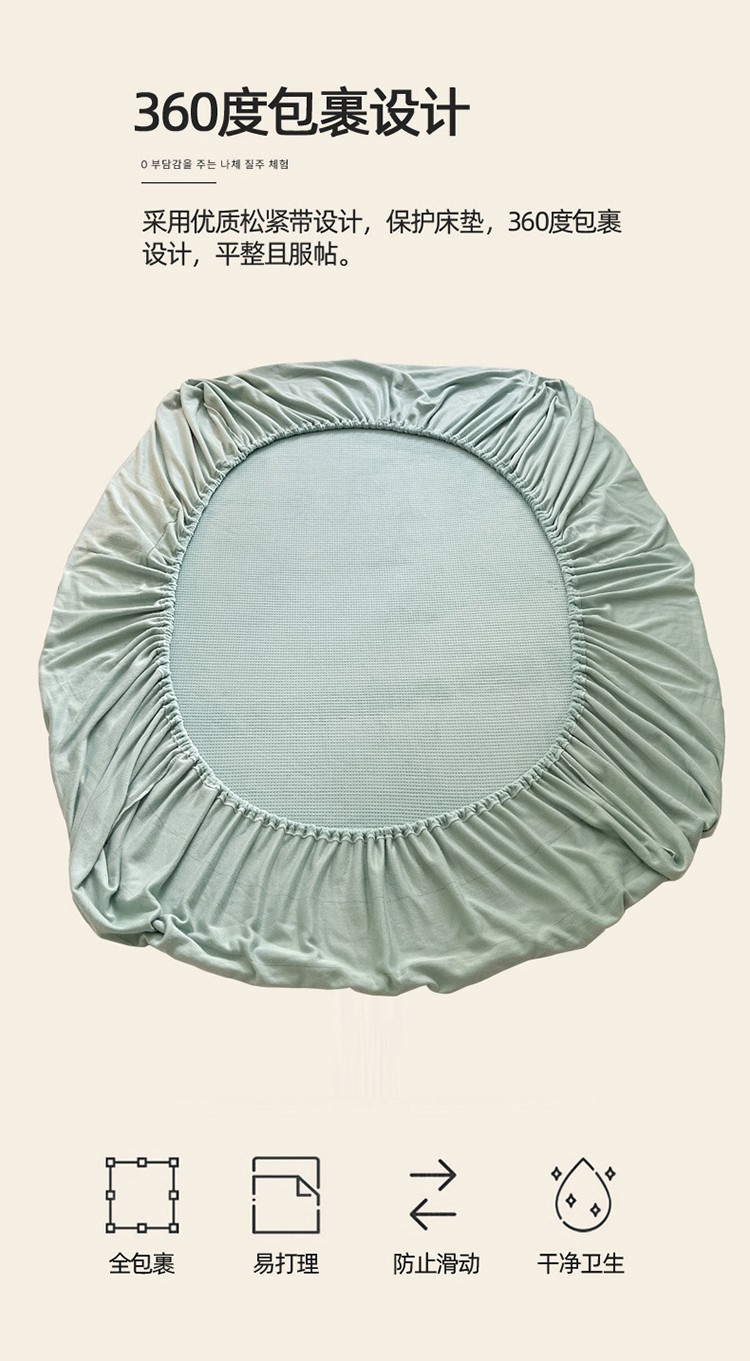 山舍 2022新款高克重华夫格牛奶绒床笠和床笠三件套 浅绿