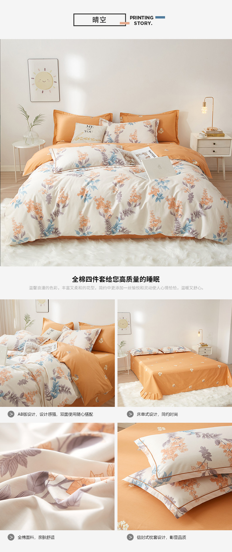 商品名称:沐白家居 2023全棉13376全棉印花四件套 晴空