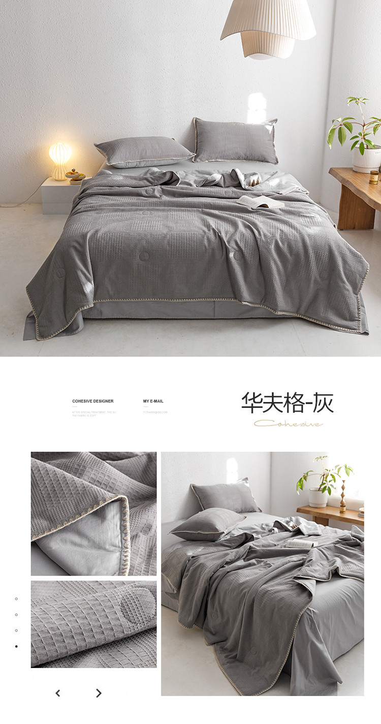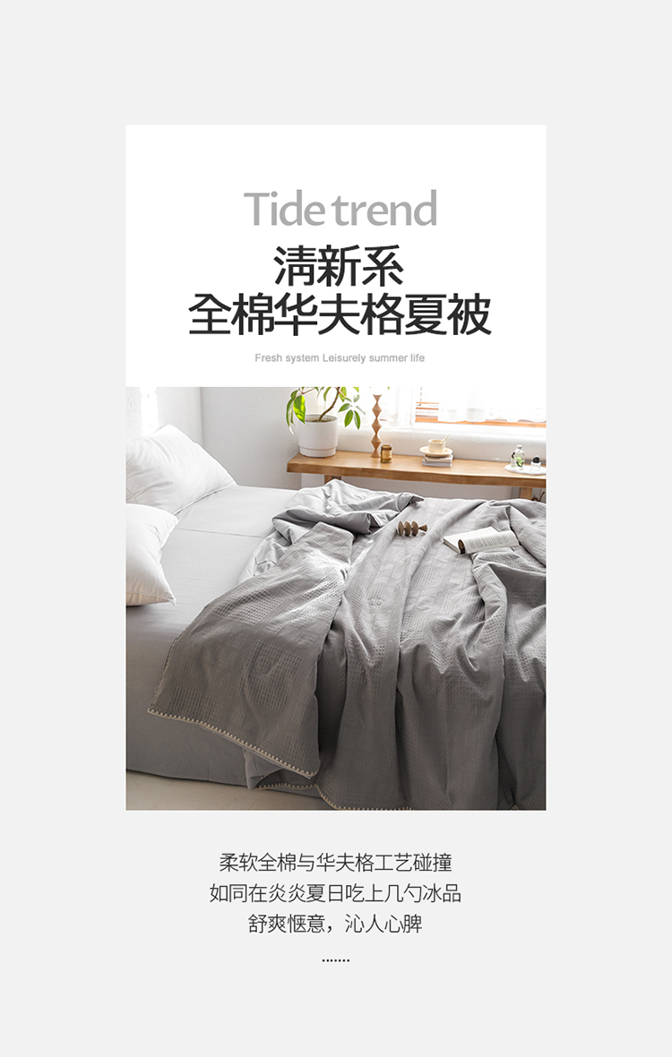 商品名称:沐棉家居 2023新款全棉华夫格夏被四件套 华夫格-灰