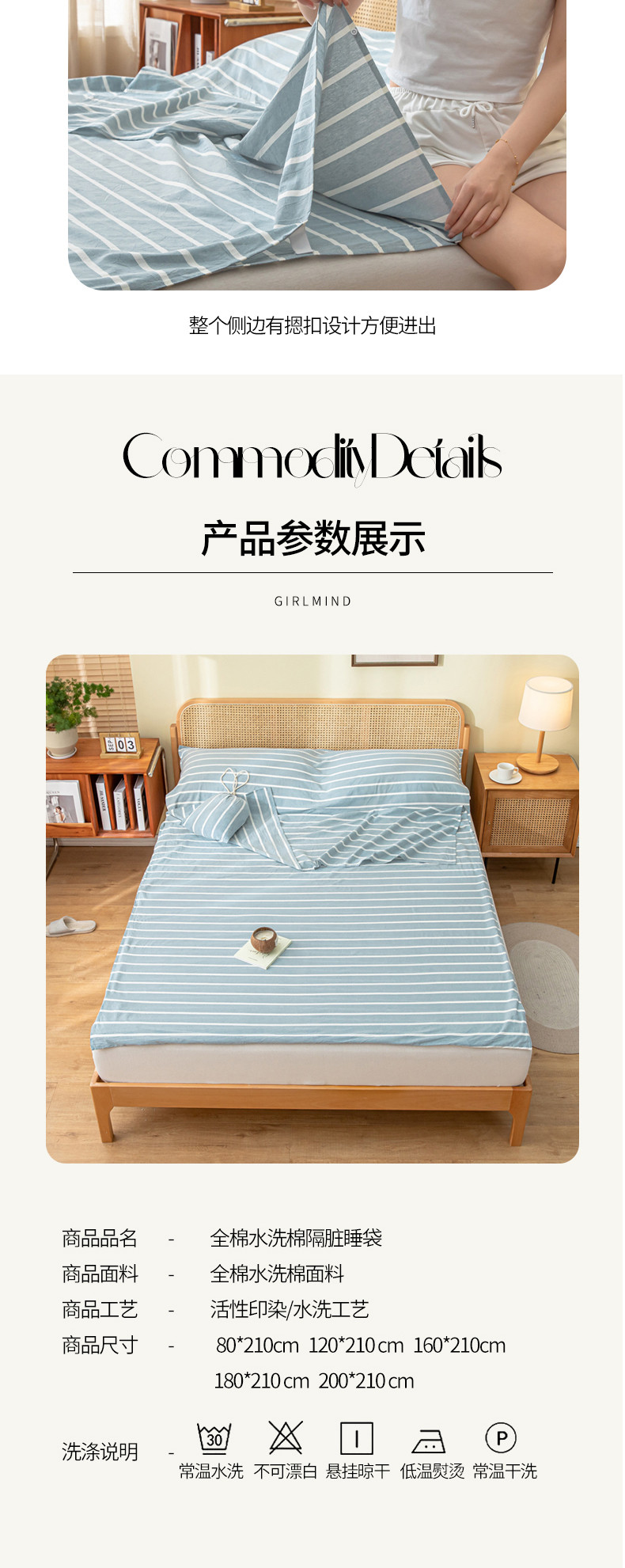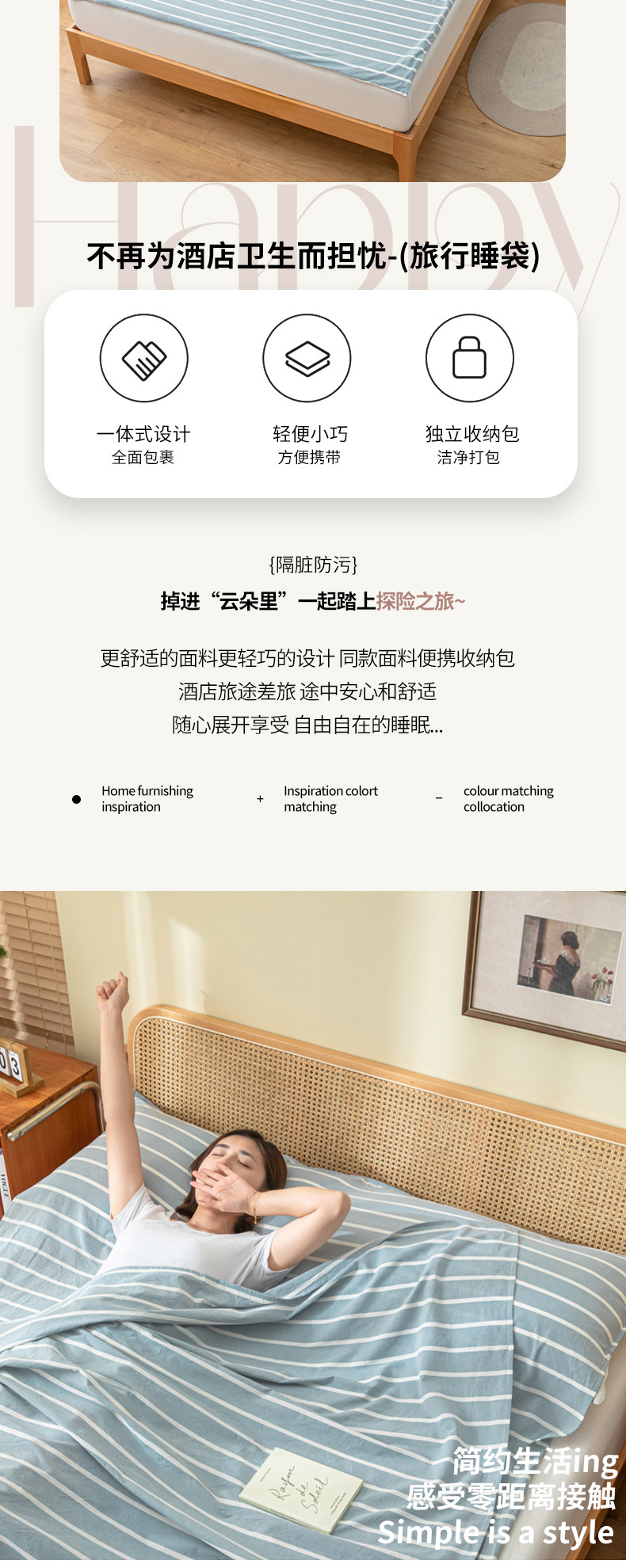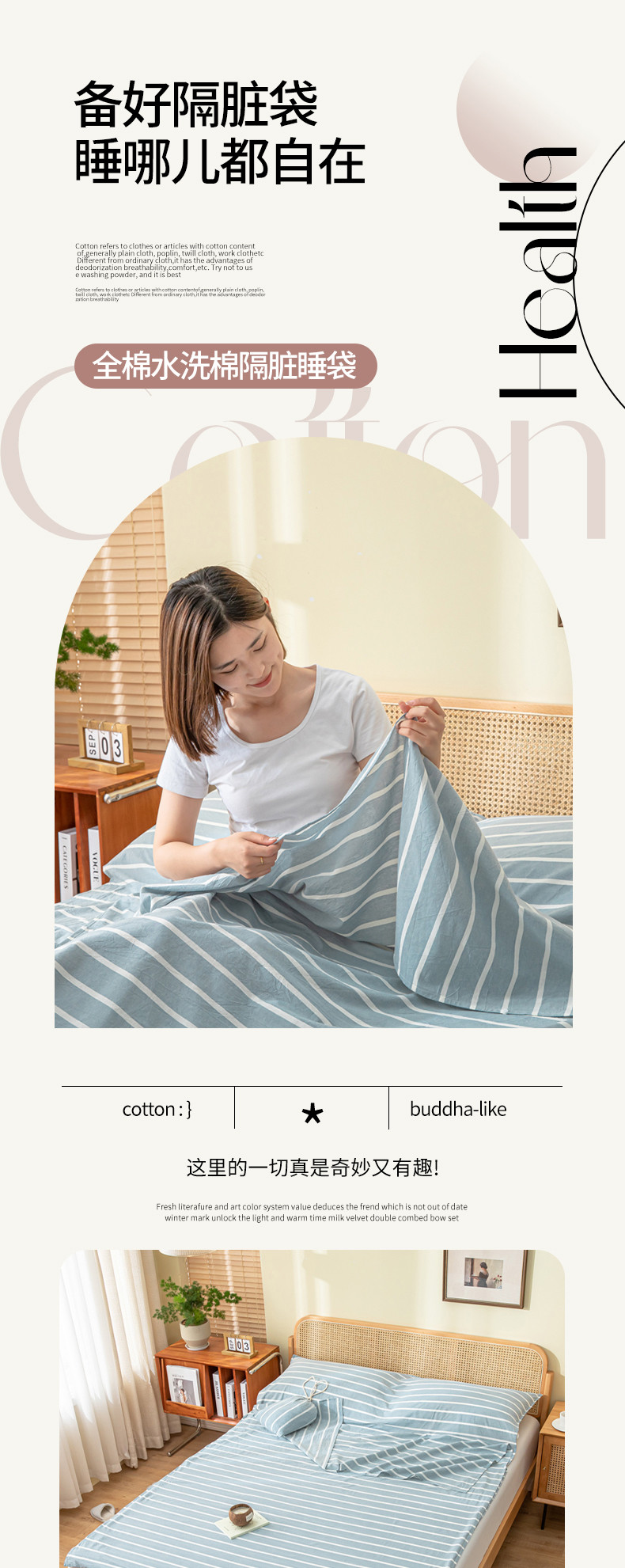商品名称:格子铺 2023新款隔脏睡袋旅行袋 睡袋-蓝条纹