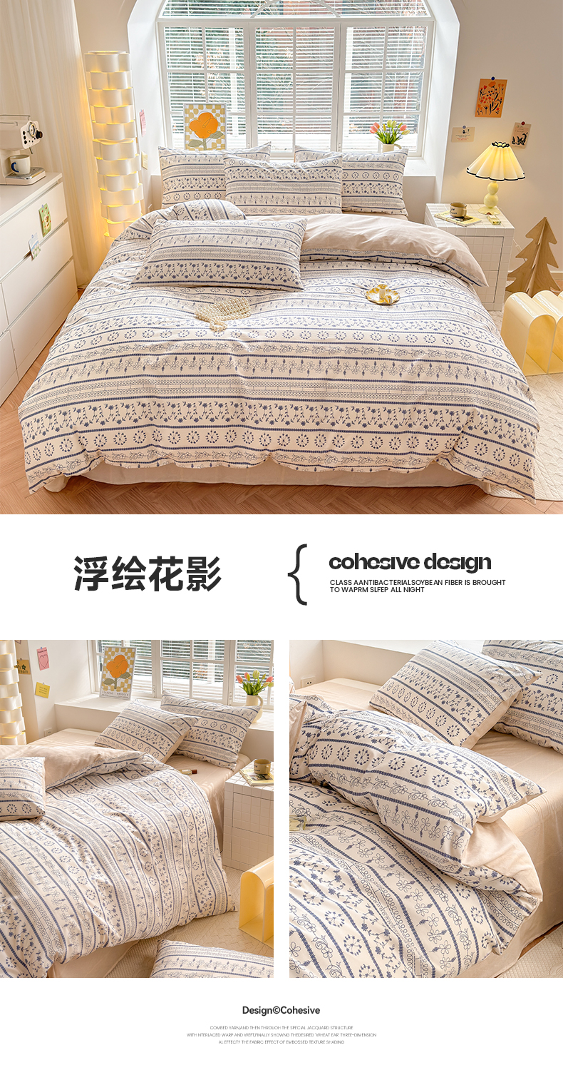 沐棉家居 2024新款小清新全棉13372印花四件套 浮绘花影