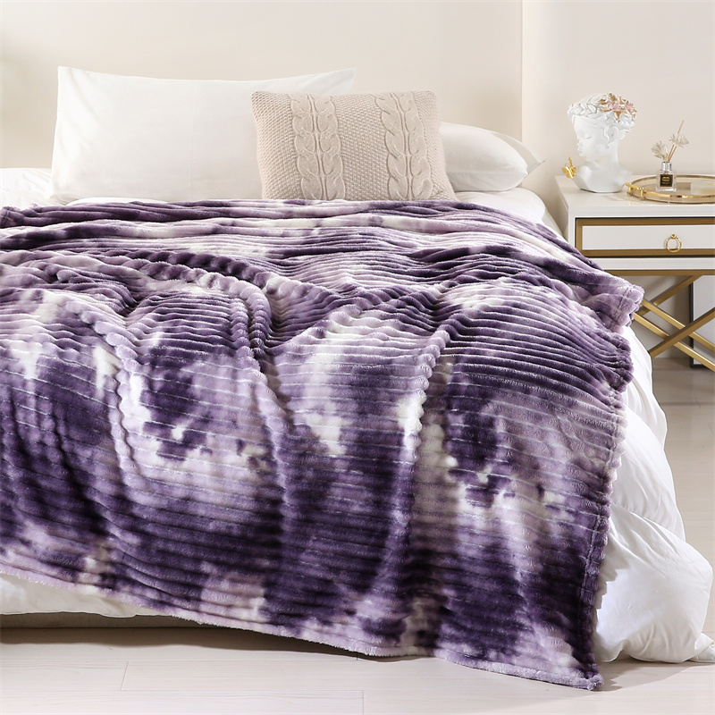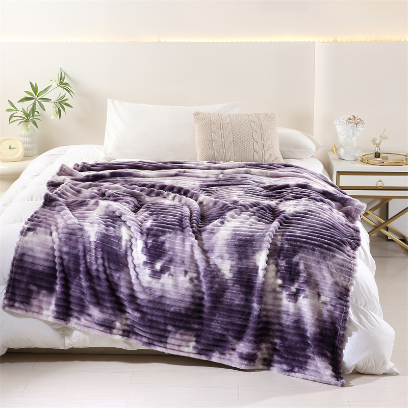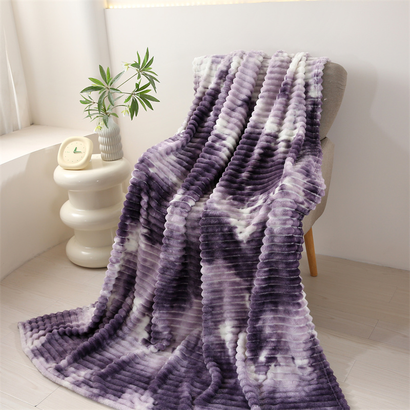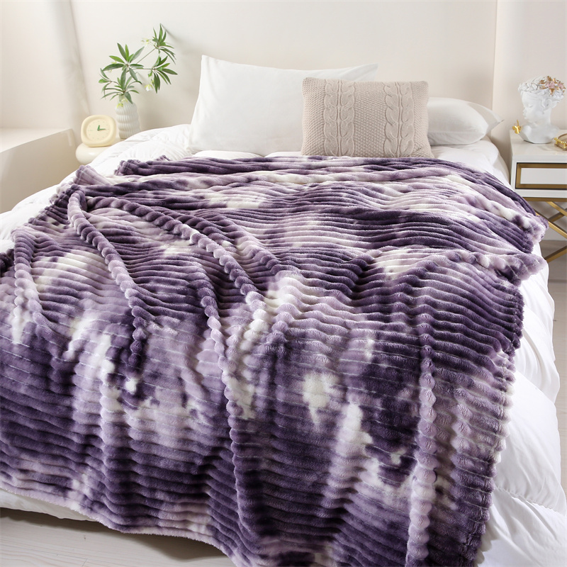 商品名称:巴木赫 2024新款260克扎染印花抽条毛毯毯子 深紫