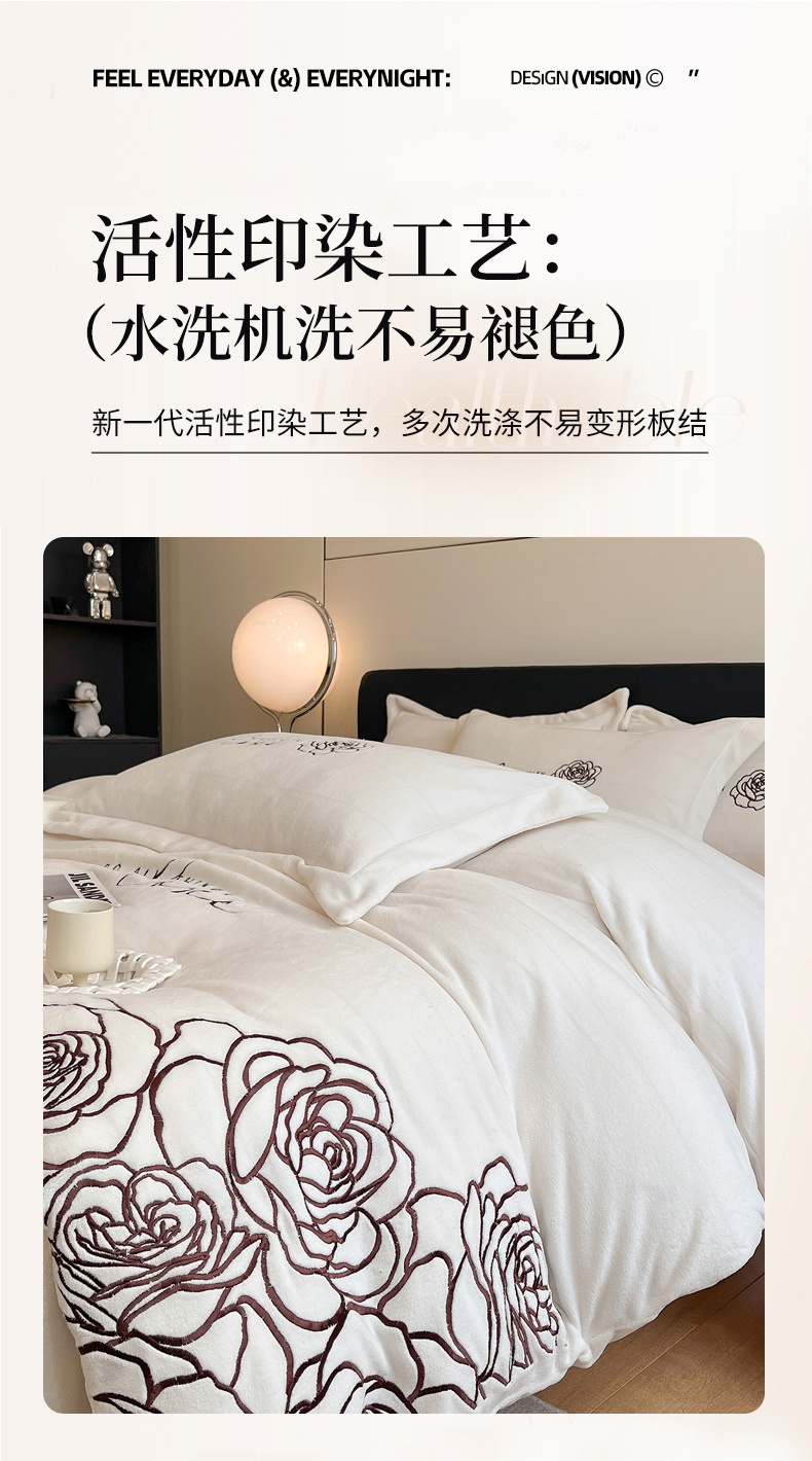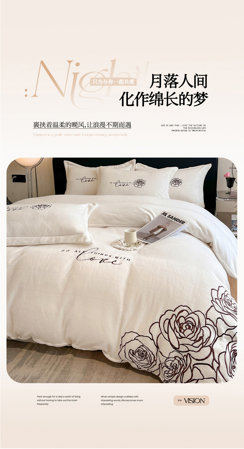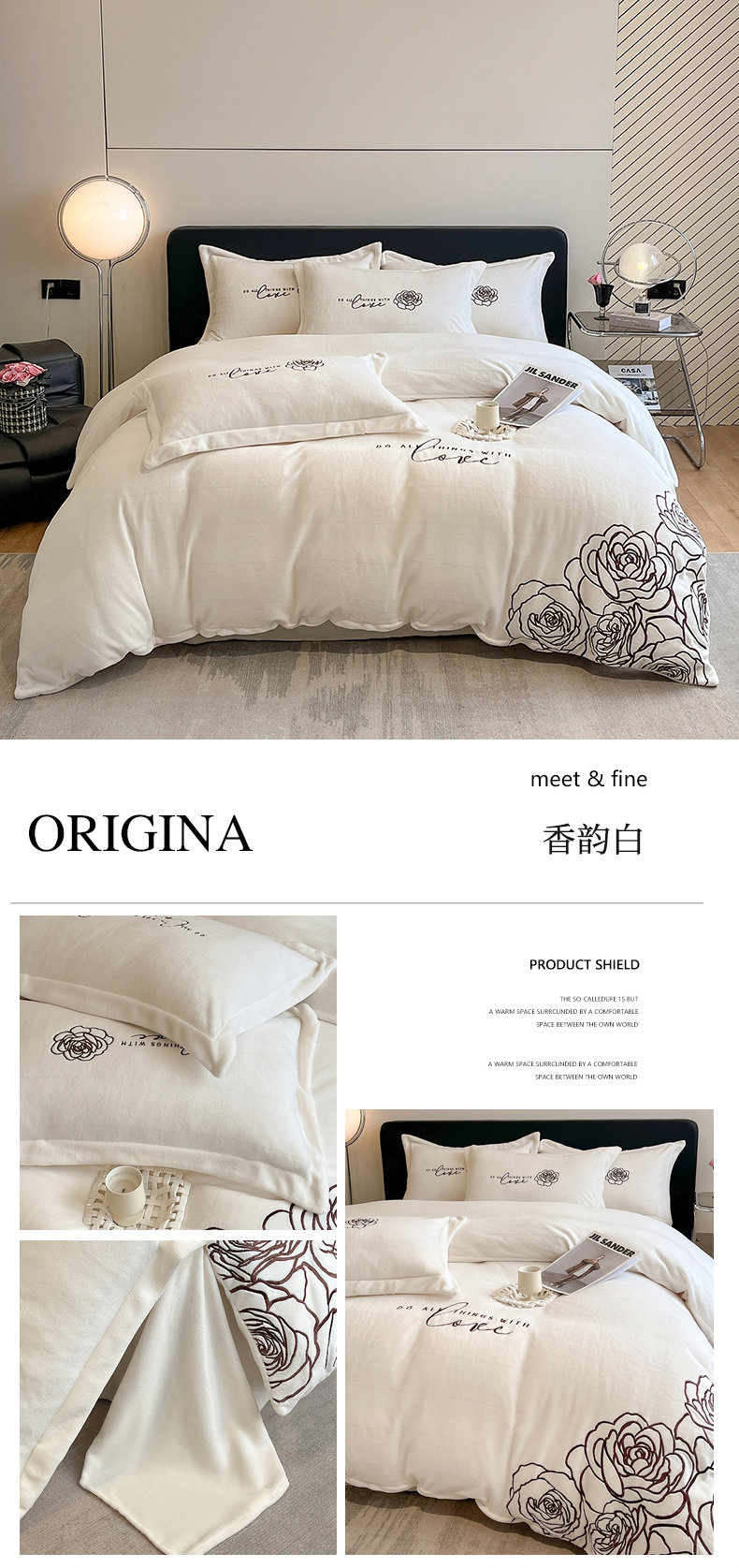 当前位置: 91家纺网 > 商品网购 > 床品套件 > 四件套 > 牛奶绒四件套 > 你好美丽 2025新款牛奶绒A类200克四件套刺绣香韵-花之语 香韵白