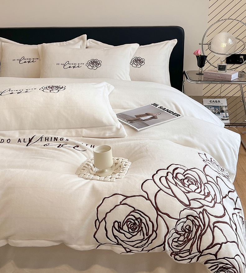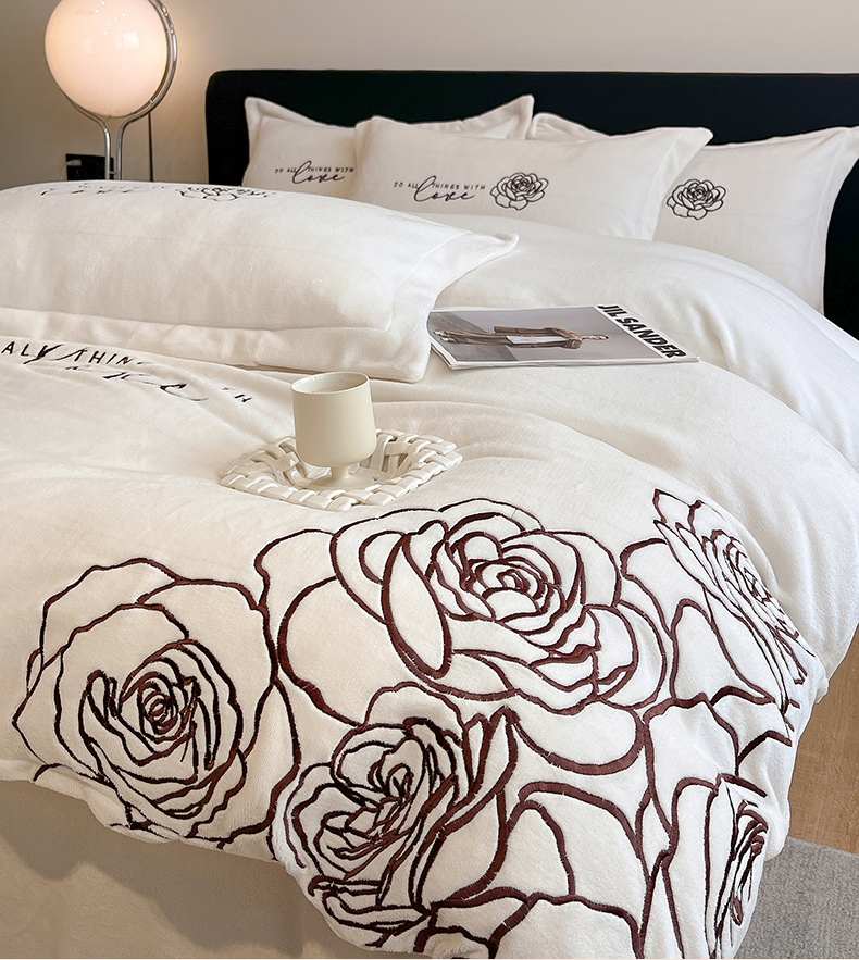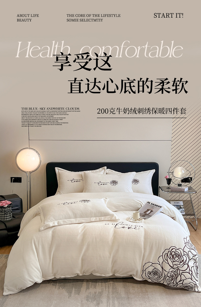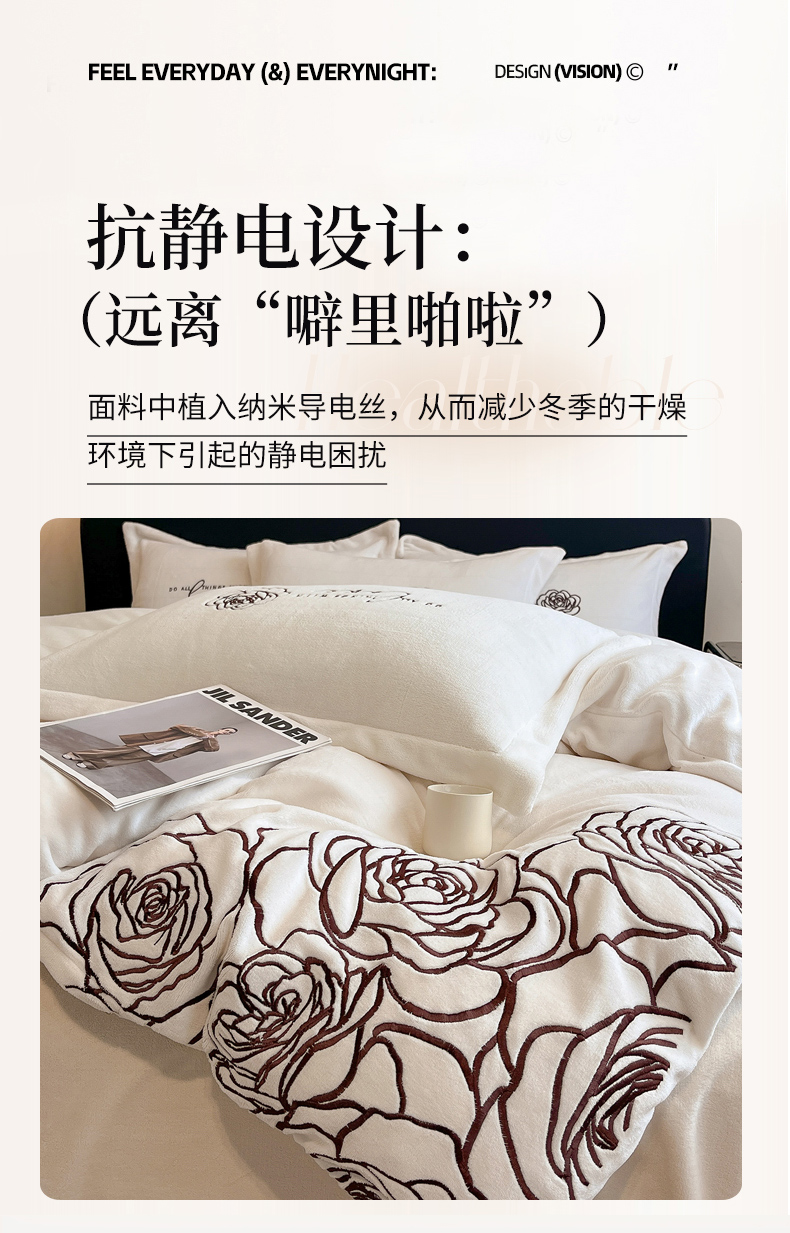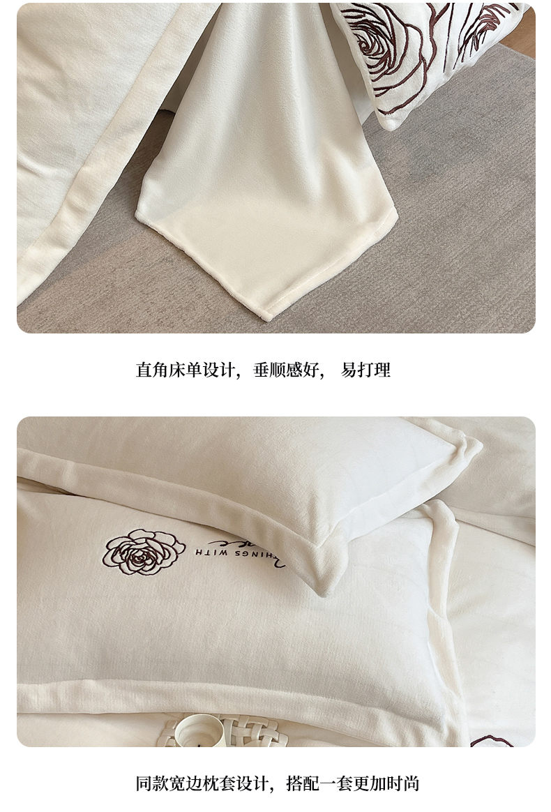 当前位置: 91家纺网 > 商品网购 > 床品套件 > 四件套 > 牛奶绒四件套 > 你好美丽 2025新款牛奶绒A类200克四件套刺绣香韵-花之语 香韵白
