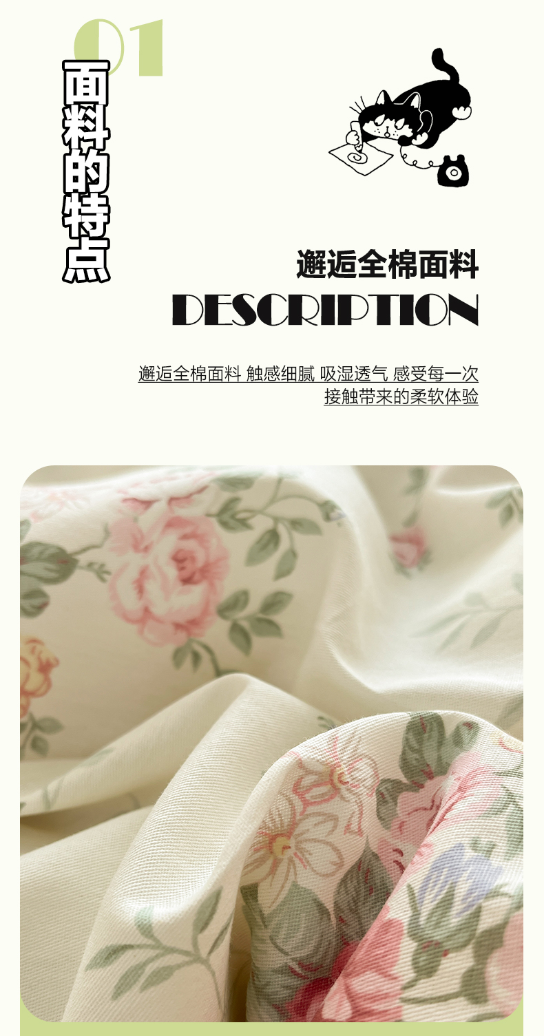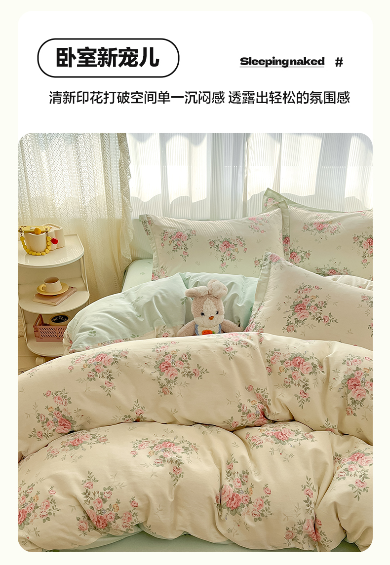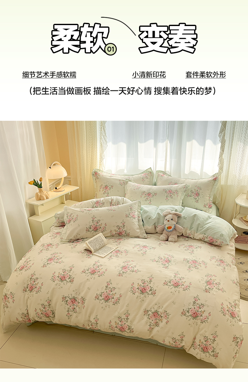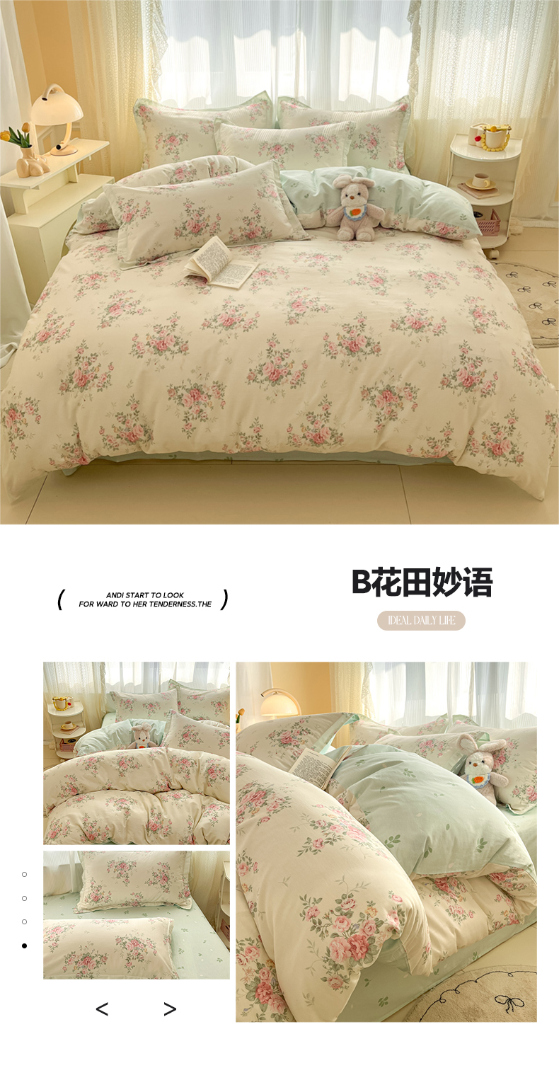 当前位置: 91家纺网 > 商品网购 > 床品套件 > 四件套 > 全棉普通四件套 > 涵宸家纺 2025新款全棉印花四件套 B花田妙语