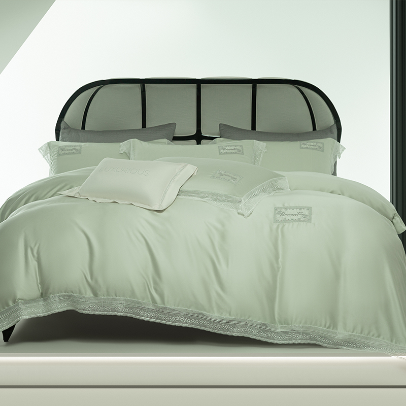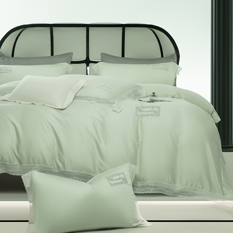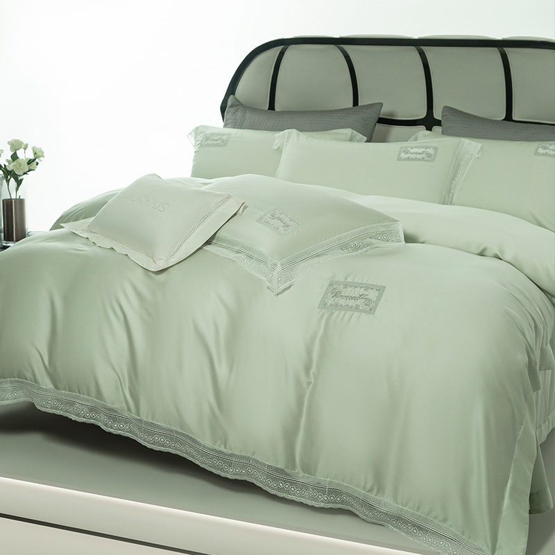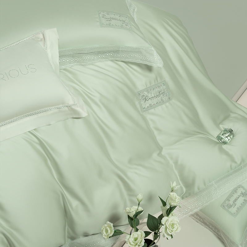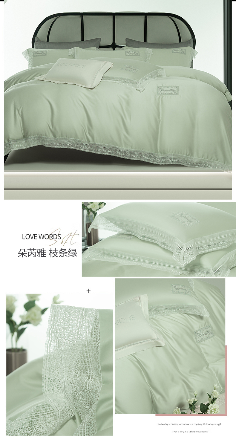 诗黛尔 2025新款春夏100%莱赛尔蕾丝绣花四件套-朵芮雅系列 朵芮雅-枝条绿