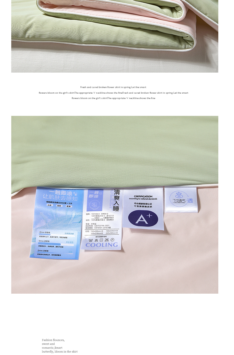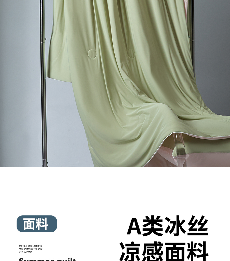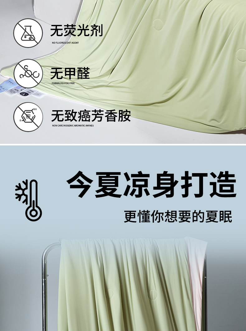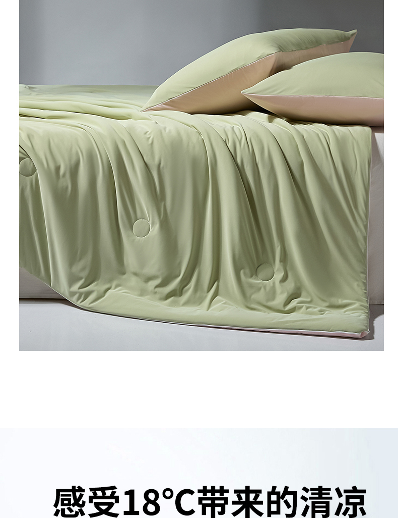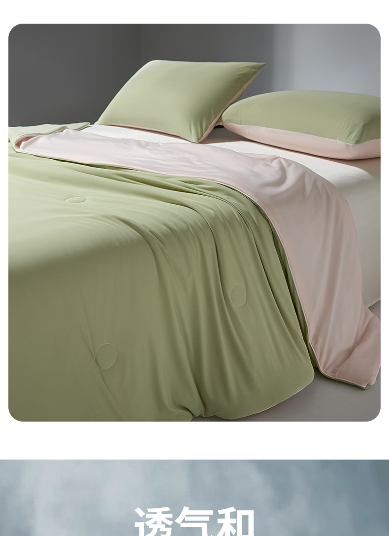 商品名称:梦恬佳 2025新款高克重140g凉感丝冰丝仿锦氨夏凉被被子被芯 旷野-绿拼粉