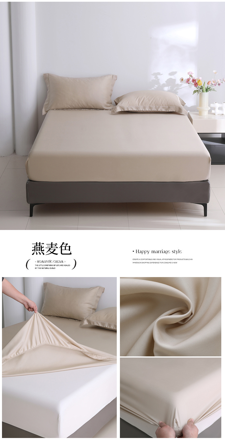 • 91家纺网 家纺一手货源 找家纺 寝柔2025春夏新款50S纯色天丝床笠单件席梦思床垫棕垫保护套凉感(有质检报告) 燕麦色