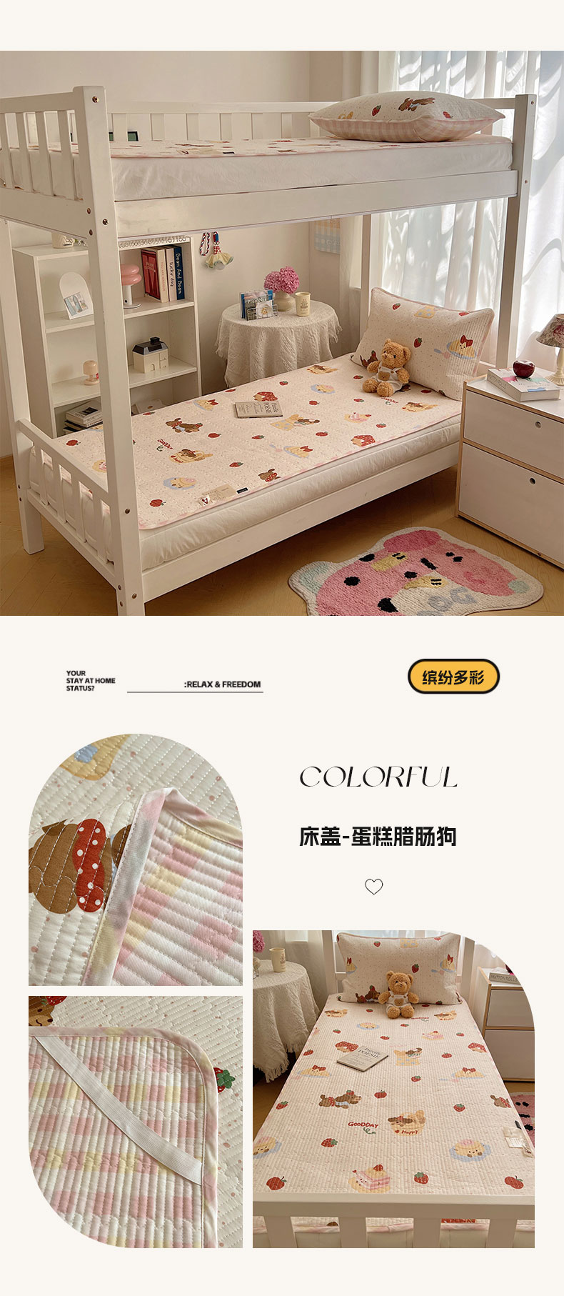 商品名称:(总)六巷胡同 2025新款INS卡通A类双面全棉绗缝夹棉学生床盖