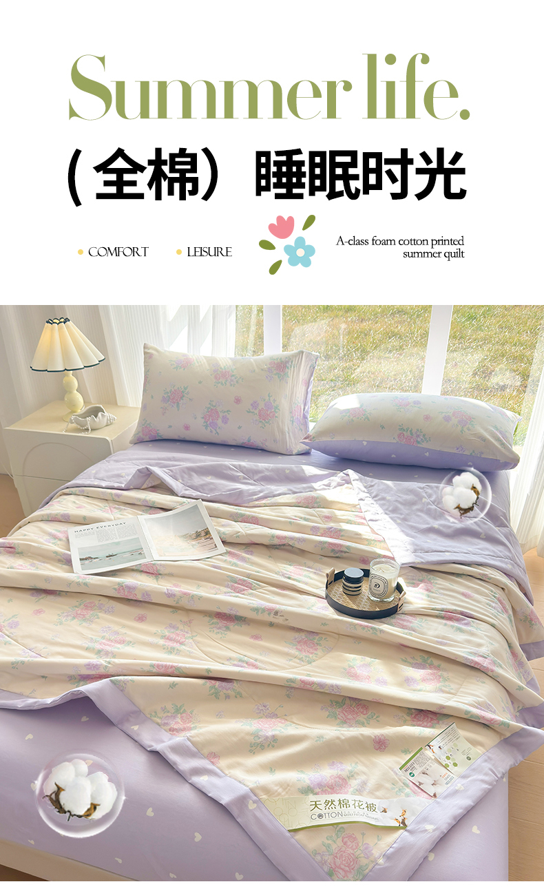 (总)蓝雀翎 2026新款水洗棉100%棉花夏被夏凉被空调被包检测,本白色,粉玉色,湖水绿,浅灰色,天蓝色,芋泥紫,组合图仅供展示不可下单