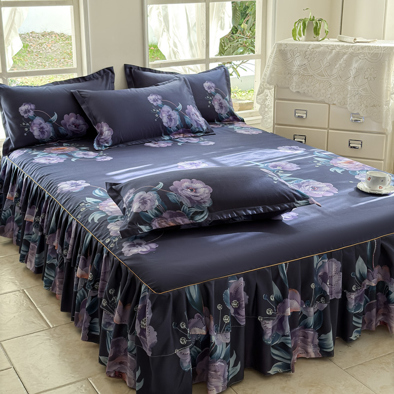 商品名称:雨田家纺 2025新款外贸跨境直播亲肤印花床裙三件套 鲜花盛开