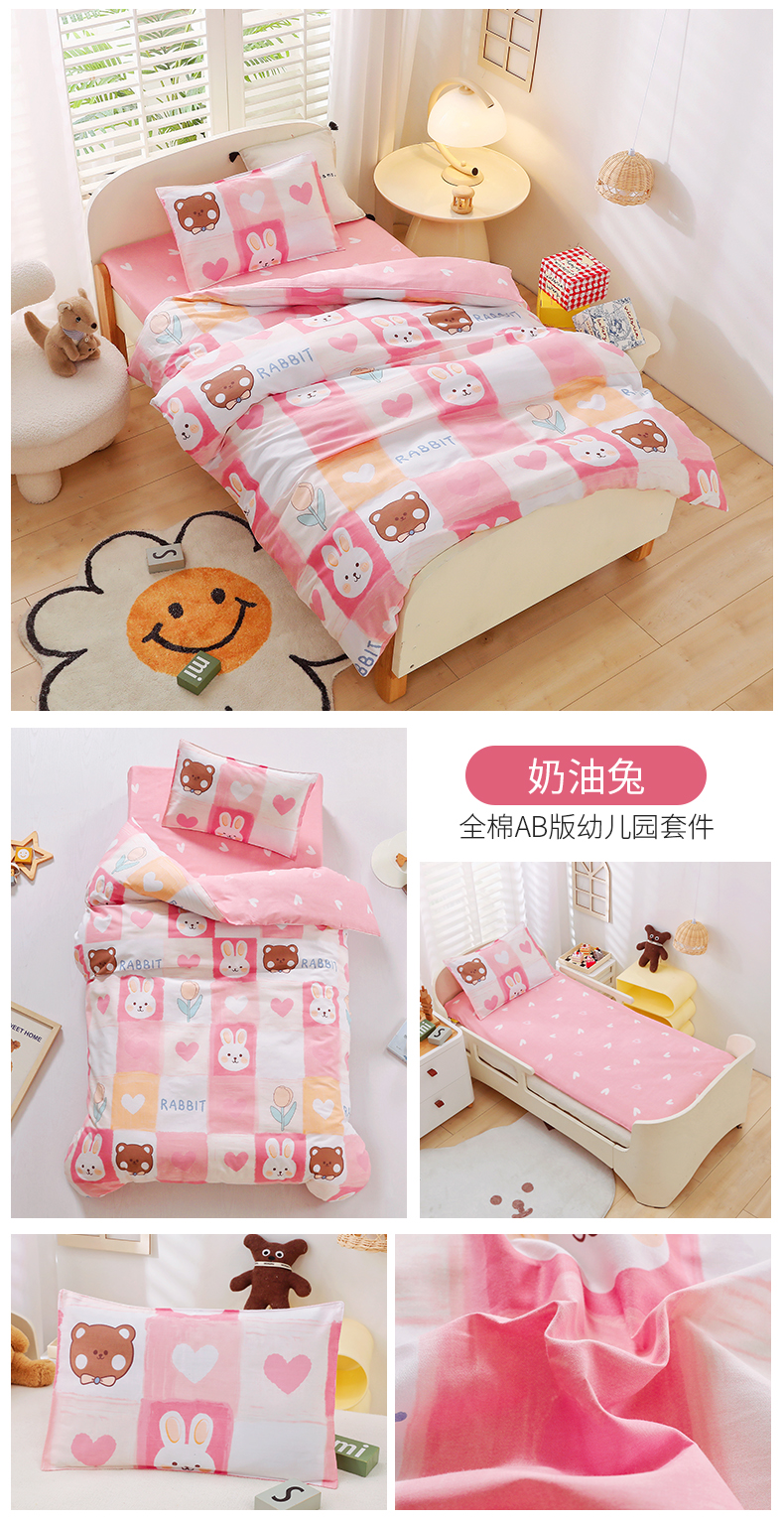 当前位置: 91家纺网 > 商品网购 > 床品套件 > 三件套 > 吉咪兔家纺 2025新款全棉纯棉幼儿园三件套儿童被褥六件套宝宝午睡入园婴儿床床上用品 奶油草莓