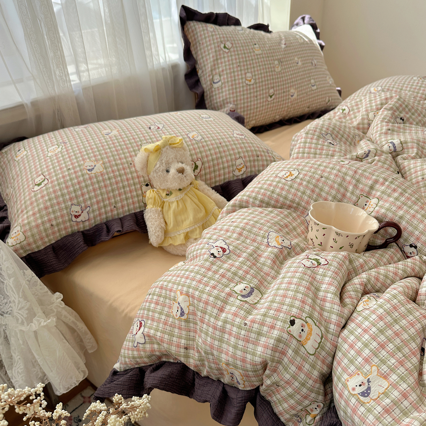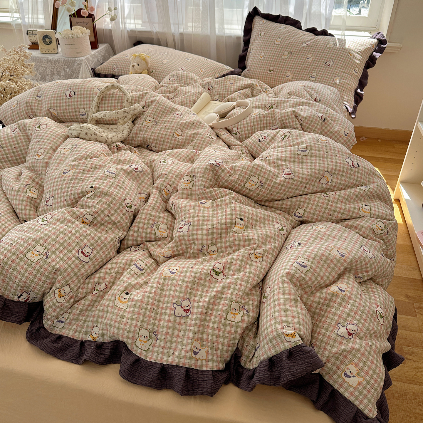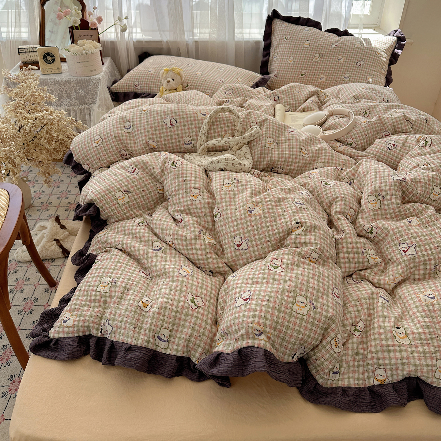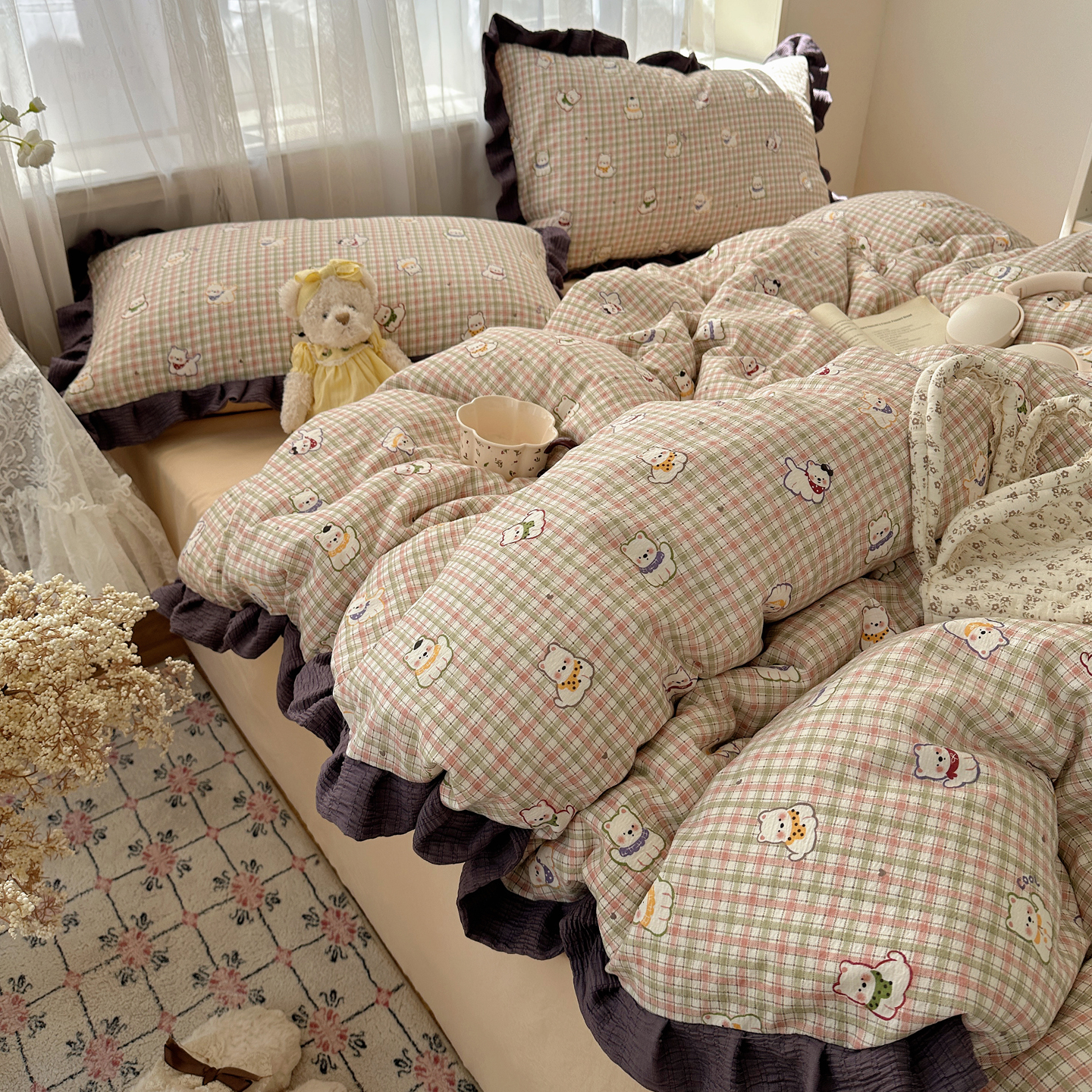当前位置: 91家纺网 > 商品网购 > 床品套件 > 四件套 > 双层纱四件套 > 顾里家纺 2025新款韩系花边皱皱纱四件套 复古西高地