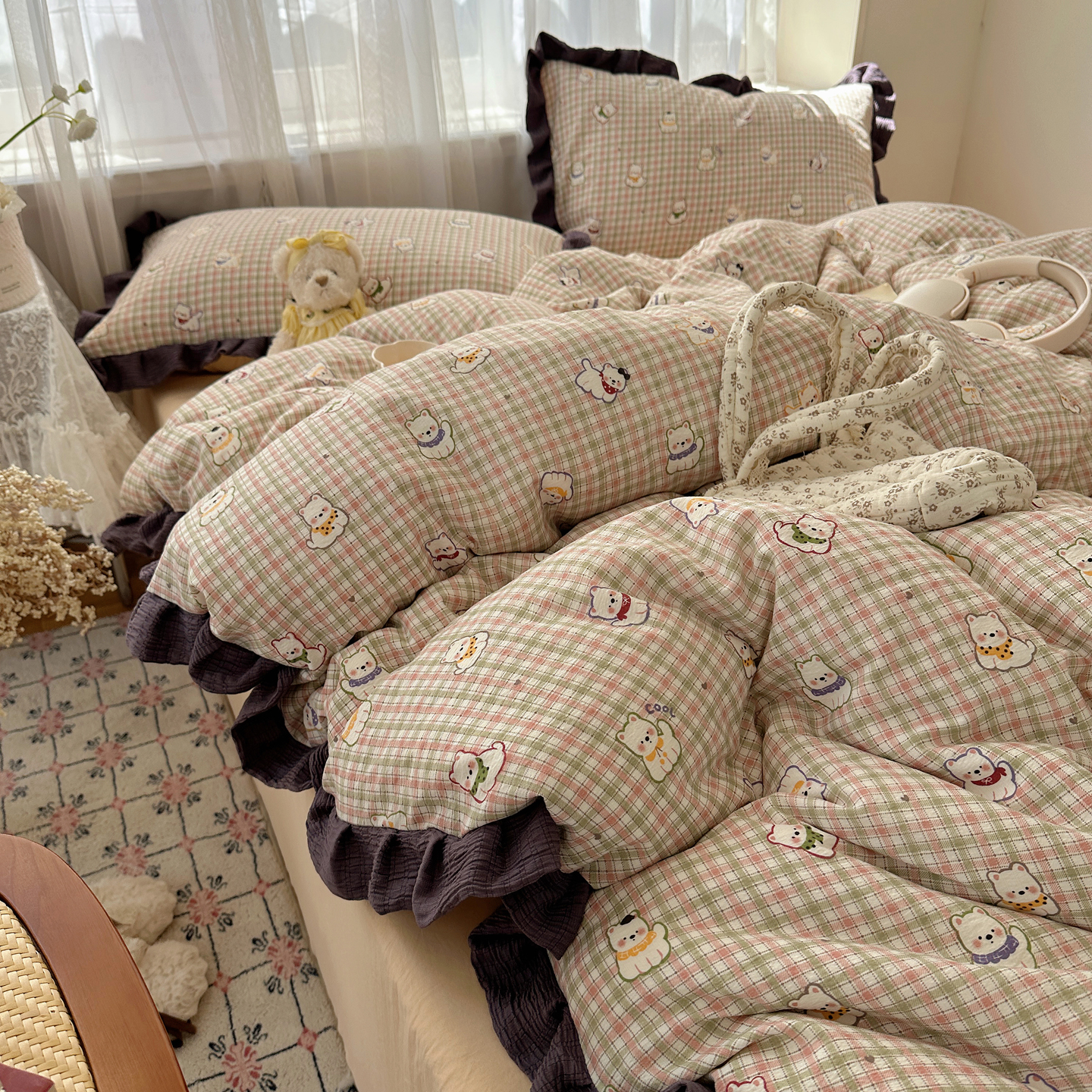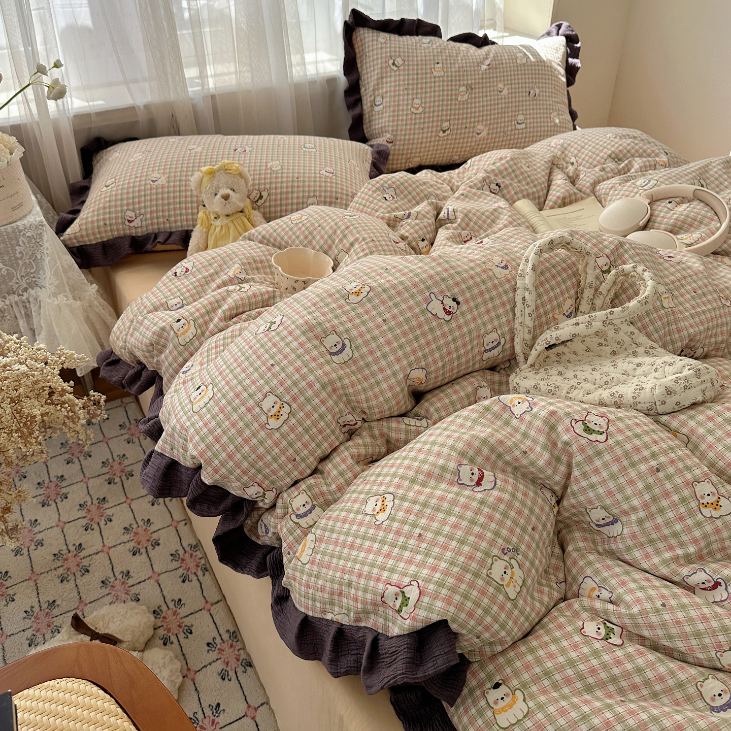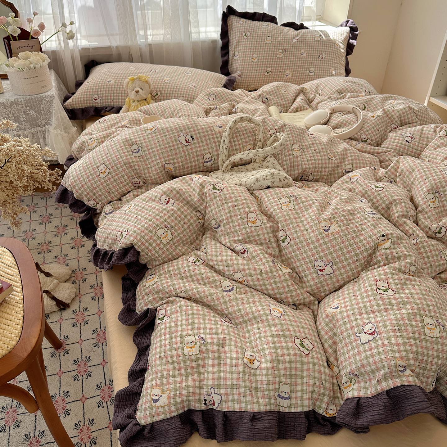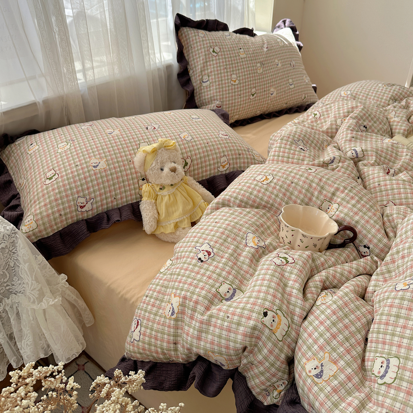 当前位置: 91家纺网 > 商品网购 > 床品套件 > 四件套 > 双层纱四件套 > 顾里家纺 2025新款韩系花边皱皱纱四件套 复古西高地