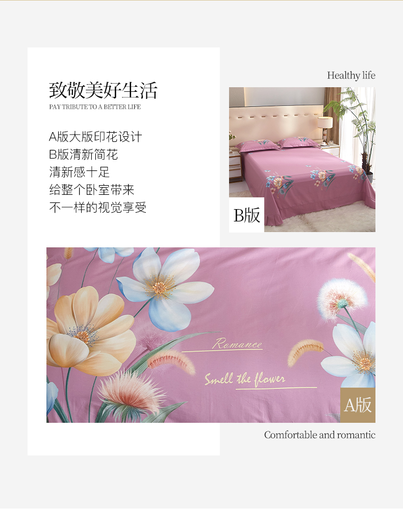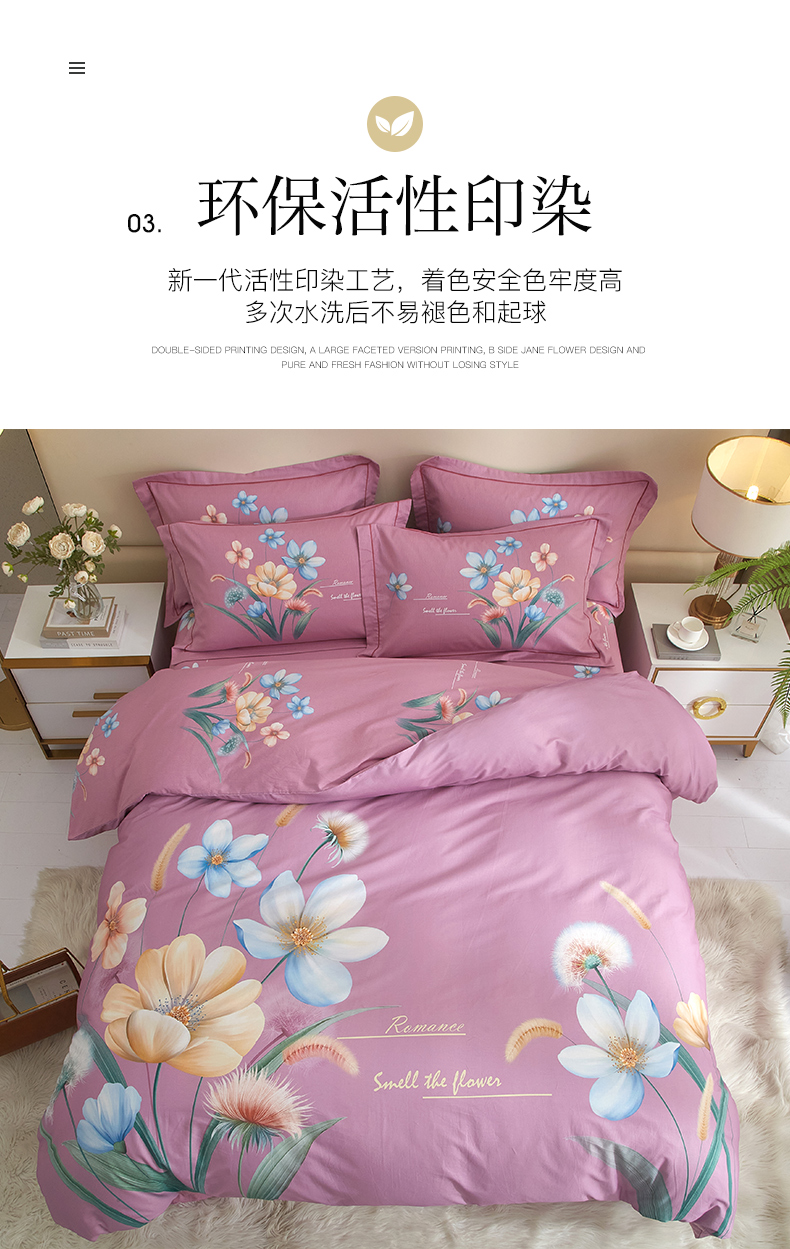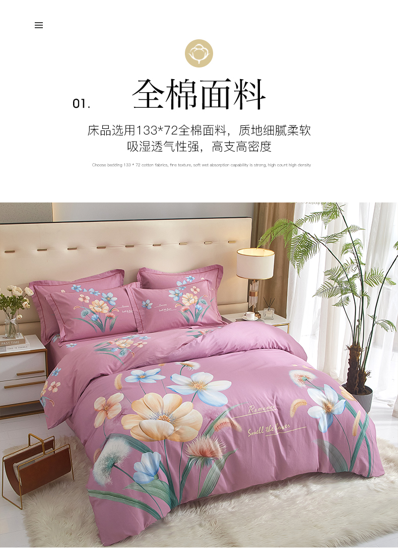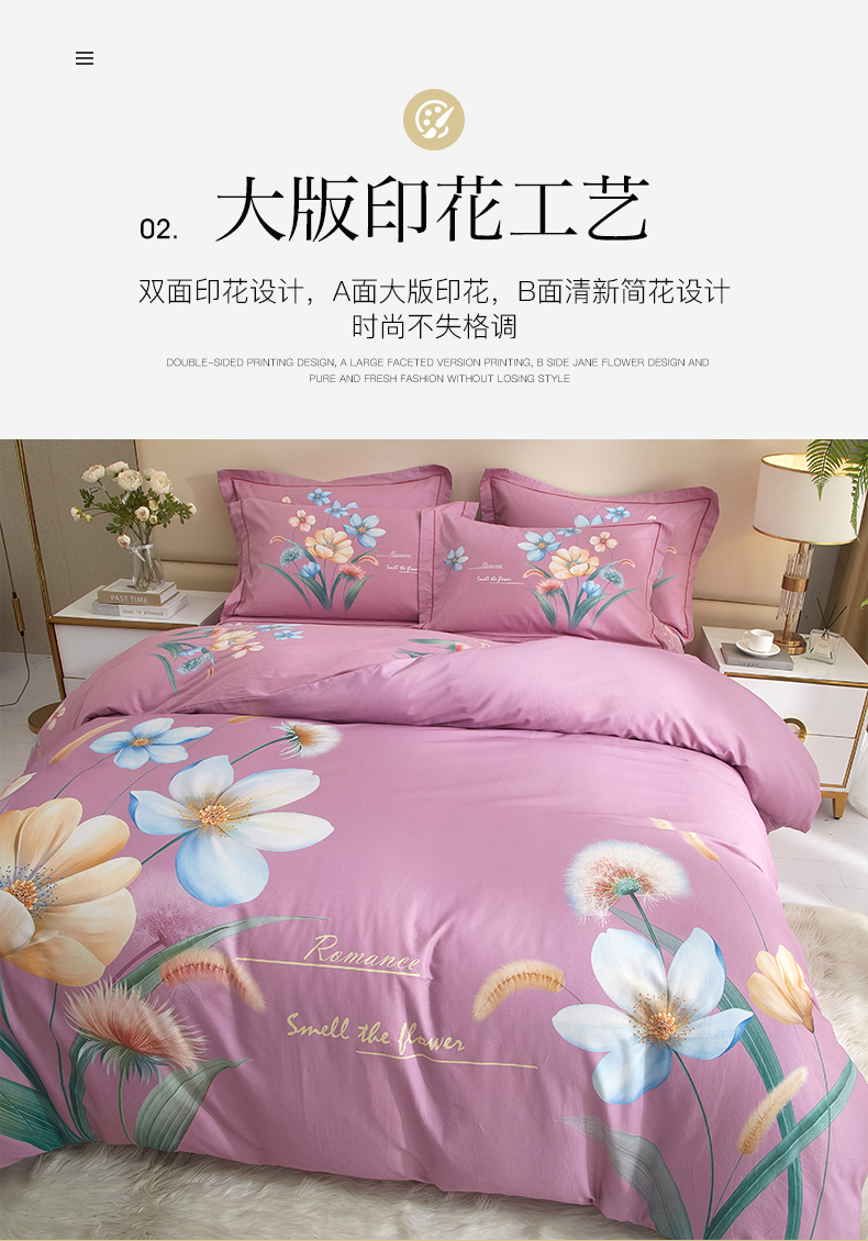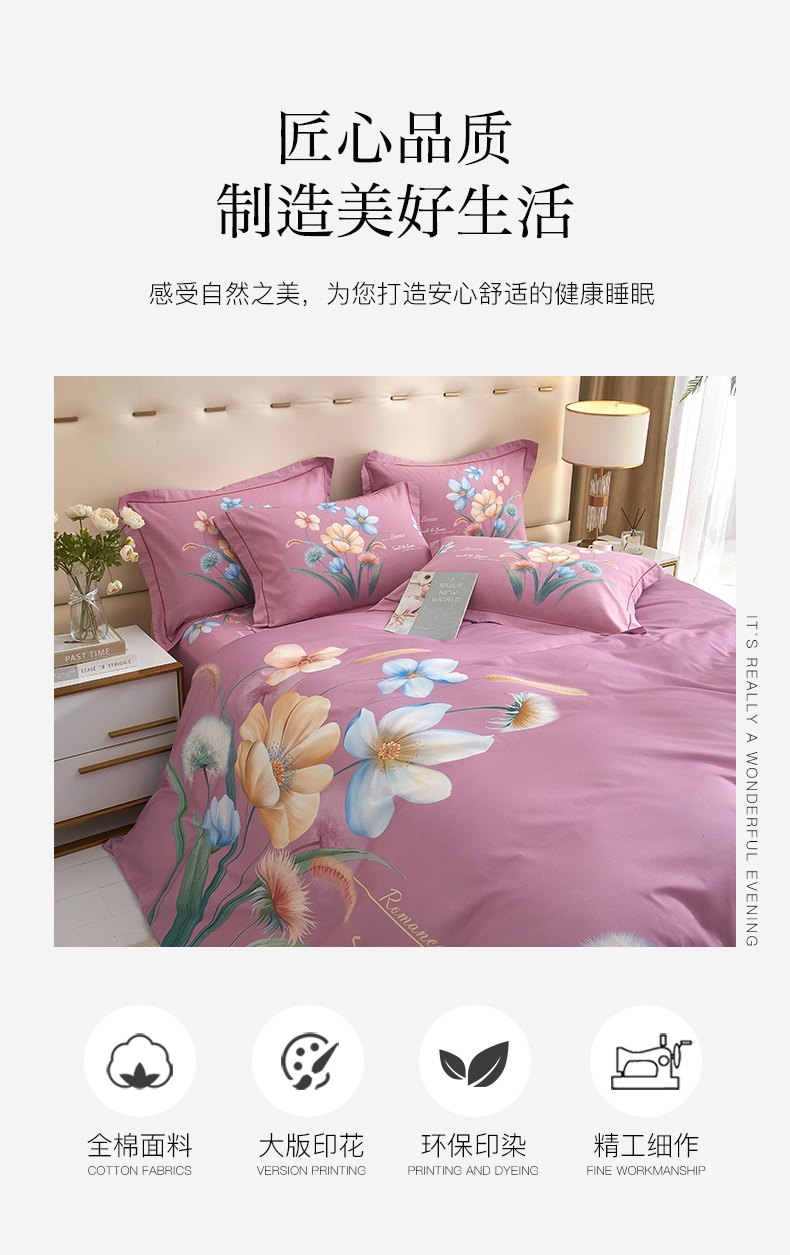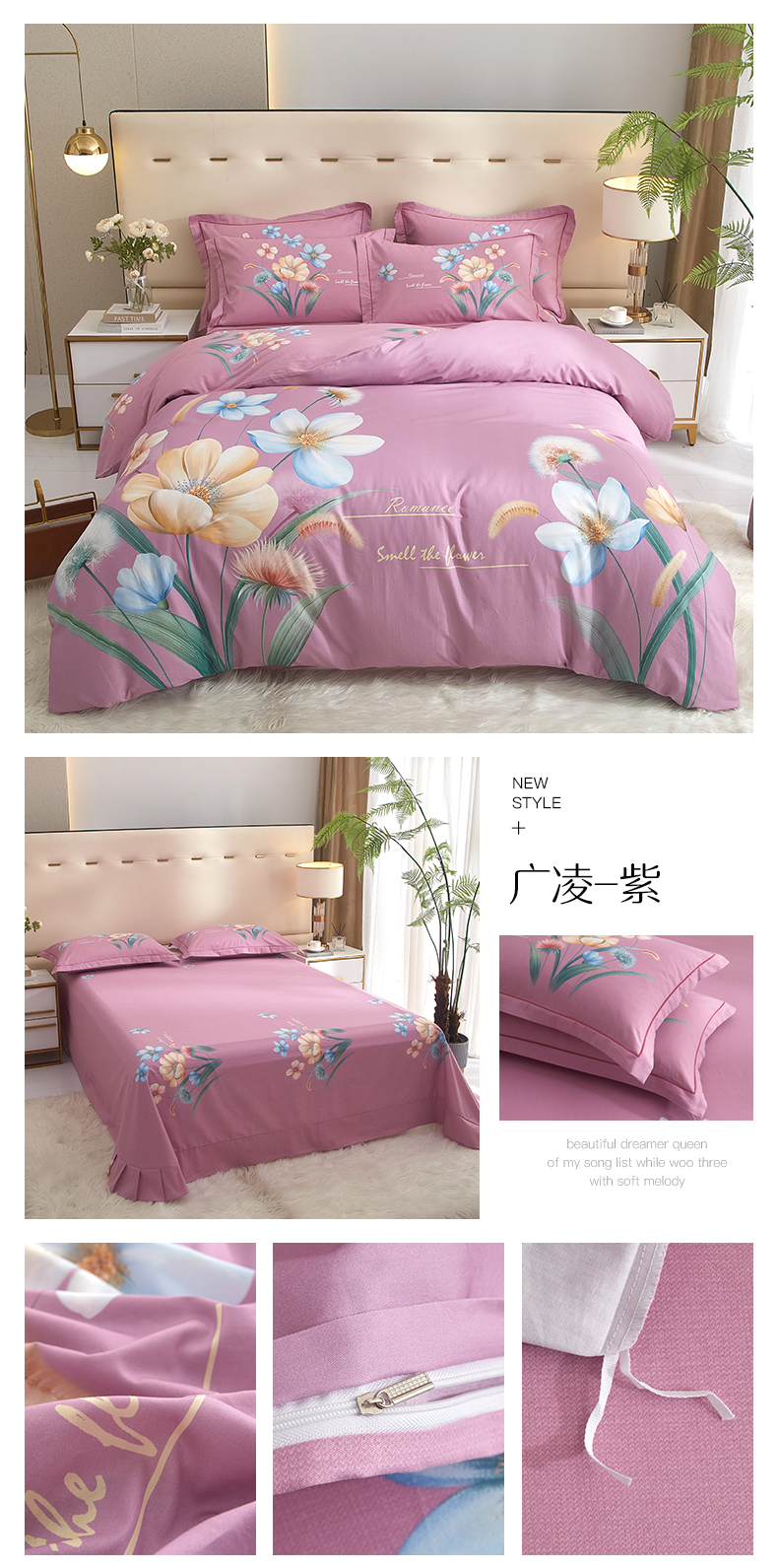 商品名称:格里芬家纺2025全棉大版花13372印花四件套 广凌-紫