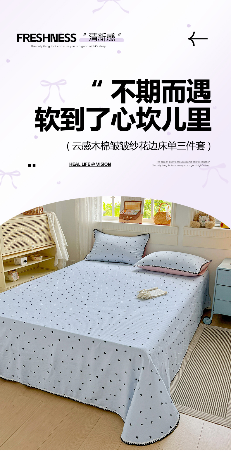 逸林家纺《原希尔顿逸林》 2025新款云感皱皱纱镂空花边床单单品床单单件单床单 怦然心动