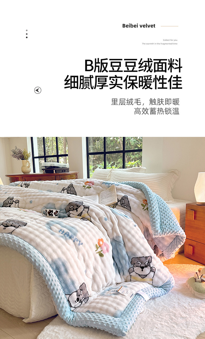 当前位置: 91家纺网 > 商品网购 > 毛毯休闲毯绒毯 > 毛毯 > 丫丫家纺 2025直播热款A+兔兔绒豆豆被三层夹棉加厚毛毯毯子牛奶绒冬被泡泡兔毛绒保暖被子被芯 嗨皮狗狗