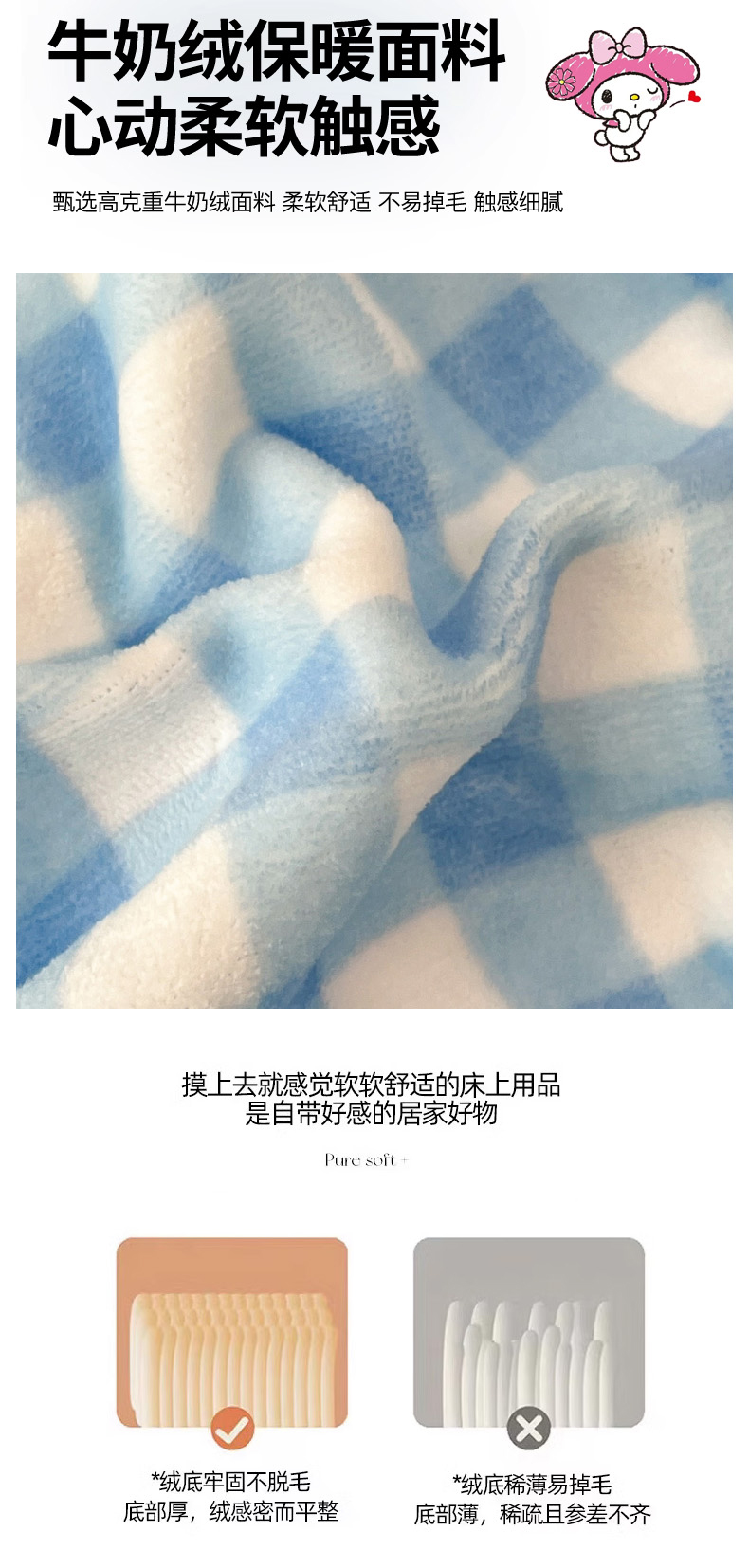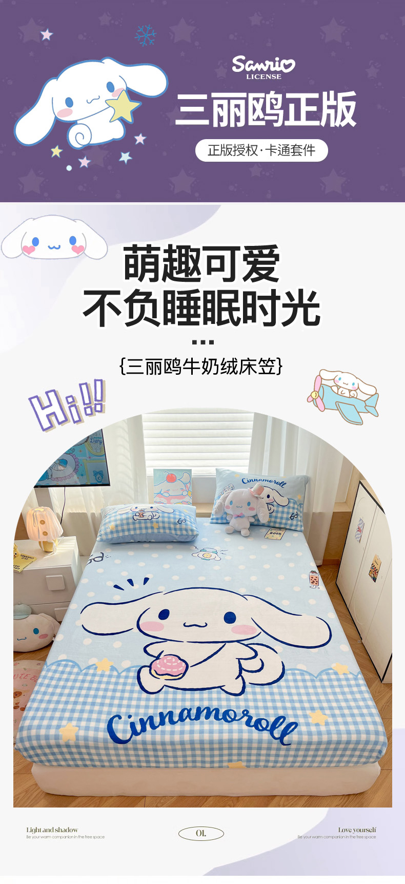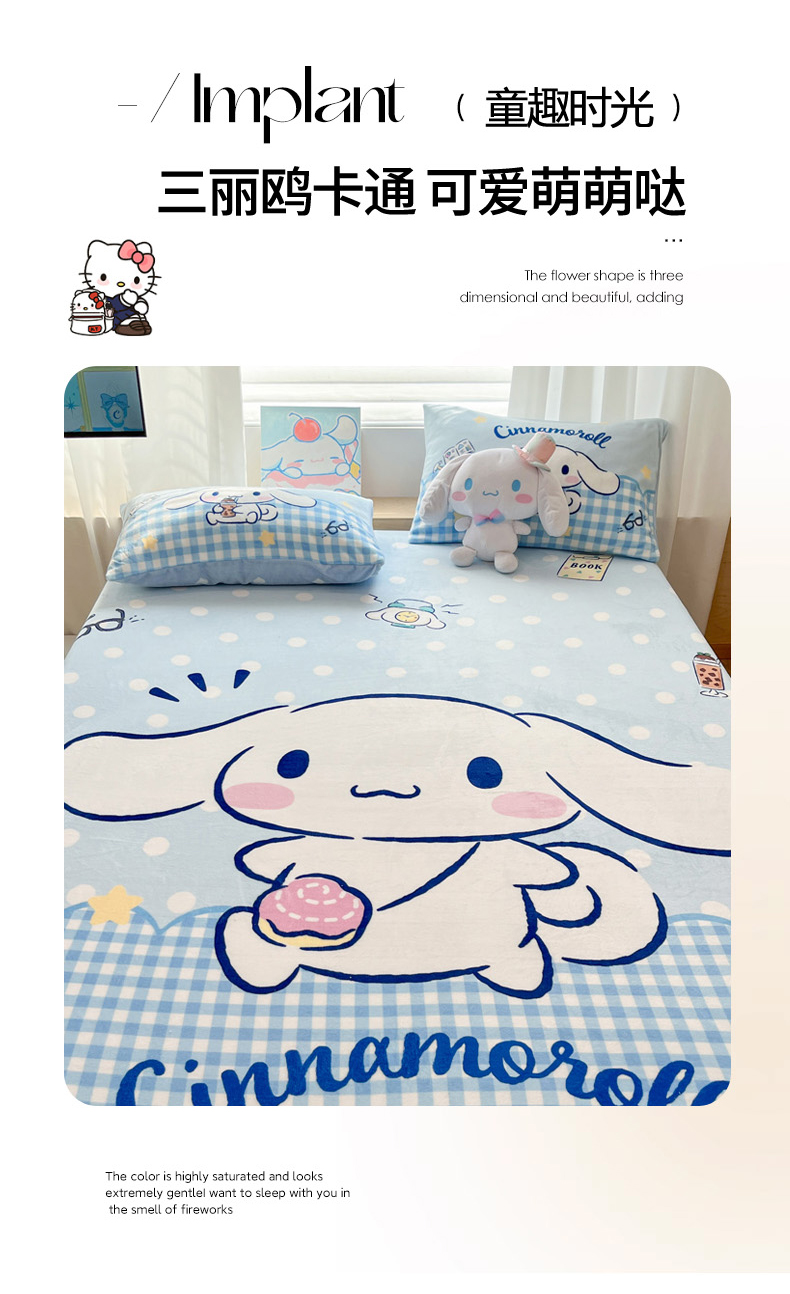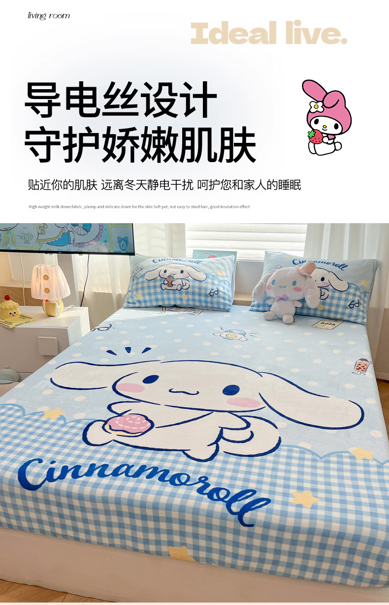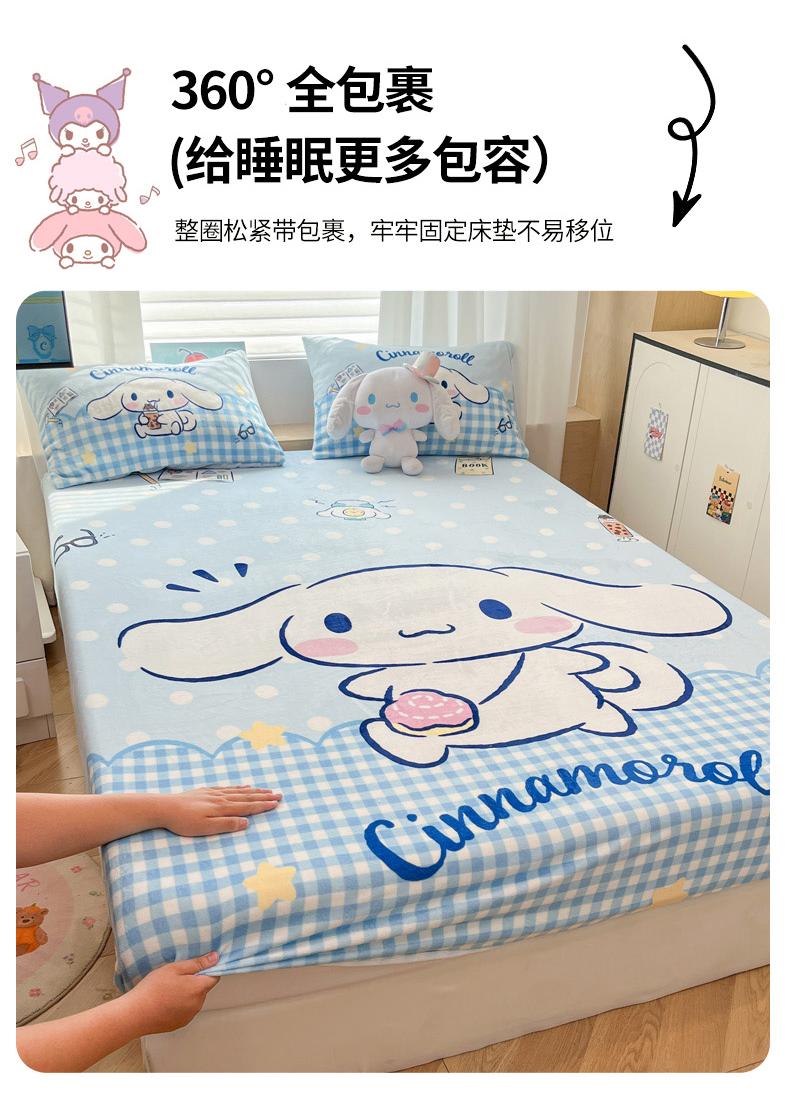 商品名称:暮思家居 2025新款正版授权三丽鸥大版牛奶绒数码印花单品床笠单件床笠(带标价格) 绒A版-快乐玉桂狗