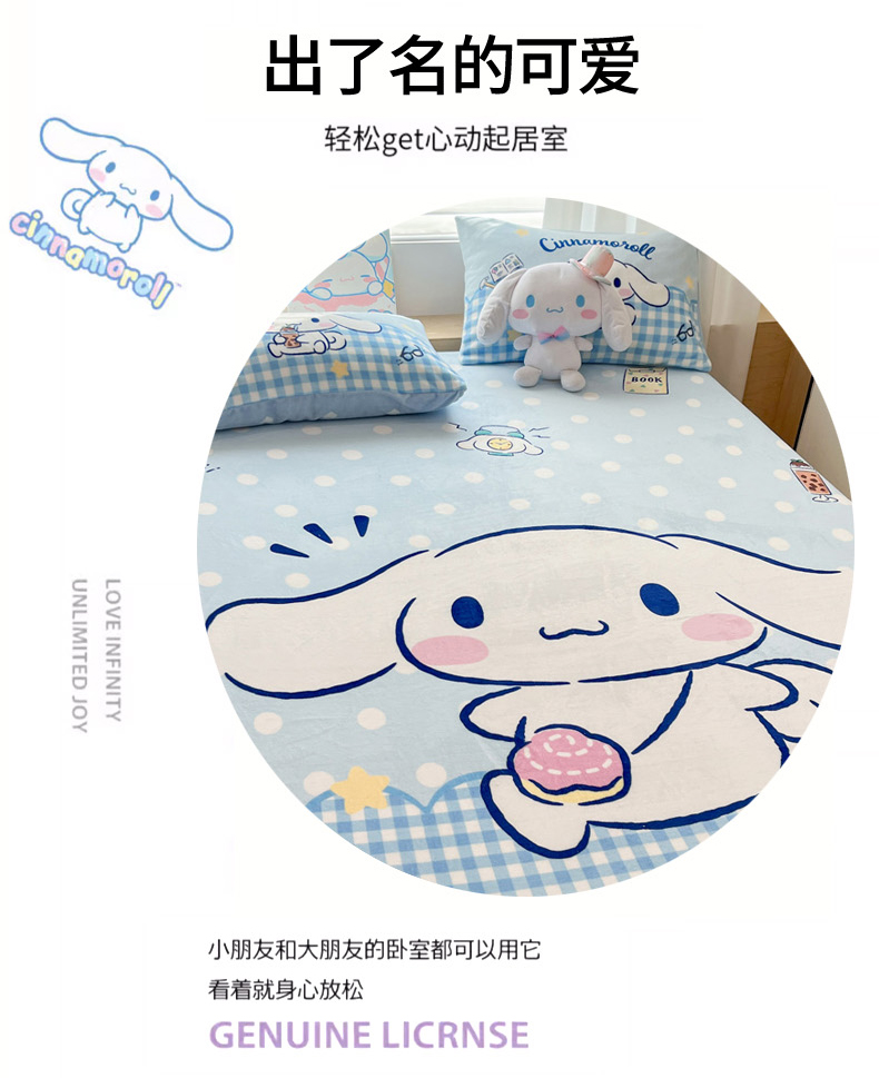 暮思家居 2025新款正版授权三丽鸥大版牛奶绒数码印花单品床笠单件床笠(带标价格) 绒A版-快乐玉桂狗