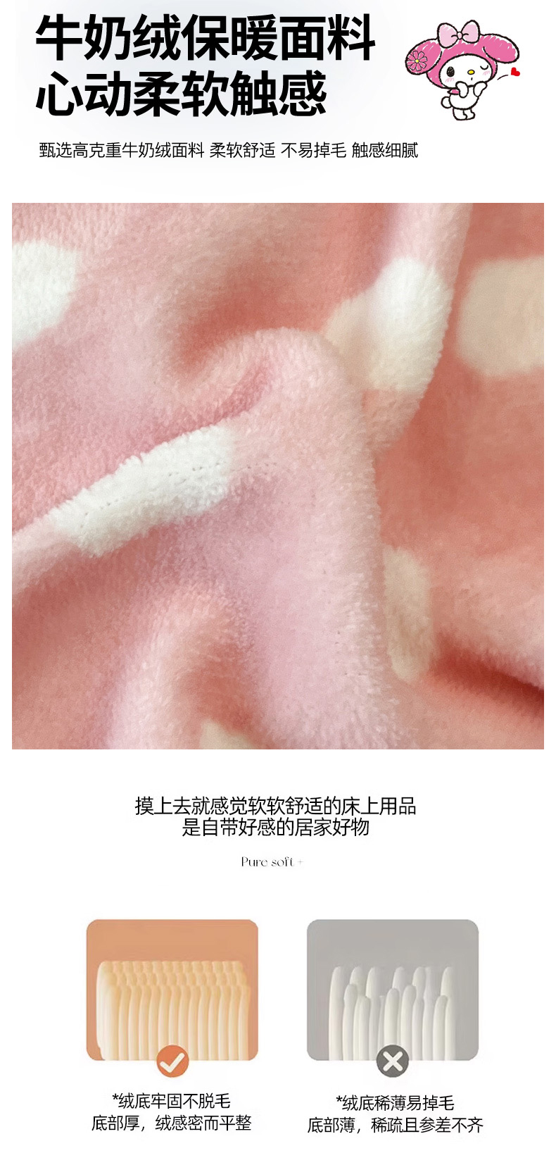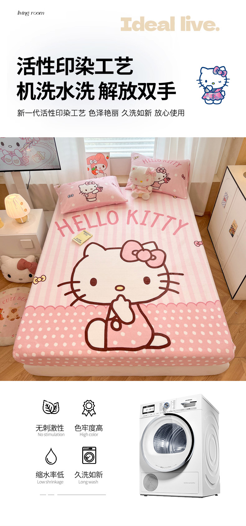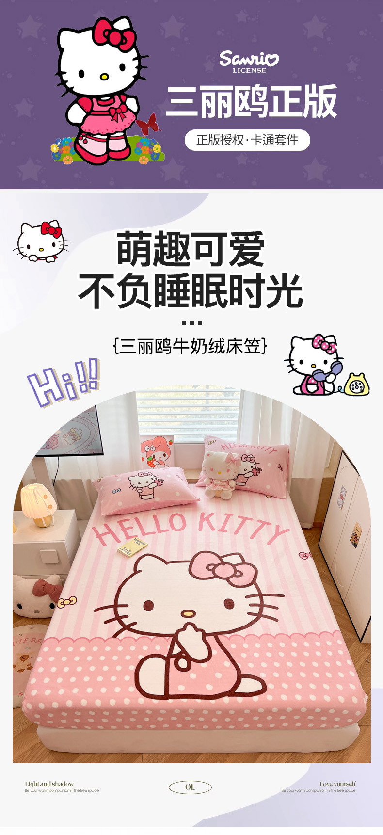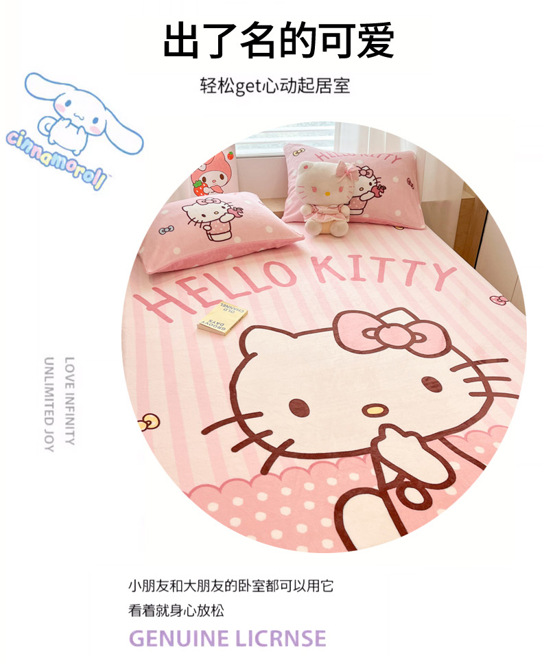 暮思家居 2025新款正版授权三丽鸥大版牛奶绒数码印花单品床笠单件床笠(带标价格) 绒A版-条纹KT
