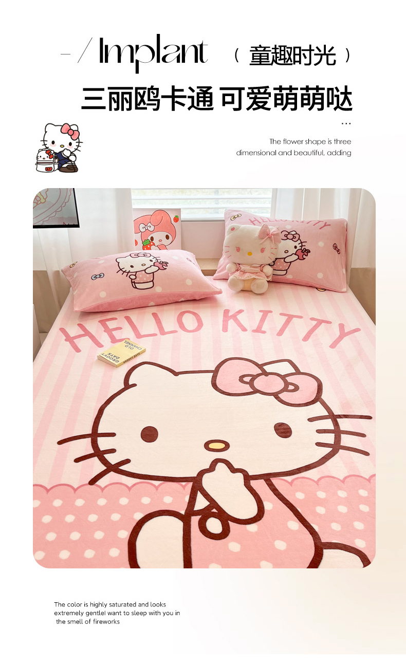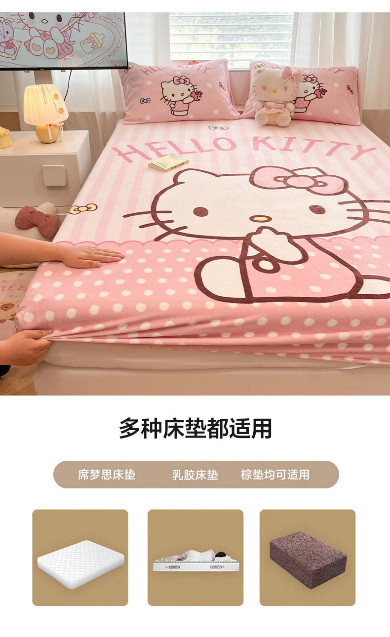 商品名称:暮思家居 2025新款正版授权三丽鸥大版牛奶绒数码印花单品床笠单件床笠(带标价格) 绒A版-条纹KT