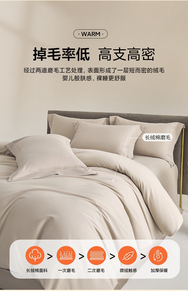当前位置: 91家纺网 > 商品网购 > 床品套件 > 四件套 > 长绒棉四件套 > 柔觉家纺 新款50*50双股长绒棉纯色磨毛四件套 卡布其