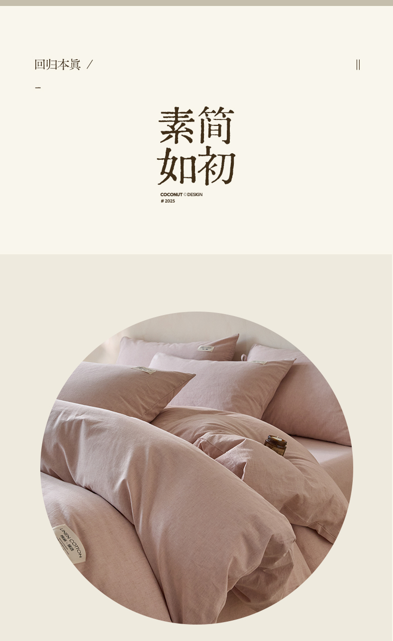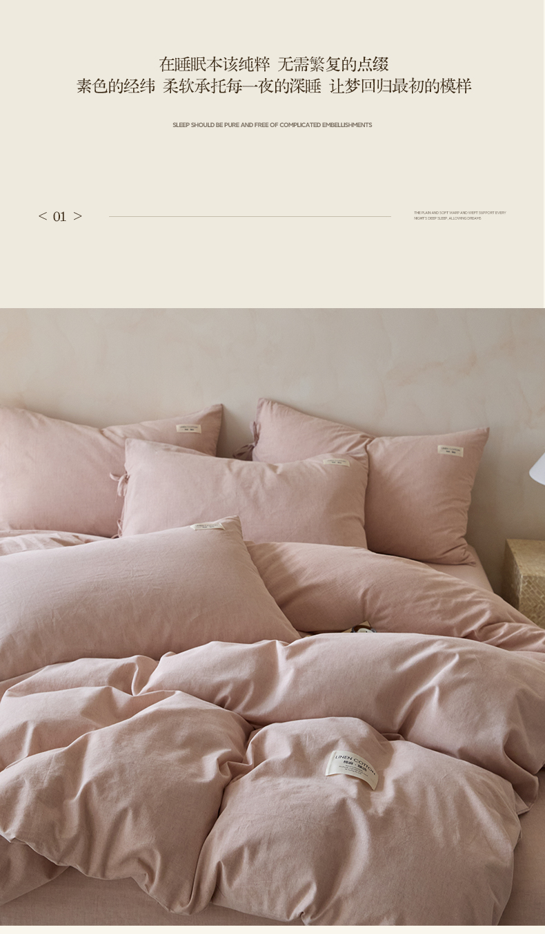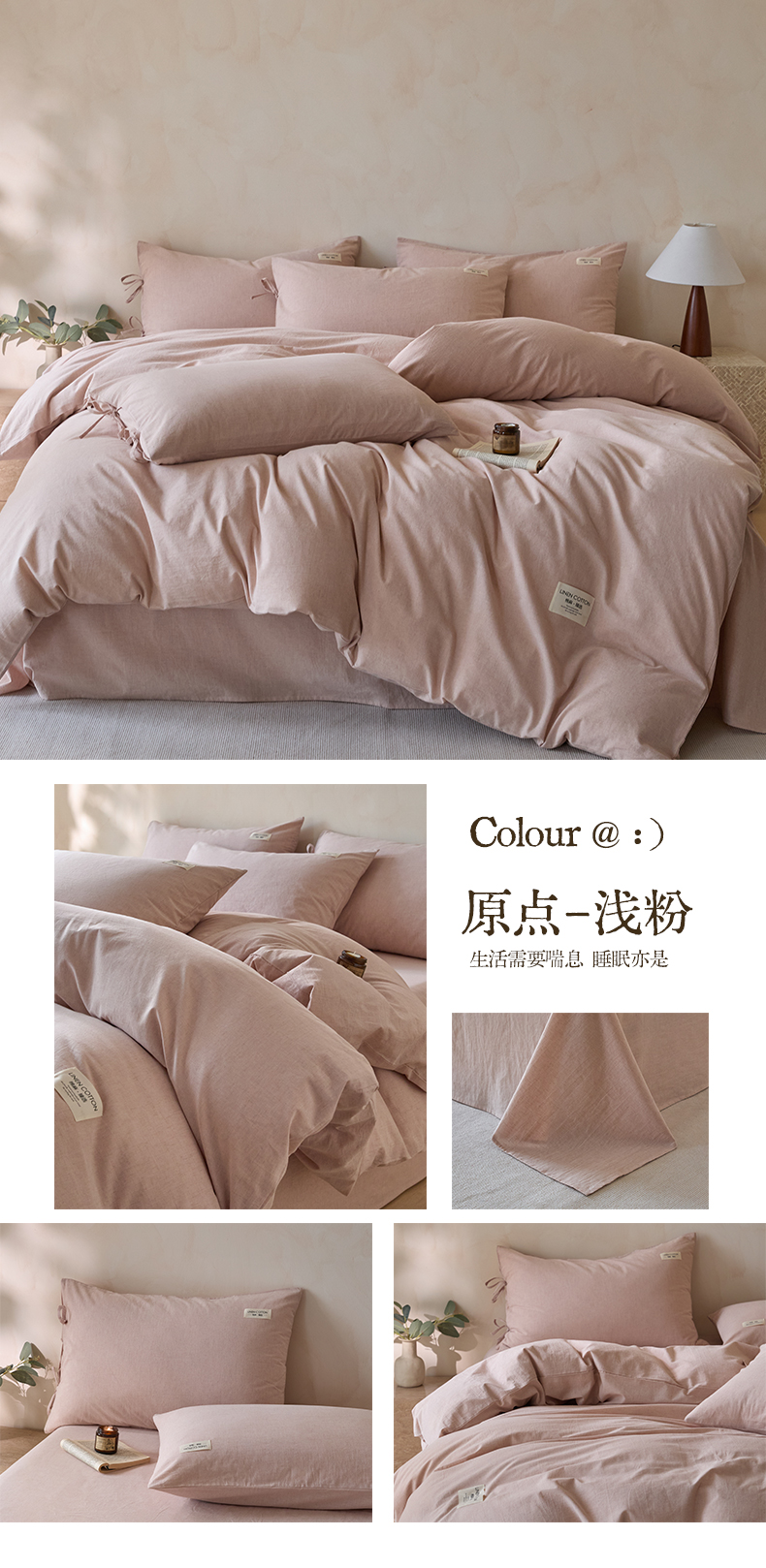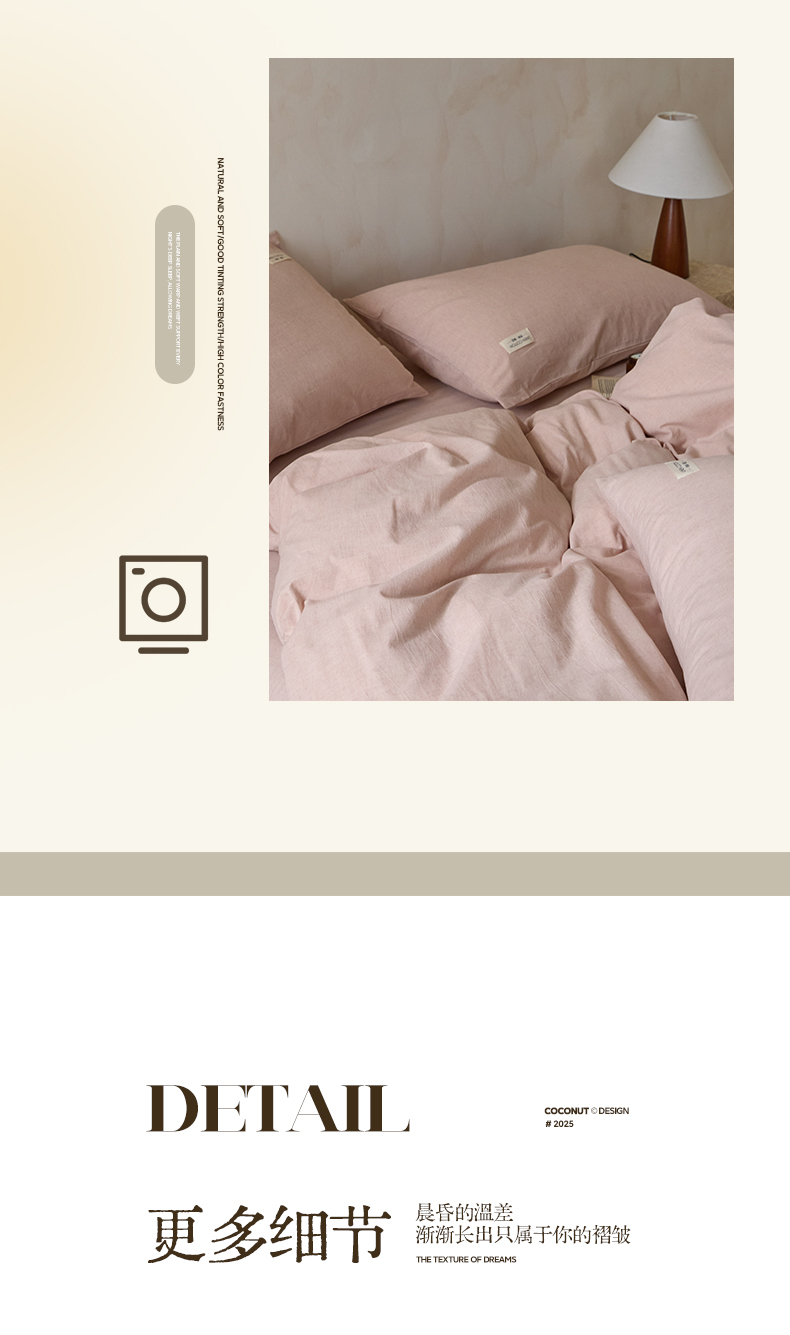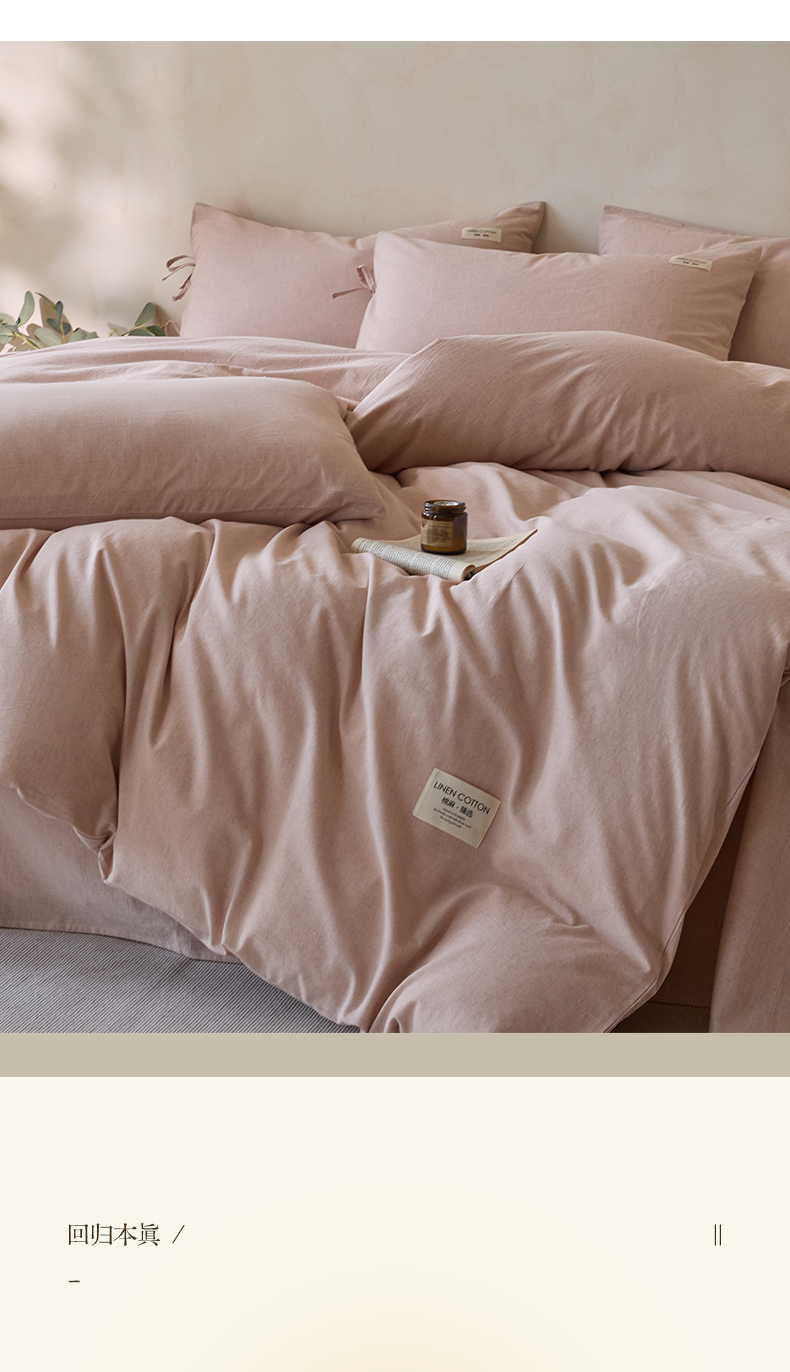 商品名称:涵宸家纺 2025新款色织棉麻四件套系列-单被套 原点-浅粉