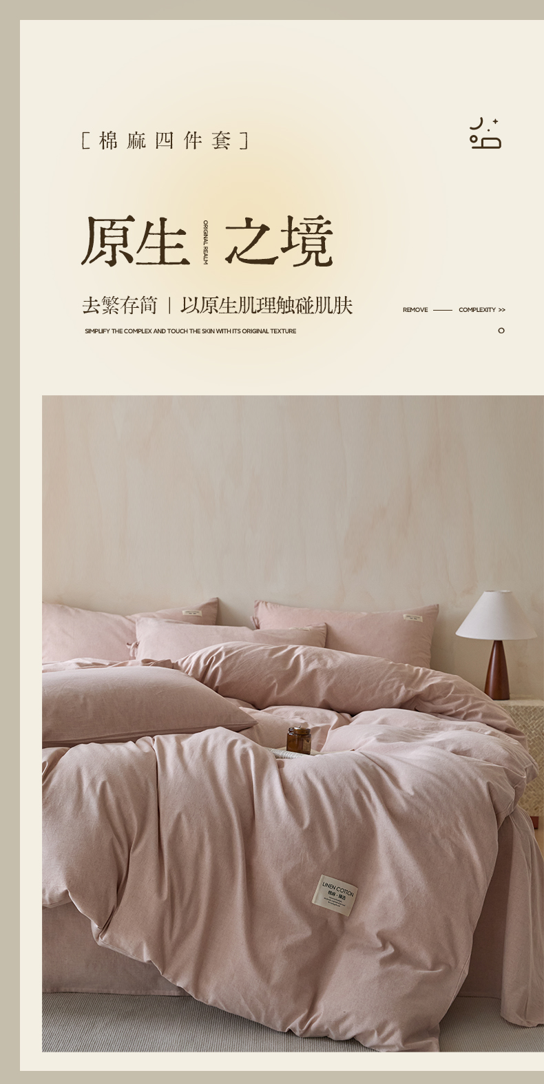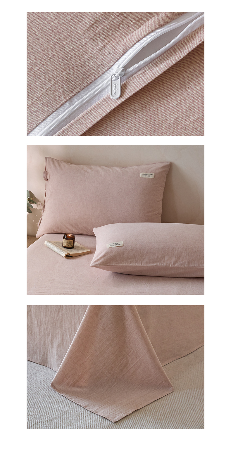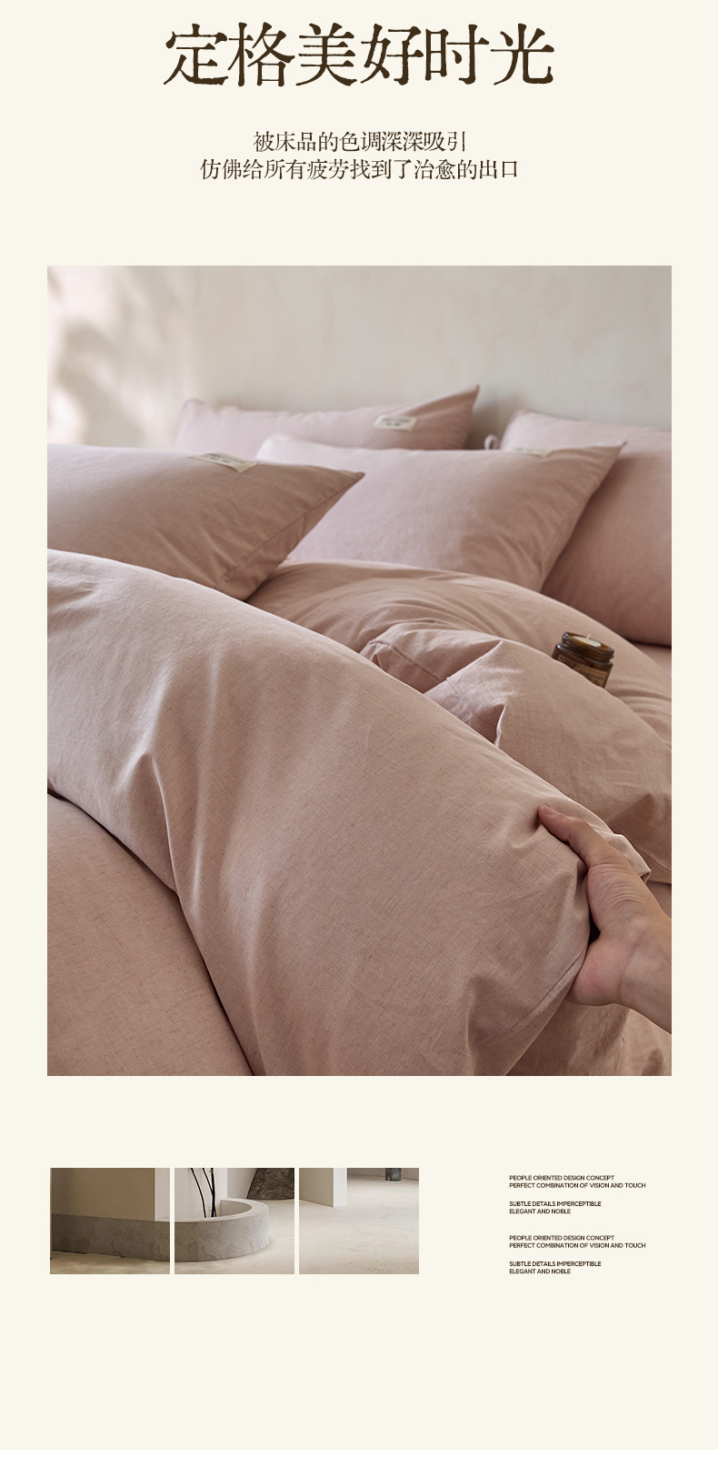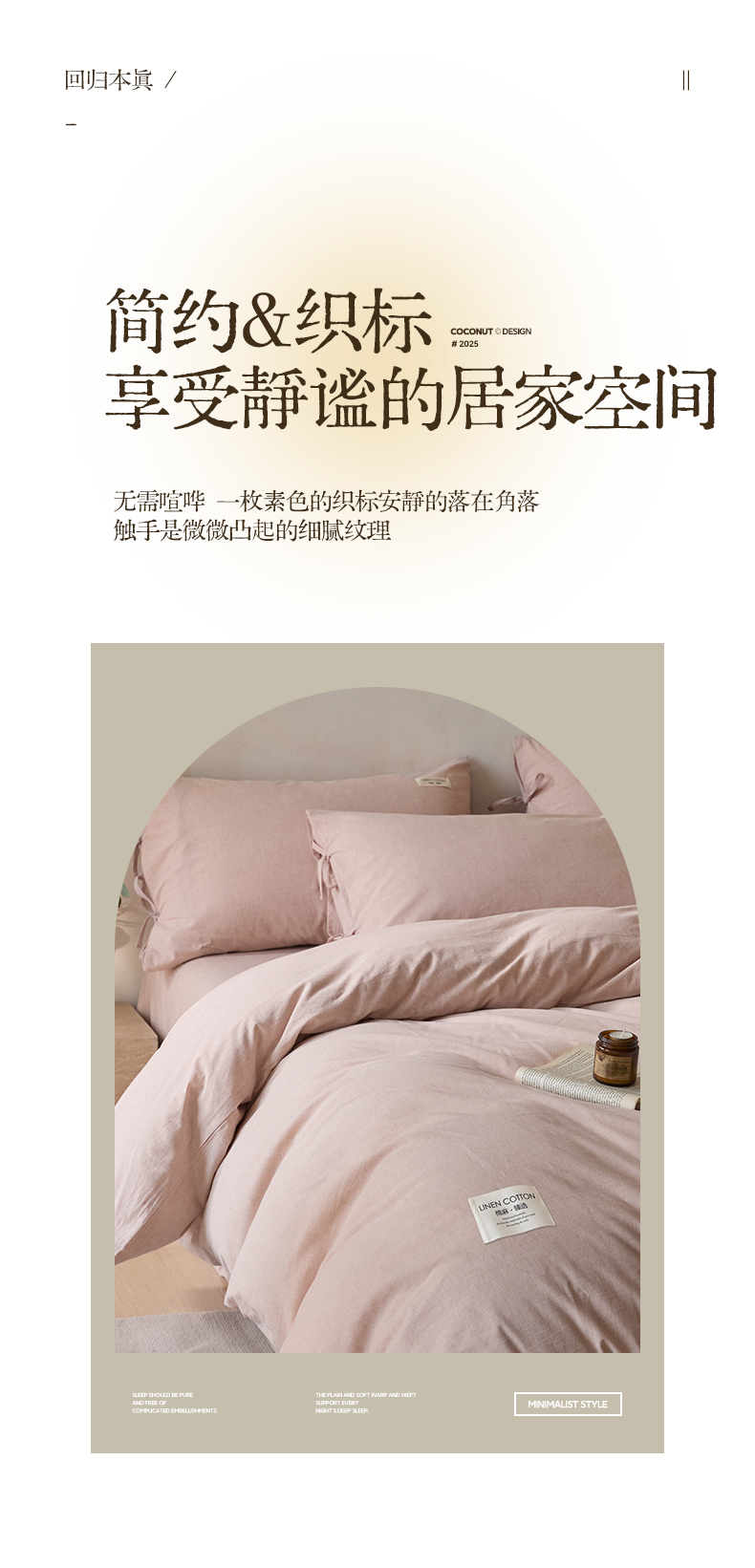 商品名称:涵宸家纺 2025新款色织棉麻四件套系列-单被套 原点-浅粉