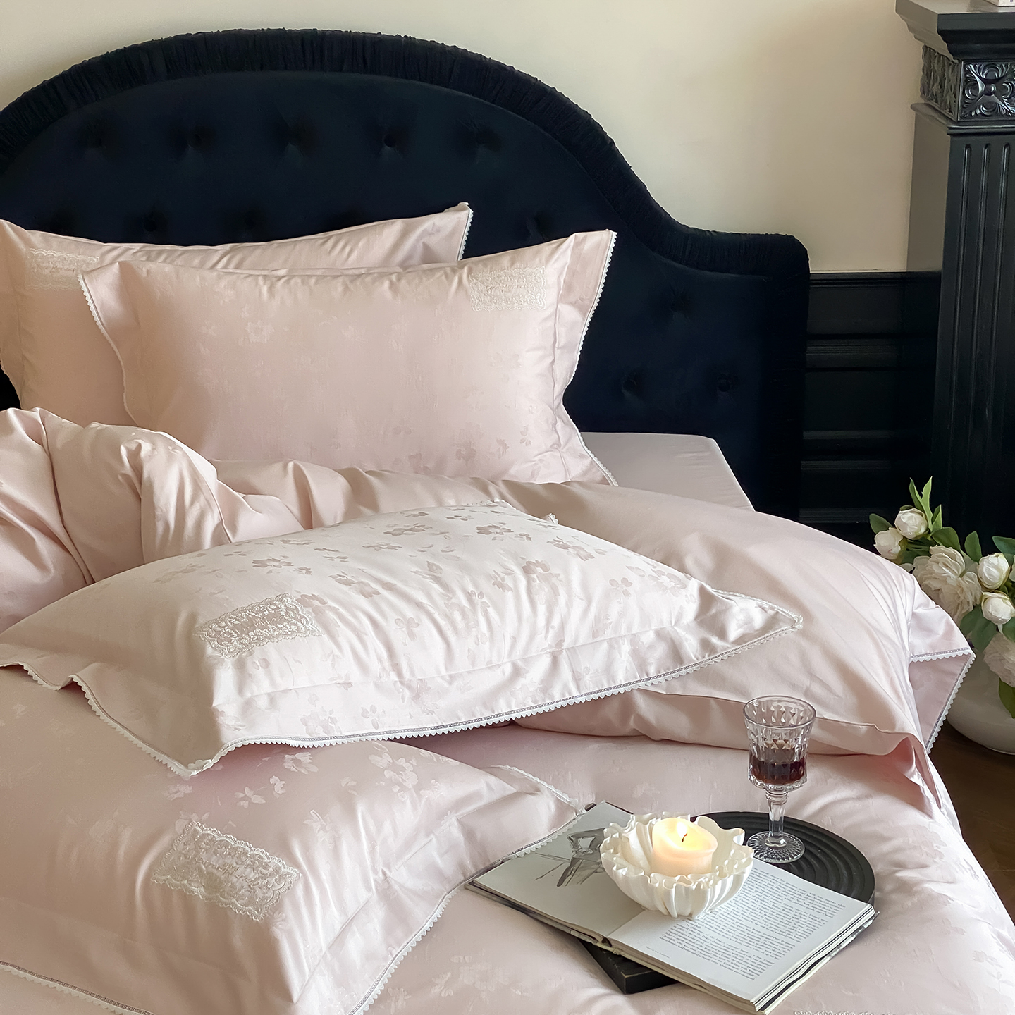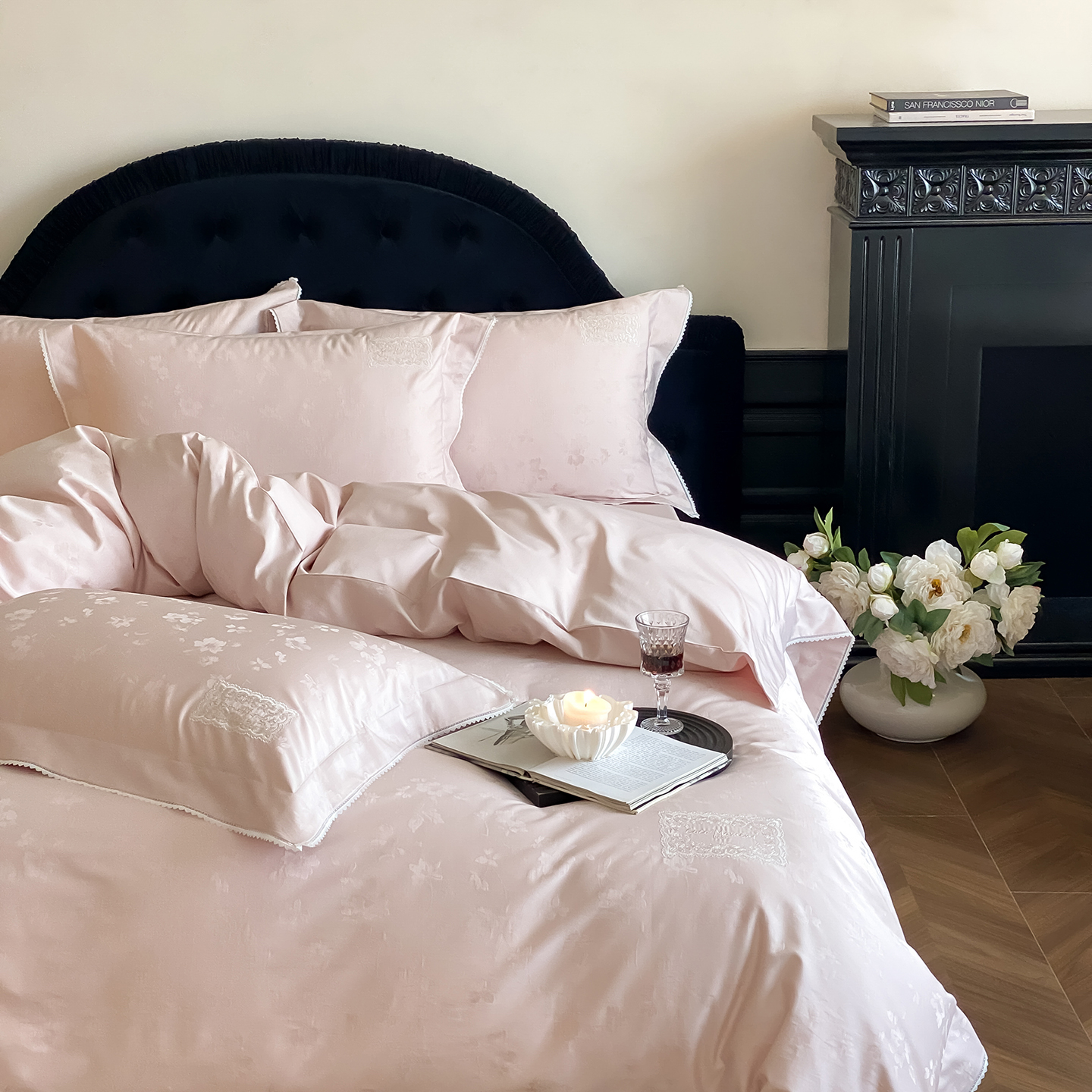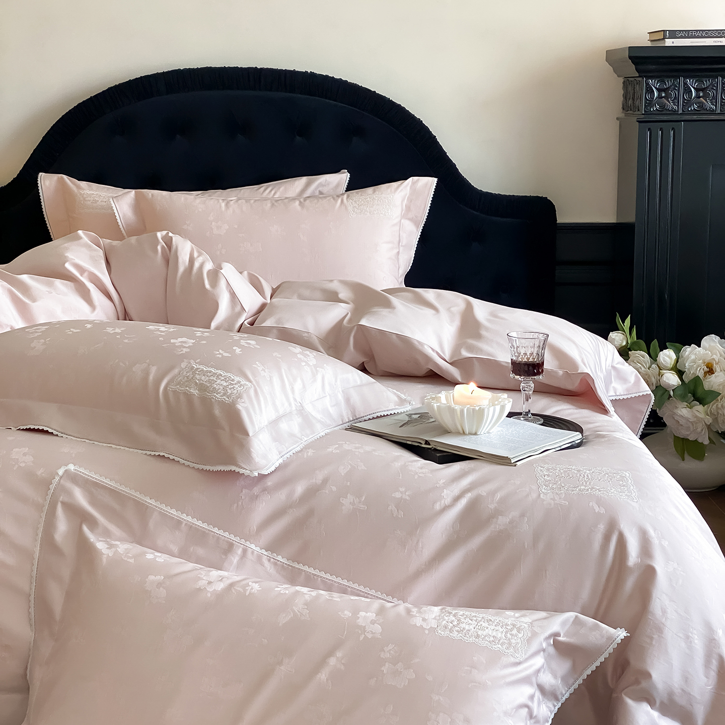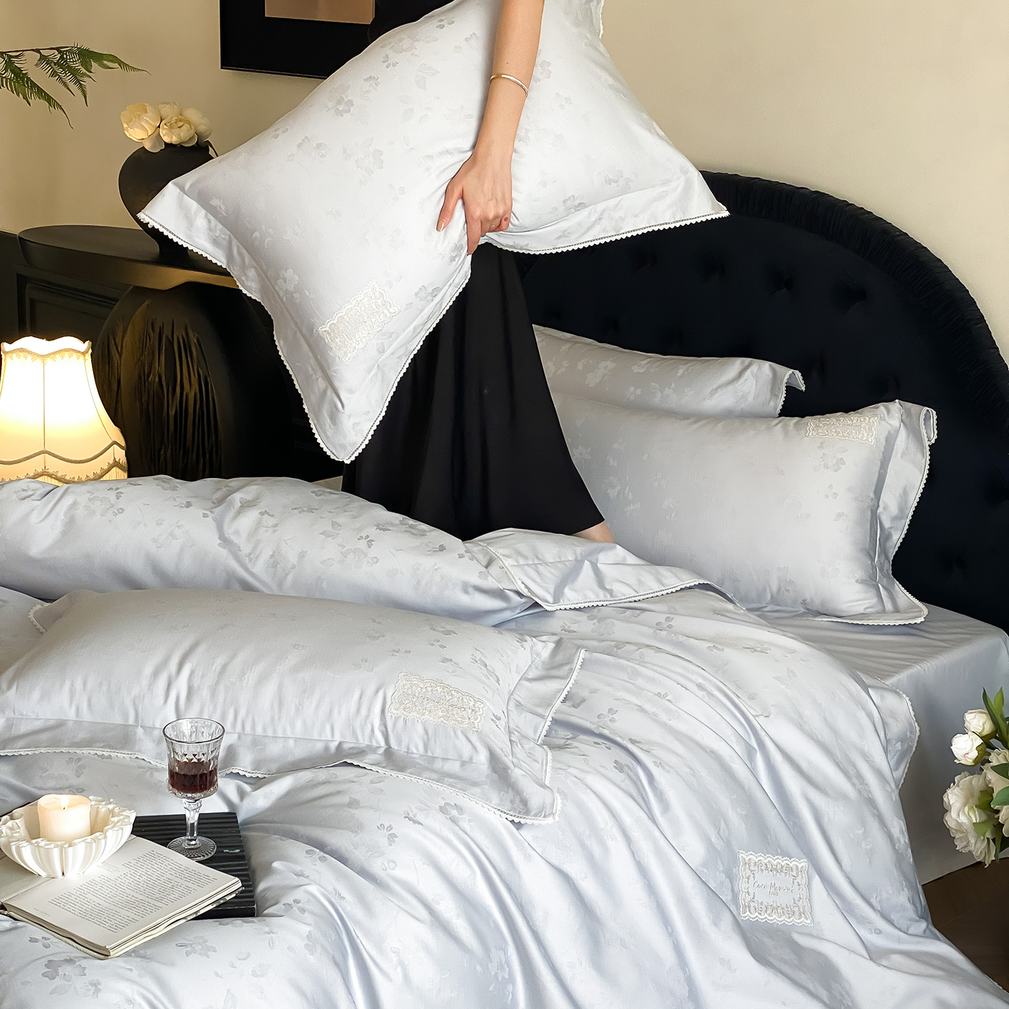 (总)太古汇家居 2025新款打孔镂空宽边格拉夫系列四件套,格拉夫-粉,格拉夫-红,格拉夫-蓝,格拉夫-米白
