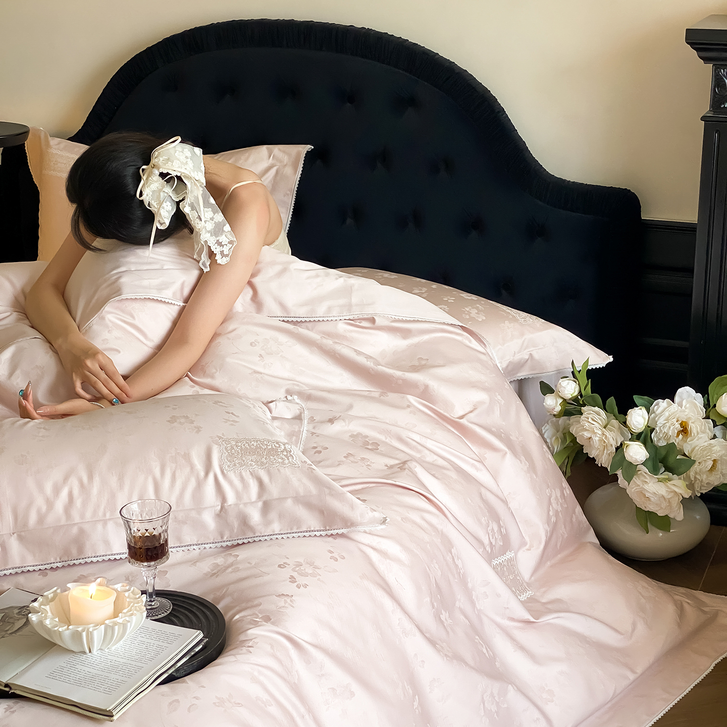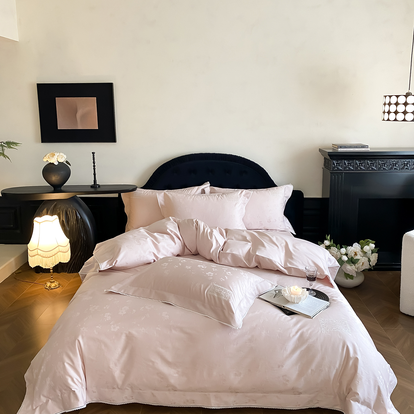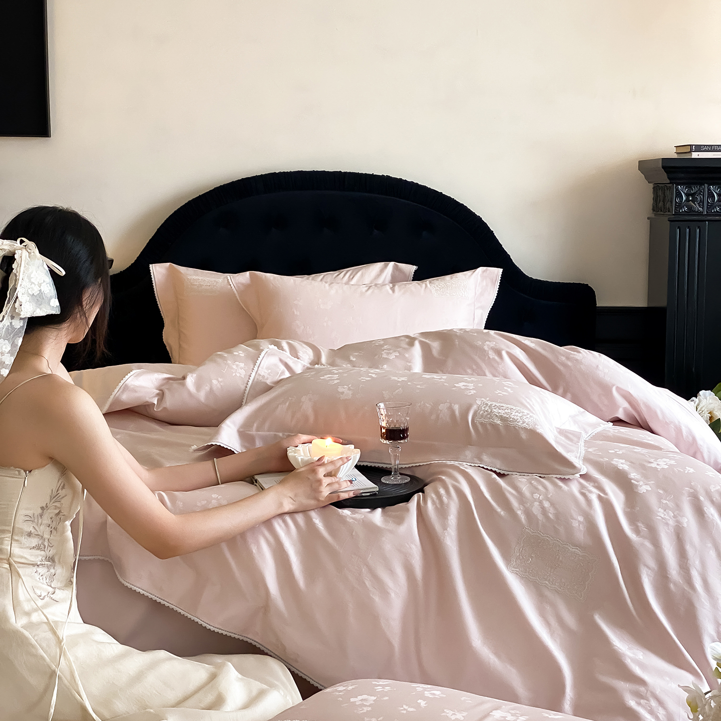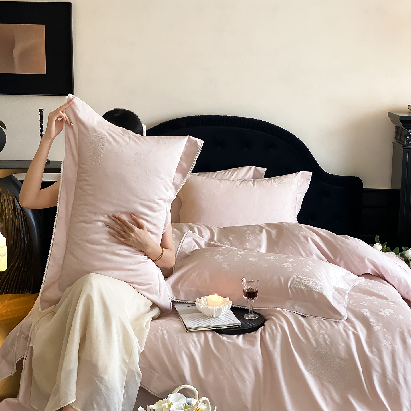 (总)太古汇家居 2025新款打孔镂空宽边格拉夫系列四件套,格拉夫-粉,格拉夫-红,格拉夫-蓝,格拉夫-米白