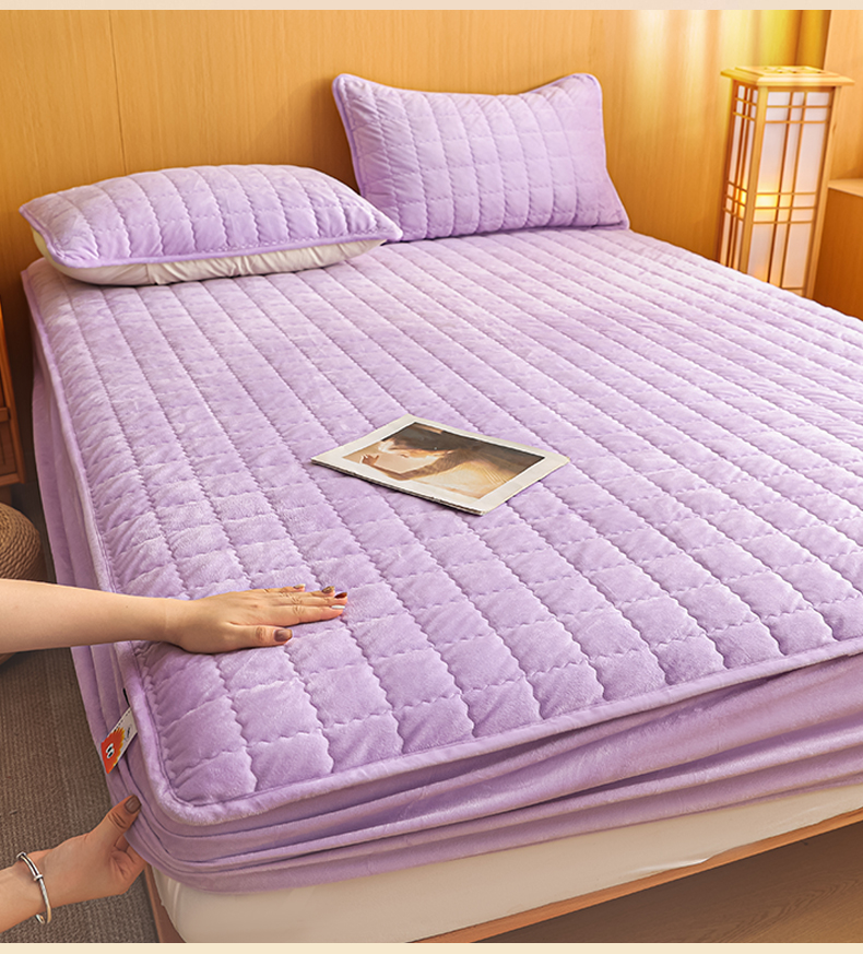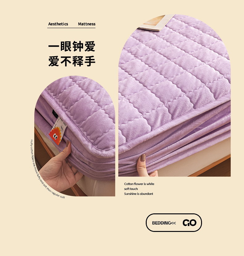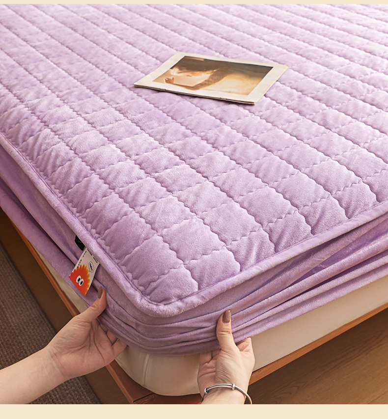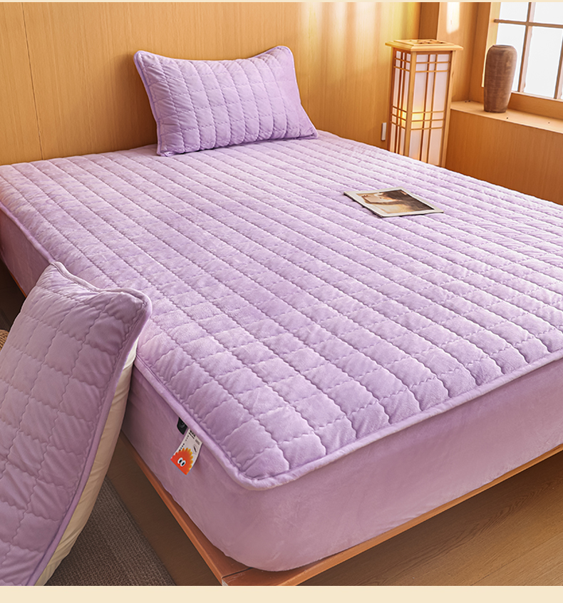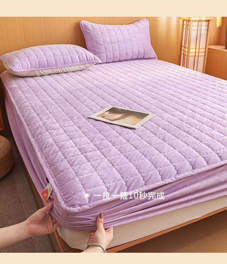 潮邦创意家居 2025新款婴儿绒夹棉床笠单品单件床垫保护套 芋泥紫