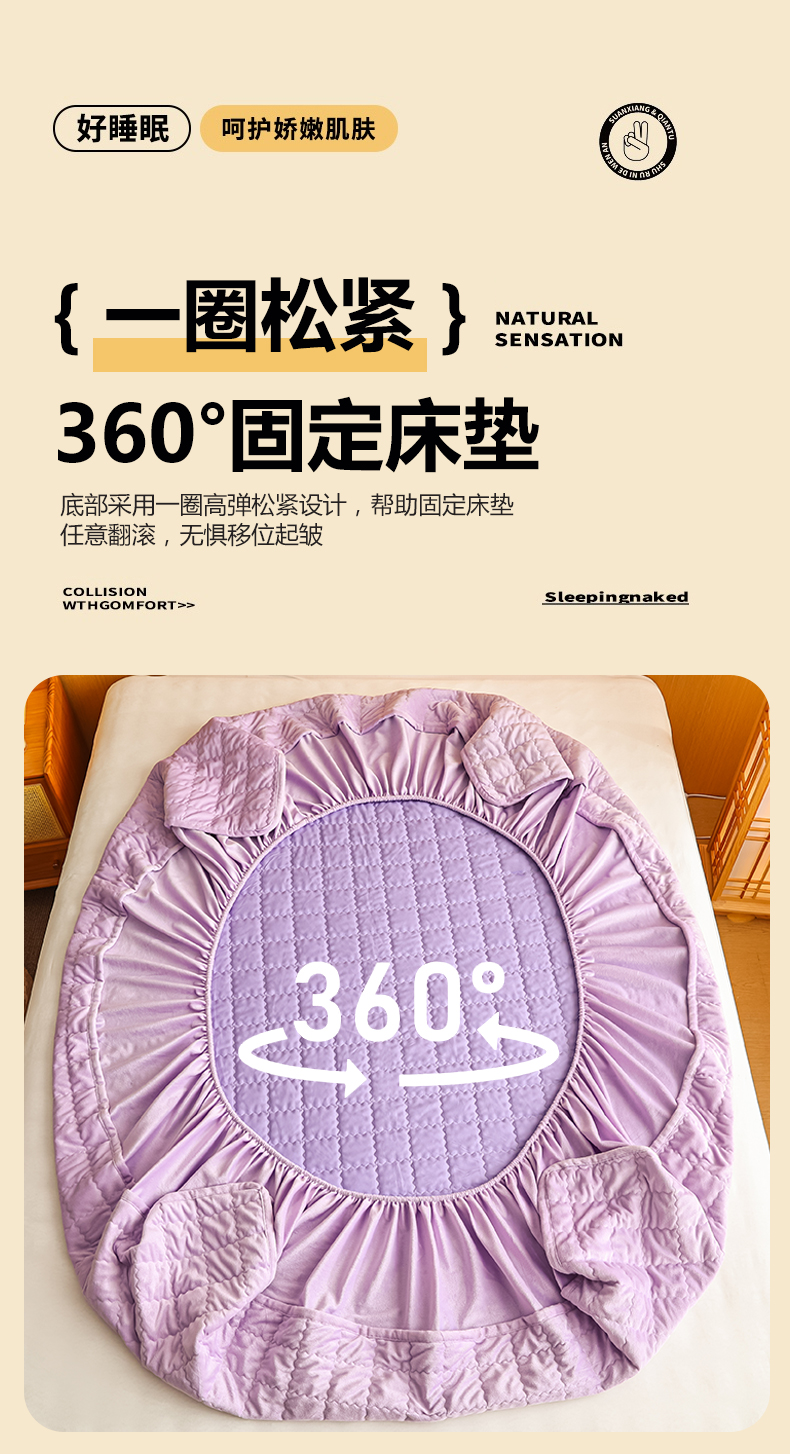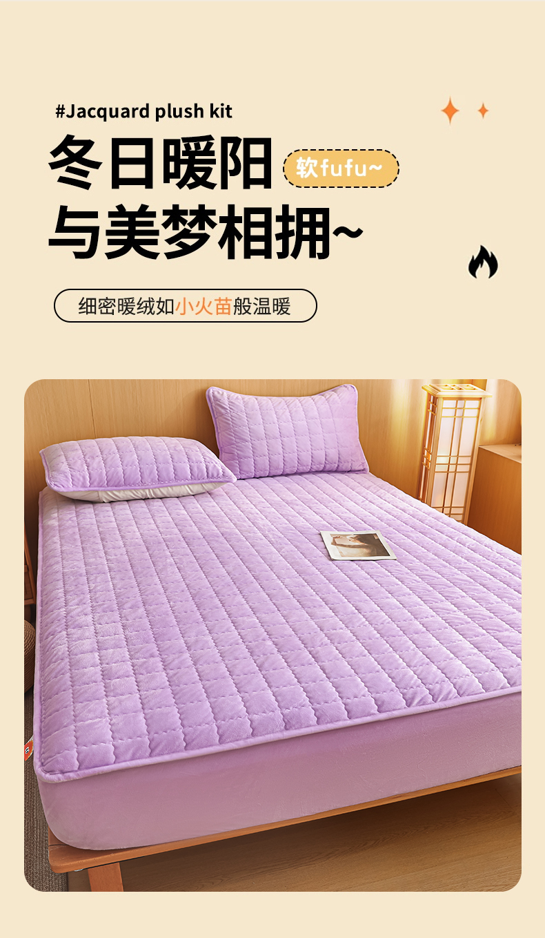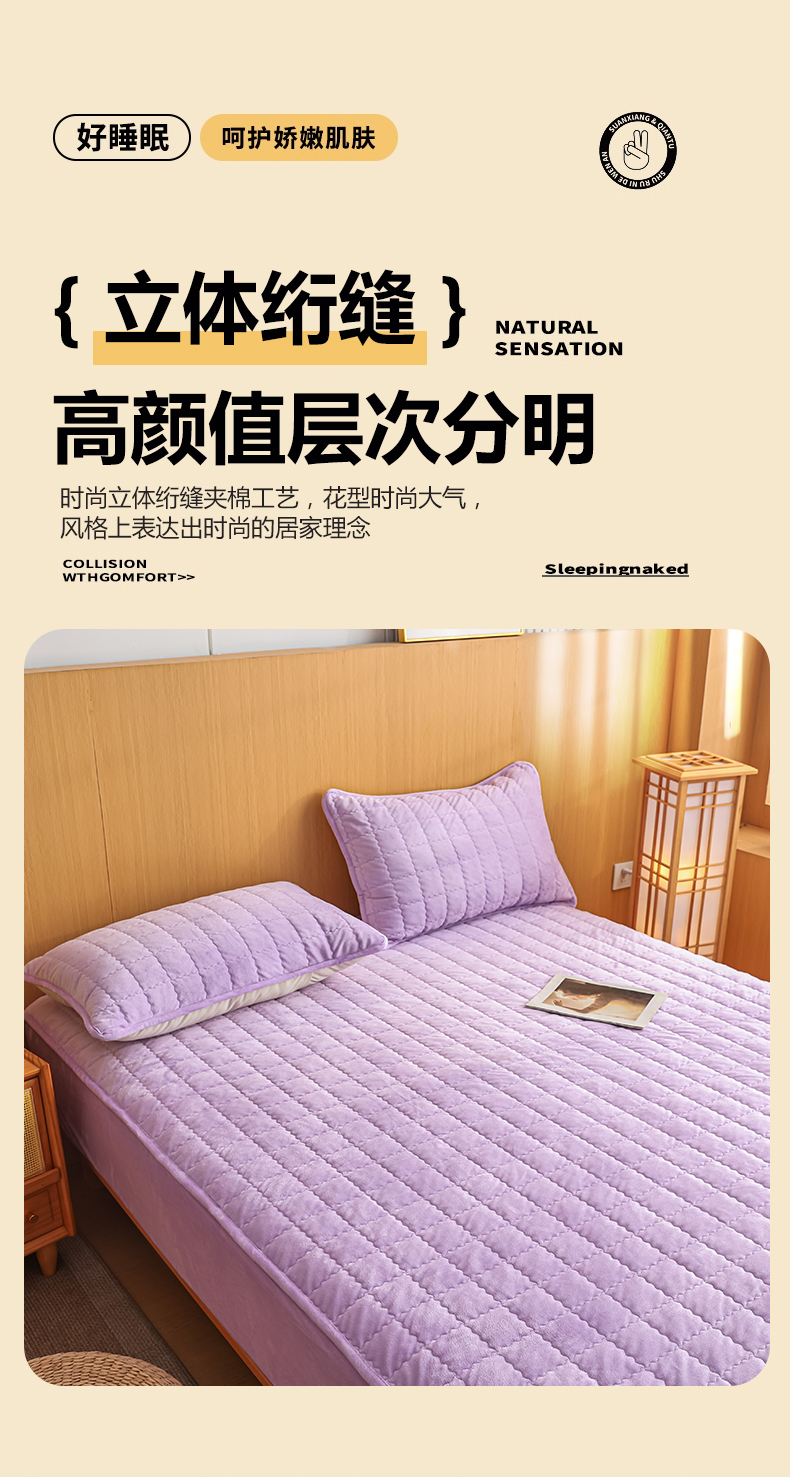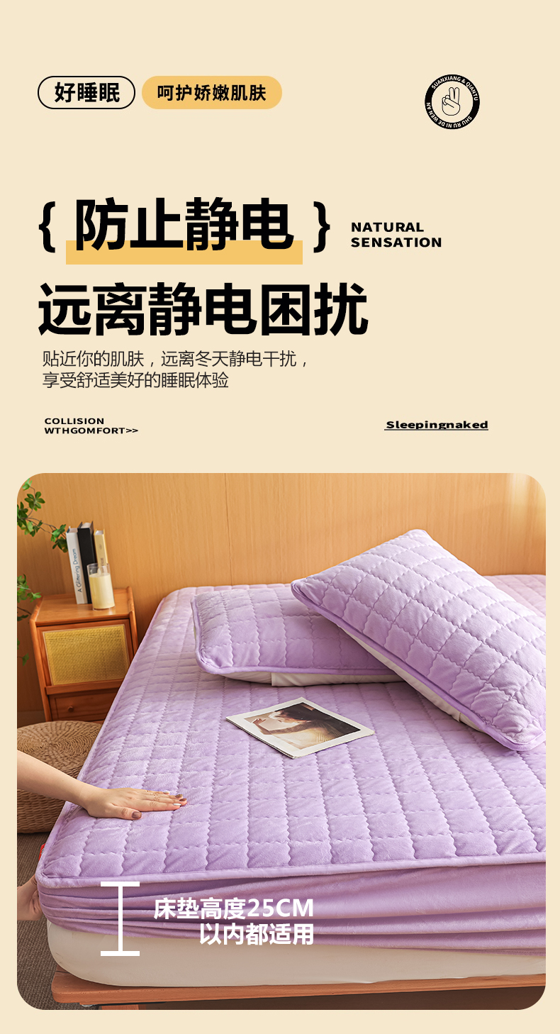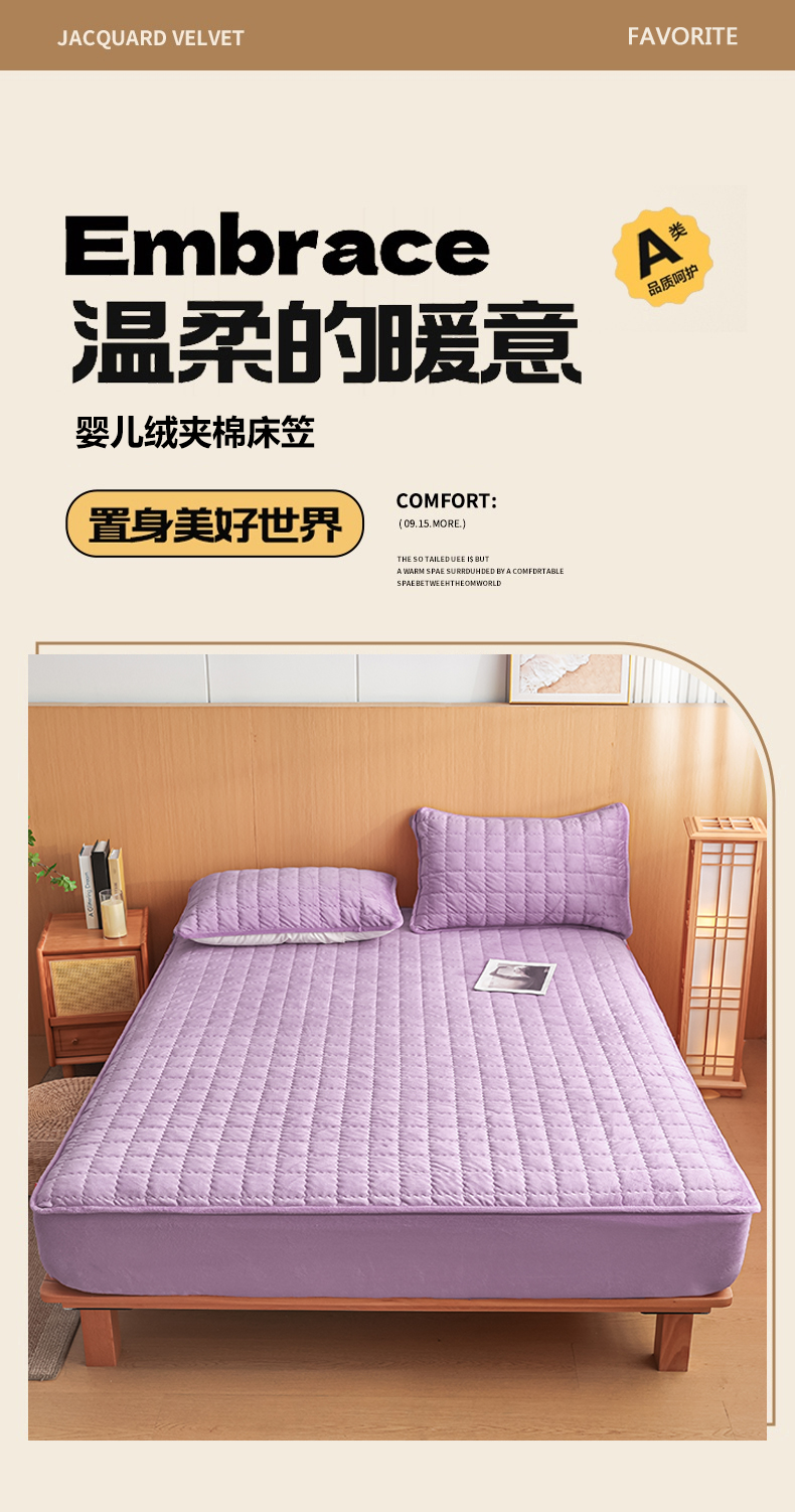 商品名称:潮邦创意家居 2025新款婴儿绒夹棉床笠单品单件床垫保护套 芋泥紫