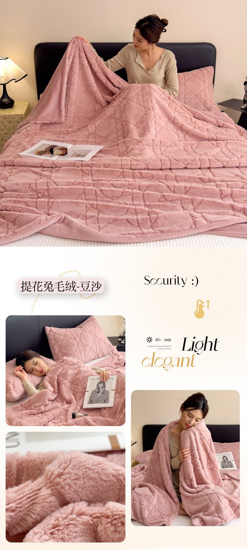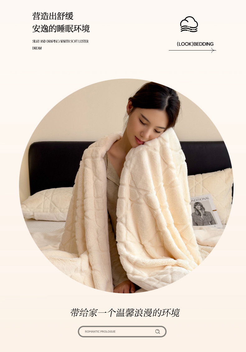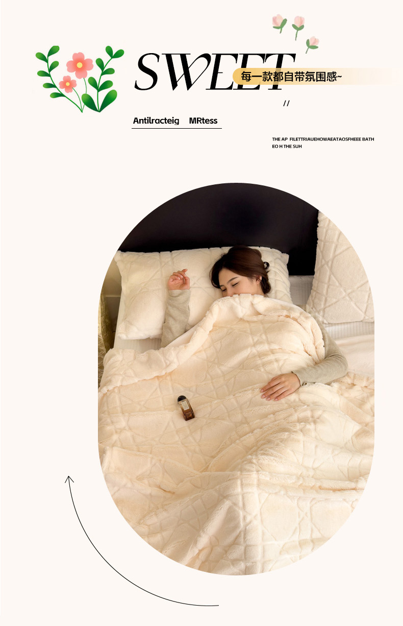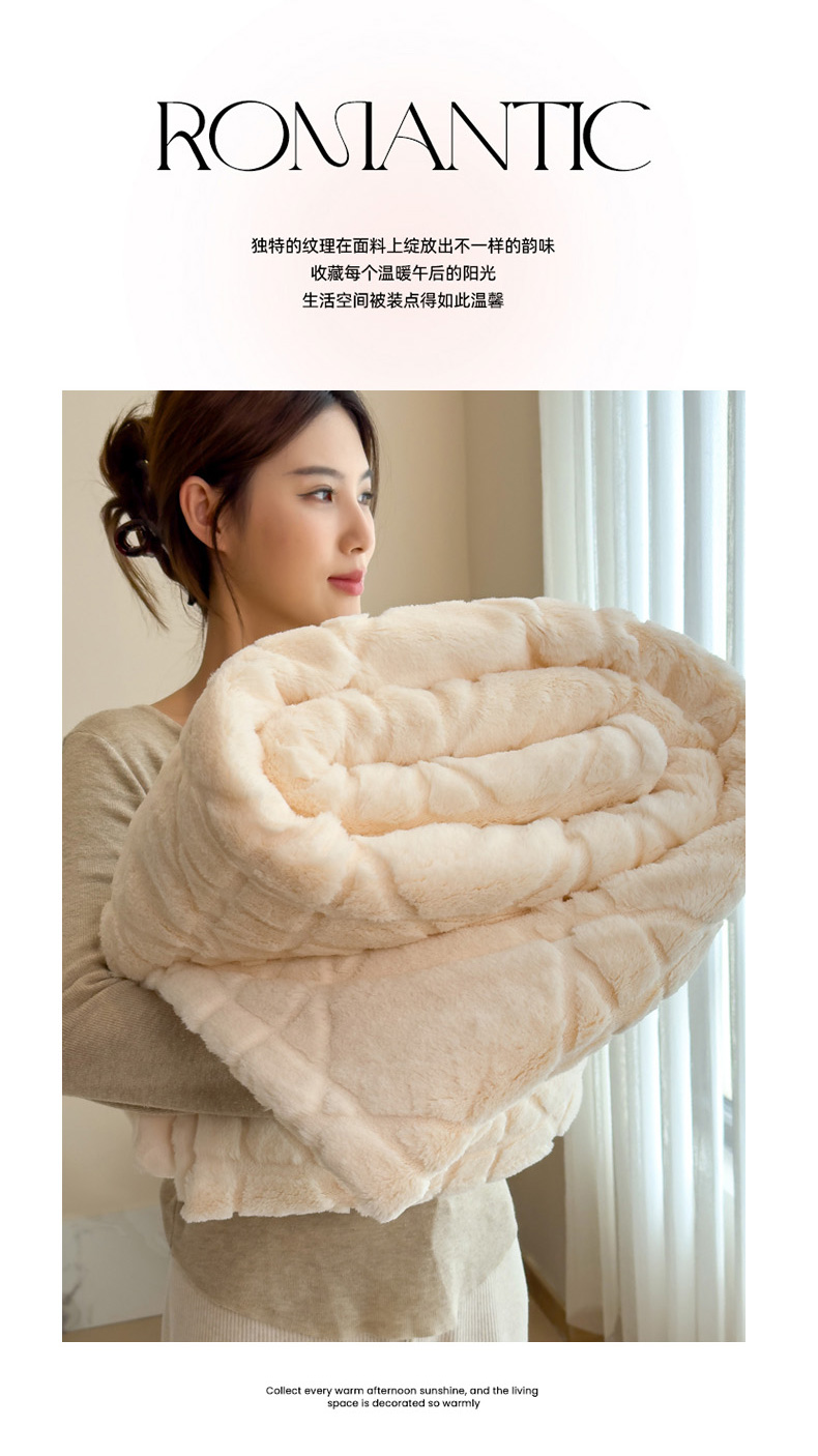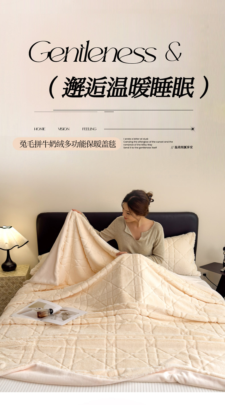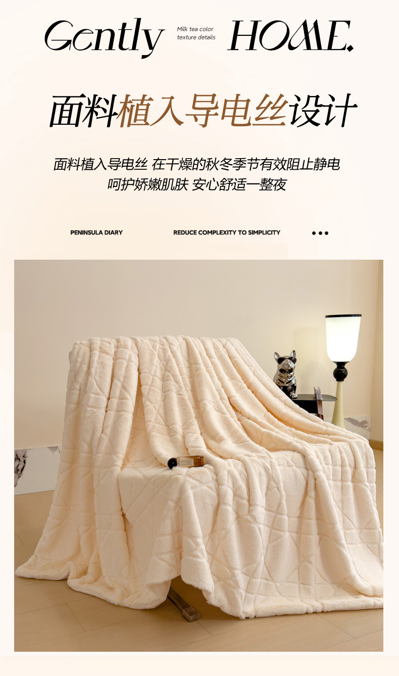 商品名称:印季家纺 2025新款双层提花兔毛绒毛毯毯子 提花兔毛绒-奶白