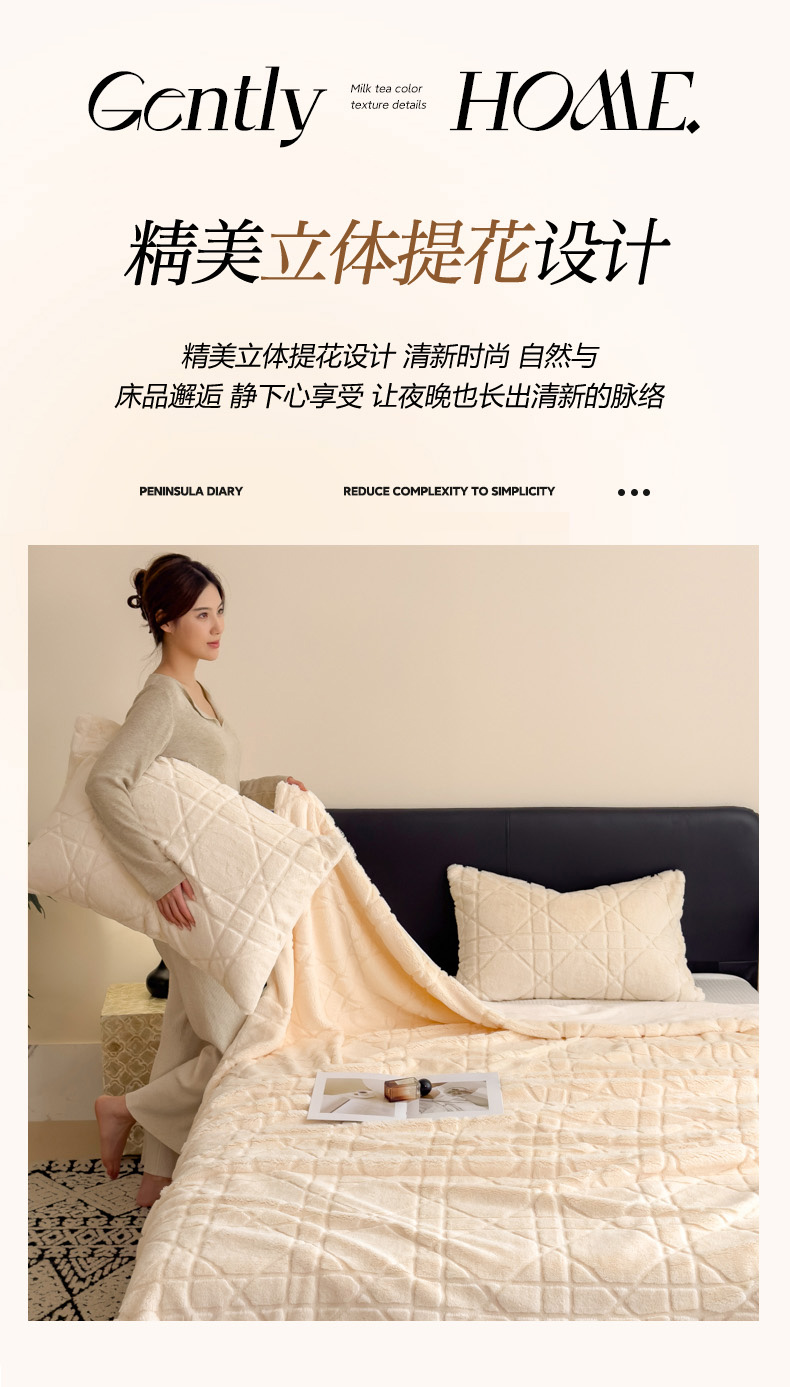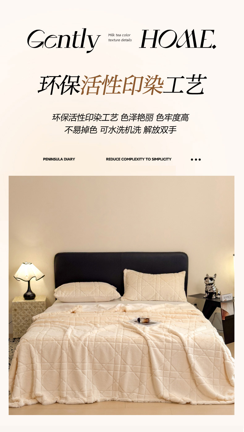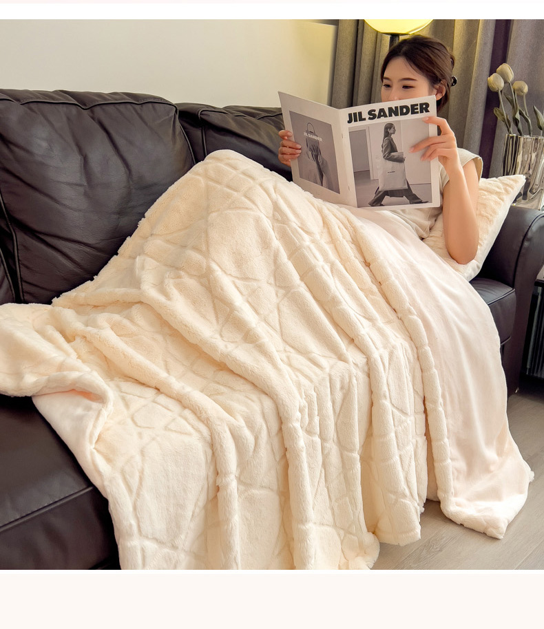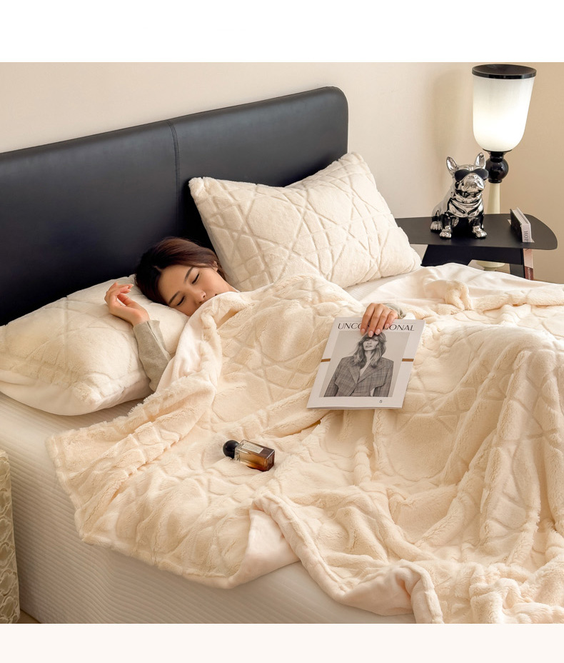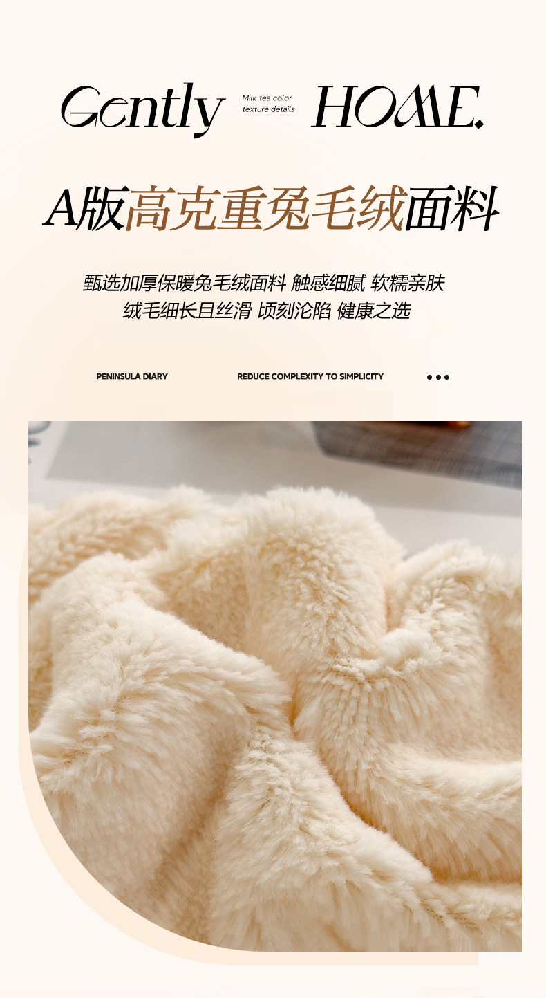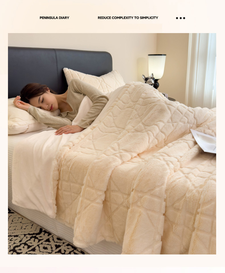 商品名称:印季家纺 2025新款双层提花兔毛绒毛毯毯子 提花兔毛绒-奶白