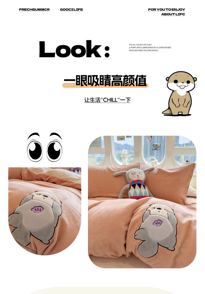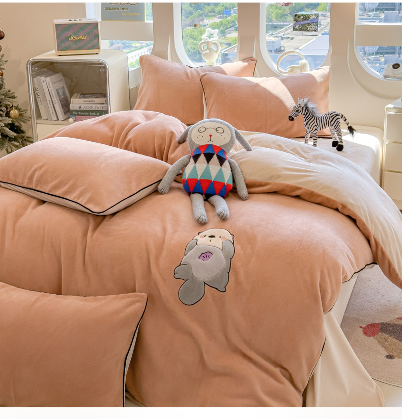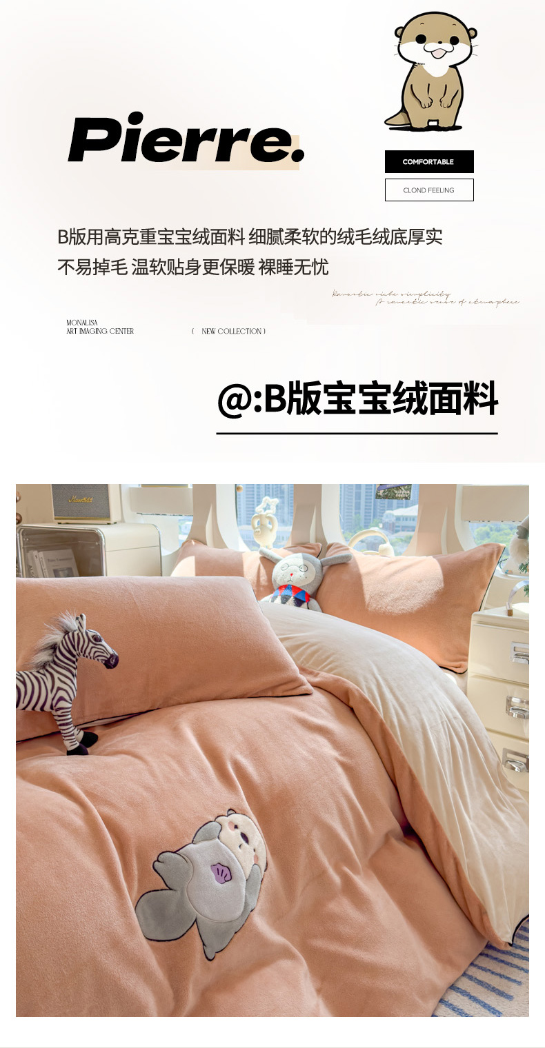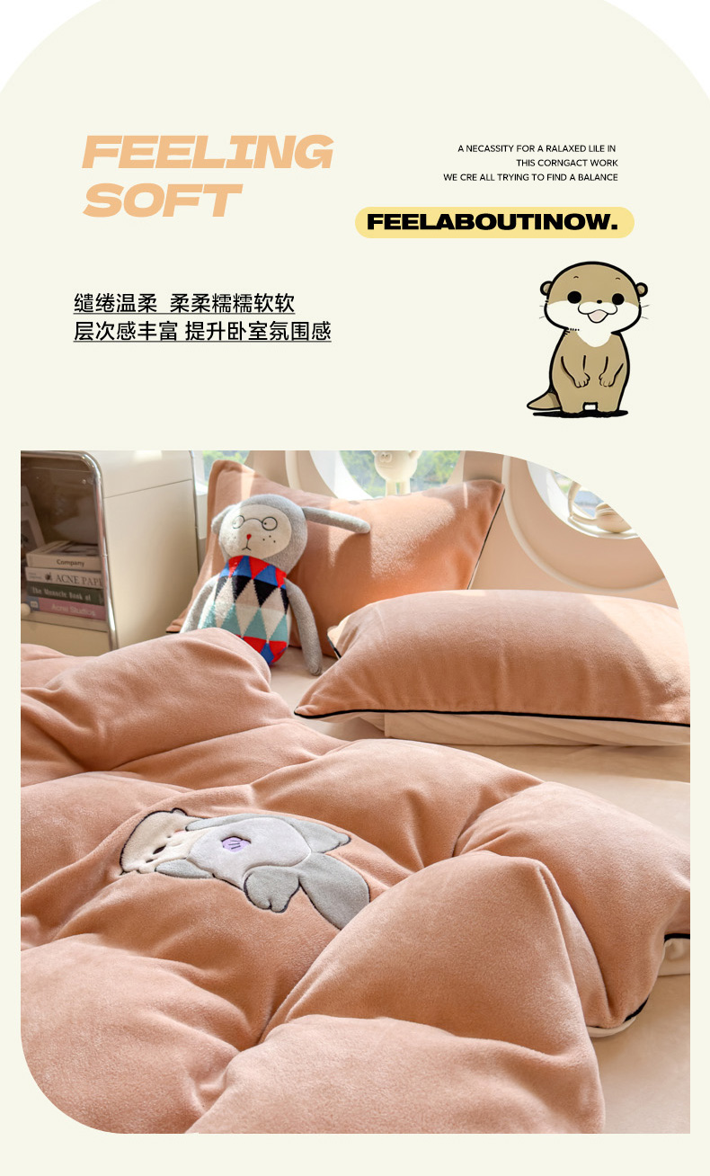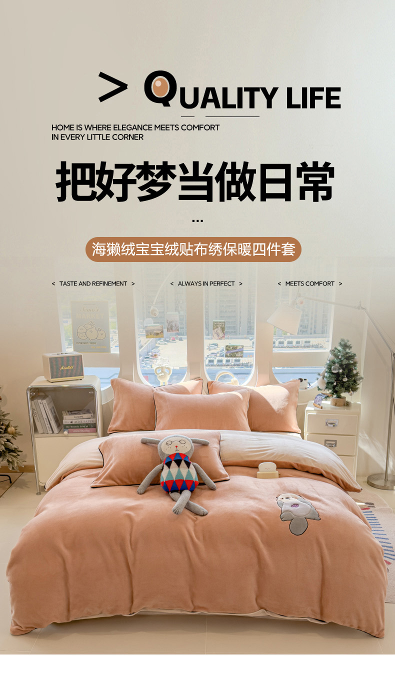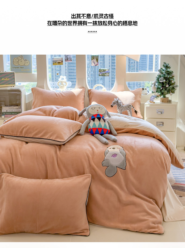 当前位置: 91家纺网 > 商品网购 > 床品套件 > 四件套 > 其它四件套 > 印季家纺 2025新款大肚腩-海獭绒贴布绣四件套 大肚腩-香槟金-浅棕