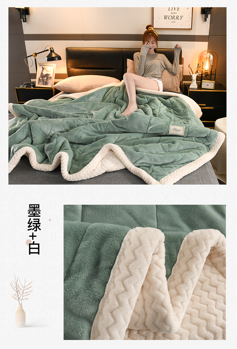 印季家纺 2025秋冬新款三层夹棉加厚复合贝贝绒毛毯毯子多功能盖毯 墨绿+灰