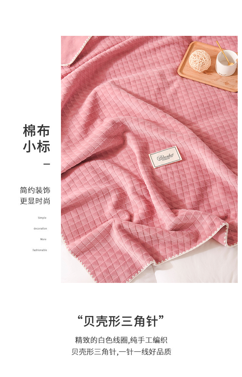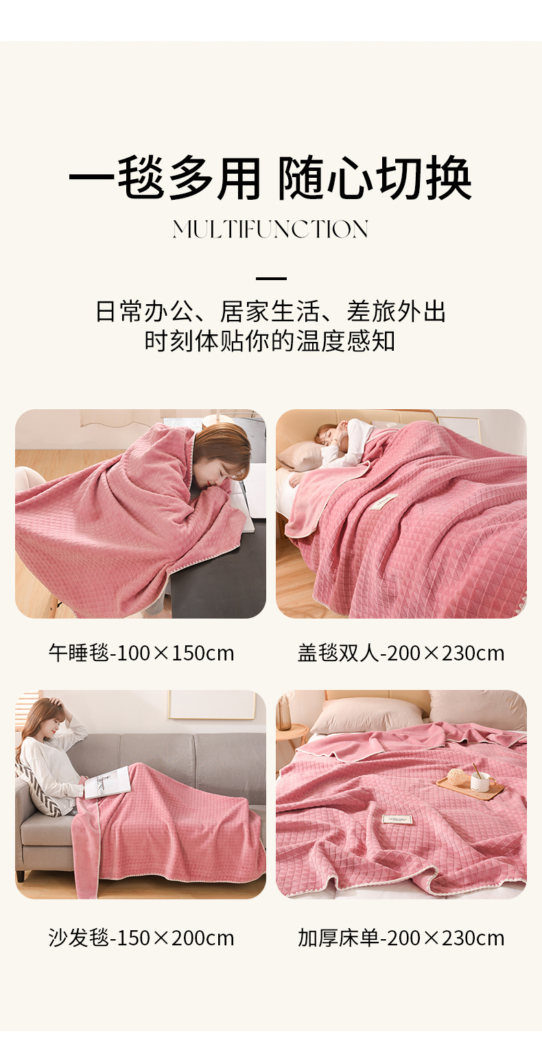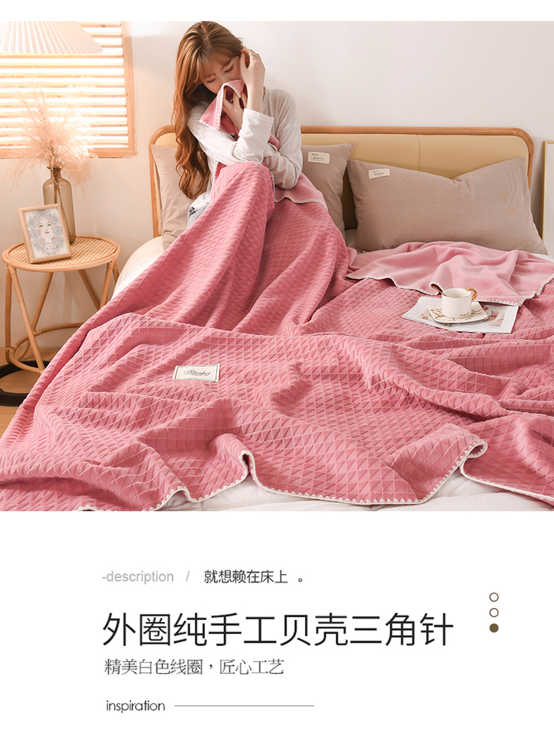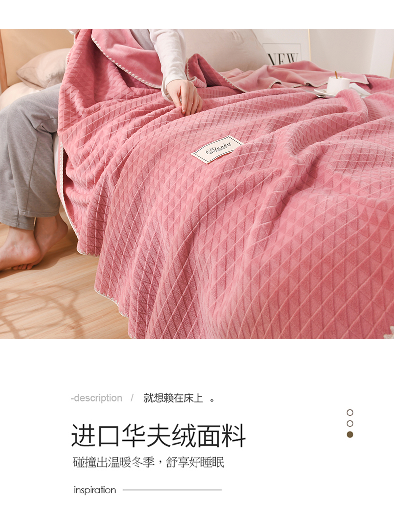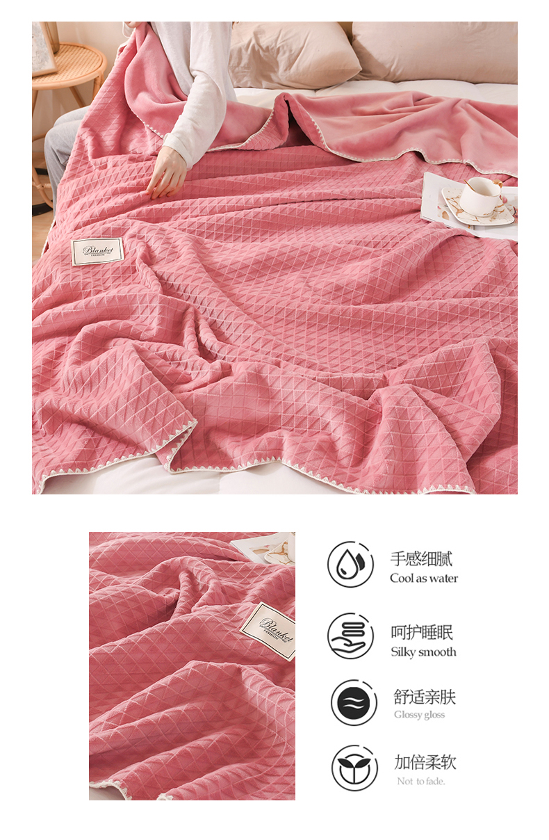 商品名称:印季家纺 2025新款华夫格牛奶绒复合毛毯毯子 渐变格-嫩粉