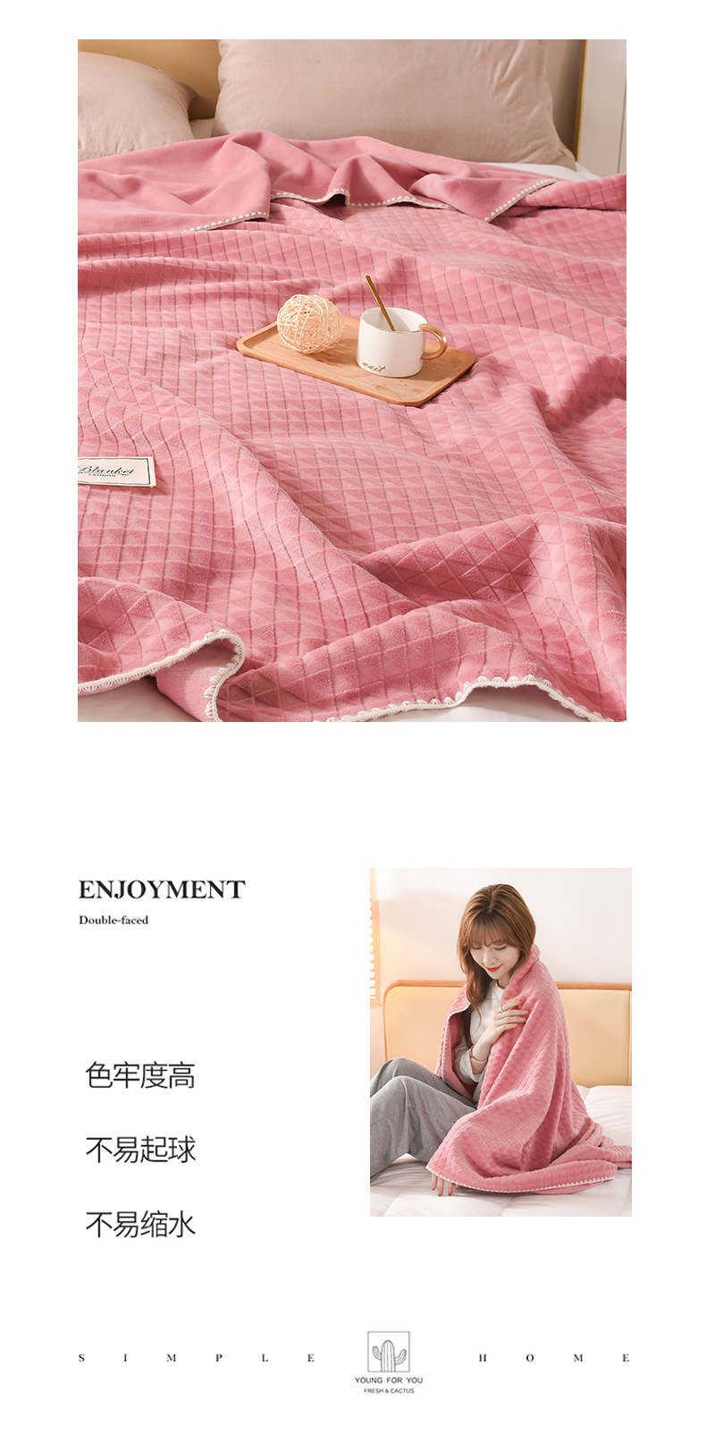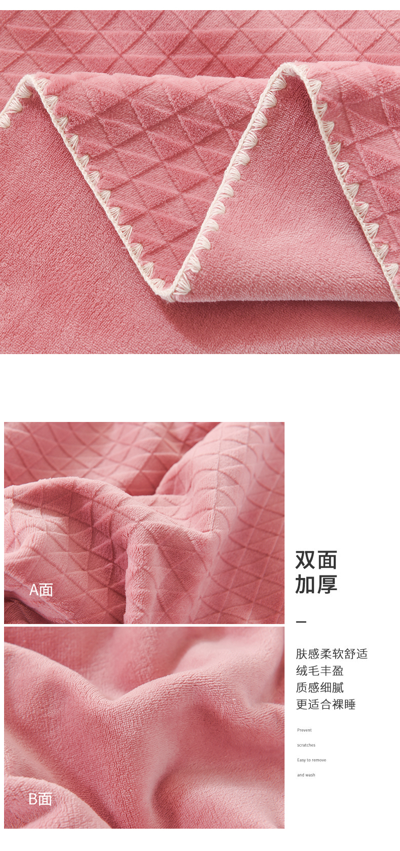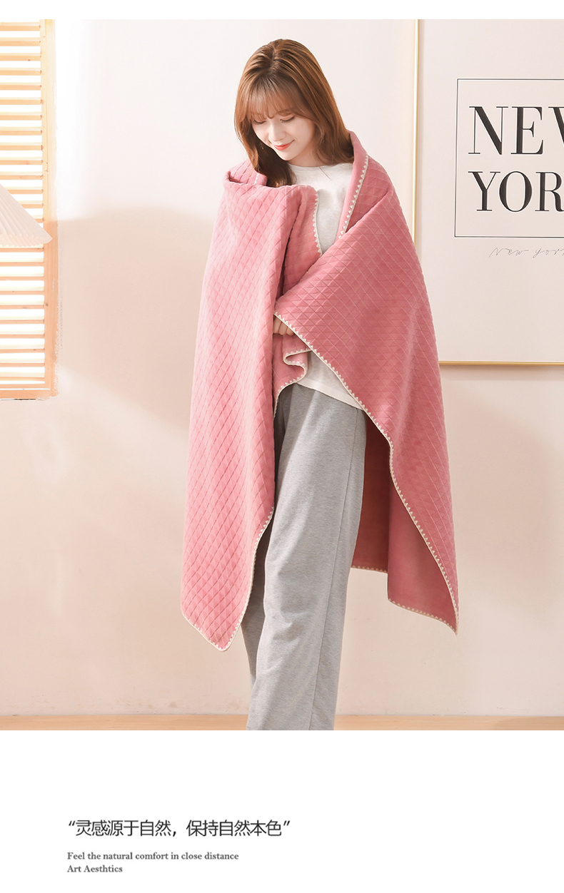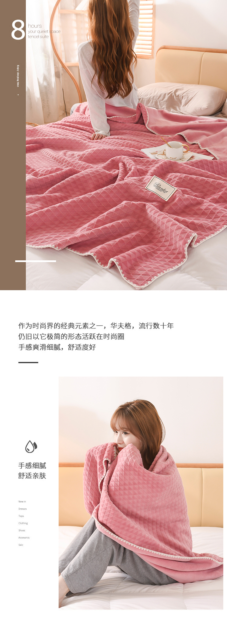 商品名称:印季家纺 2025新款华夫格牛奶绒复合毛毯毯子 渐变格-嫩粉