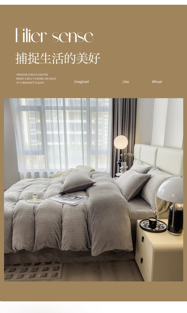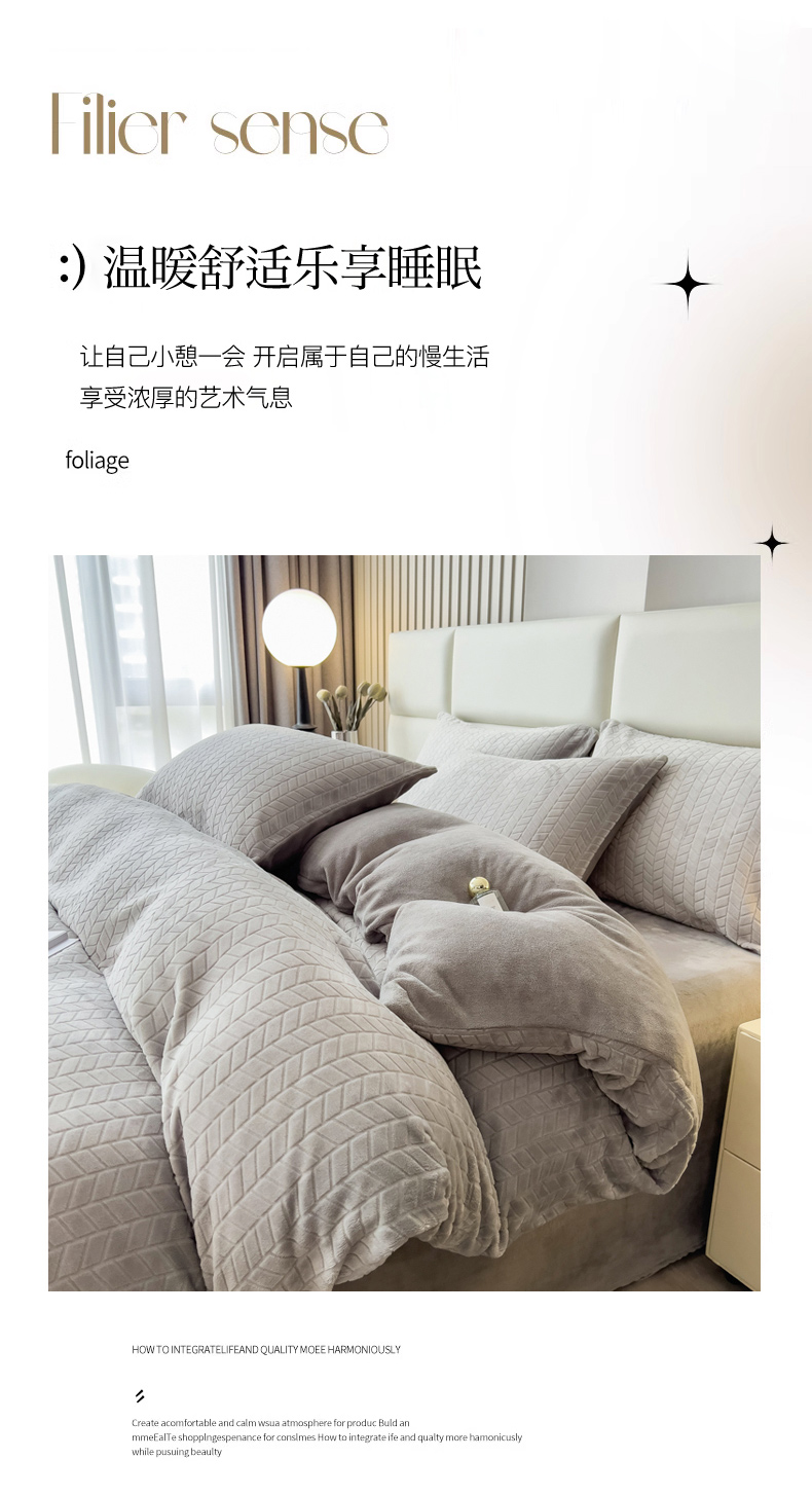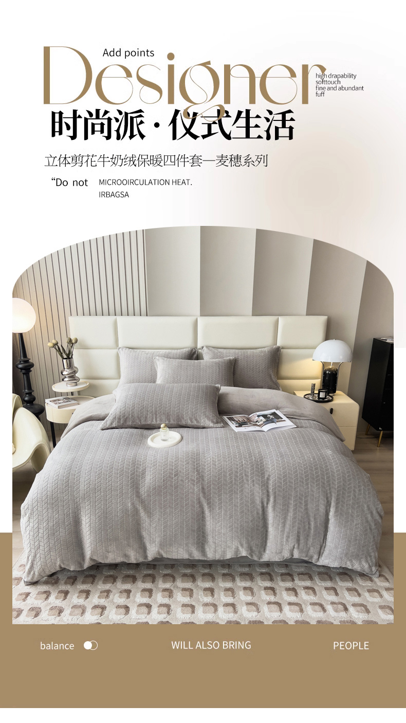当前位置: 91家纺网 > 商品网购 > 床品套件 > 四件套 > 牛奶绒四件套 > 印季家纺 2025新款立体剪花麦穗牛奶绒四件套 高级灰