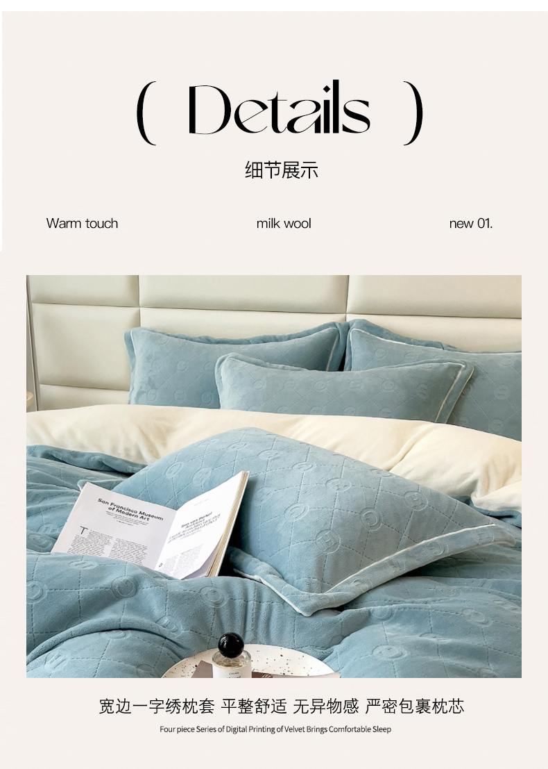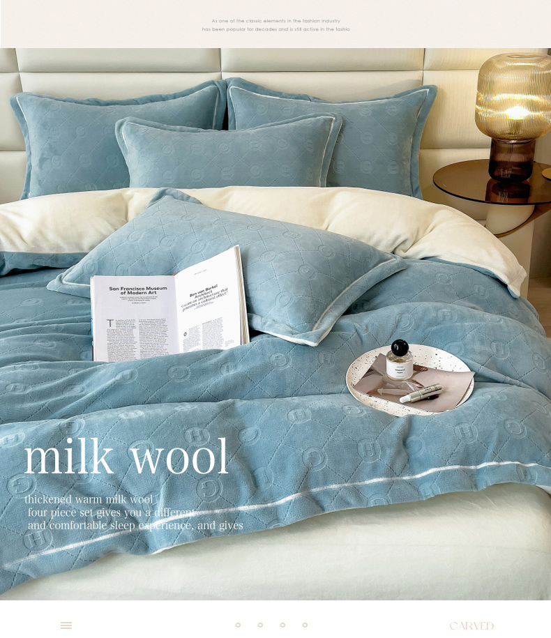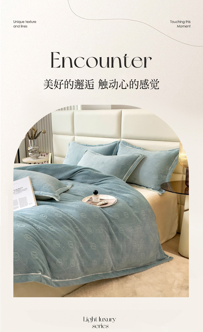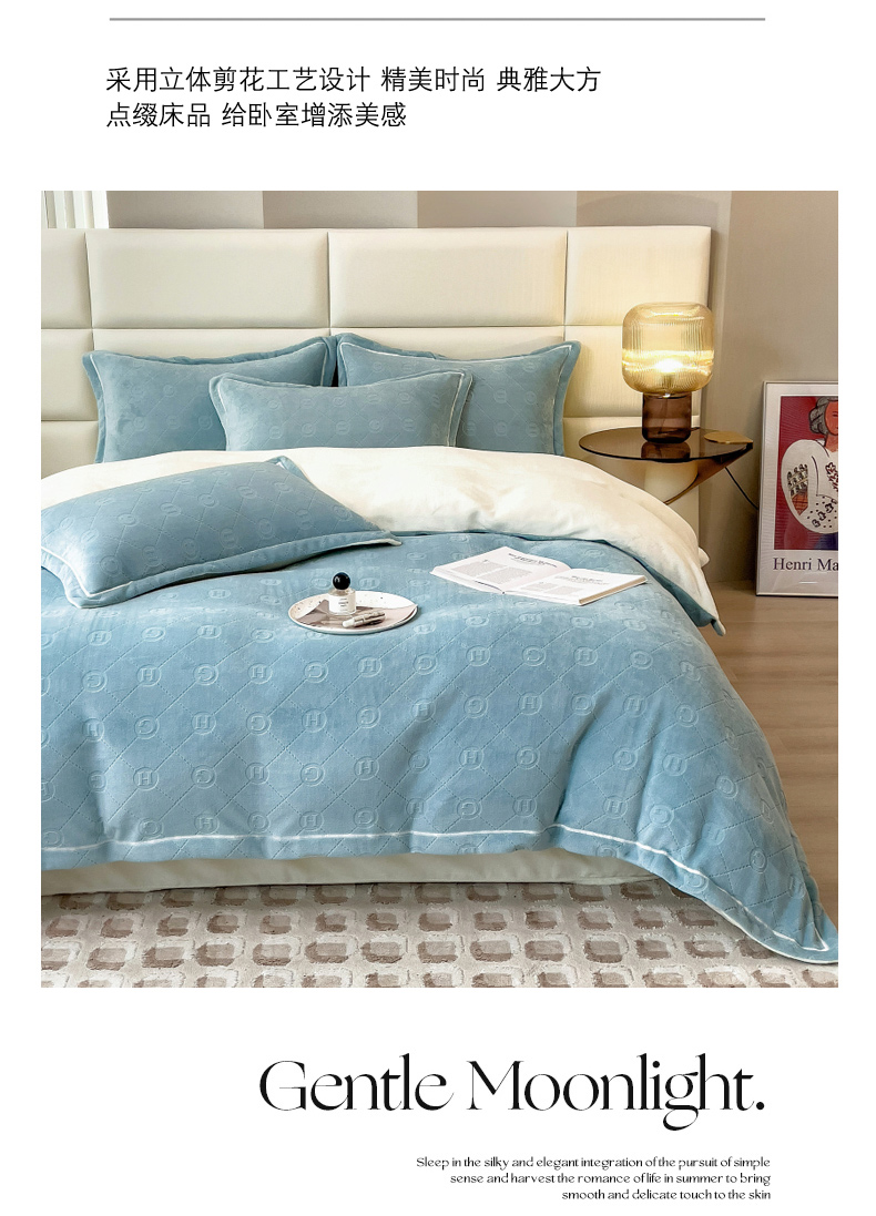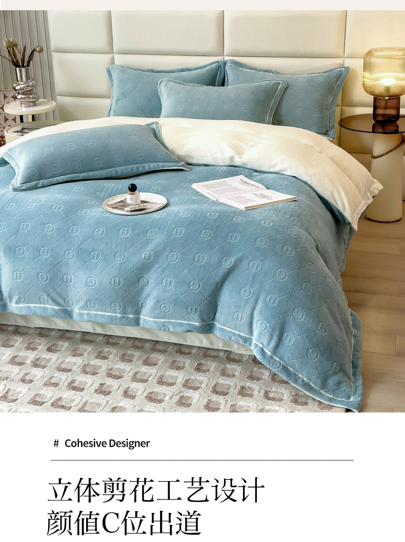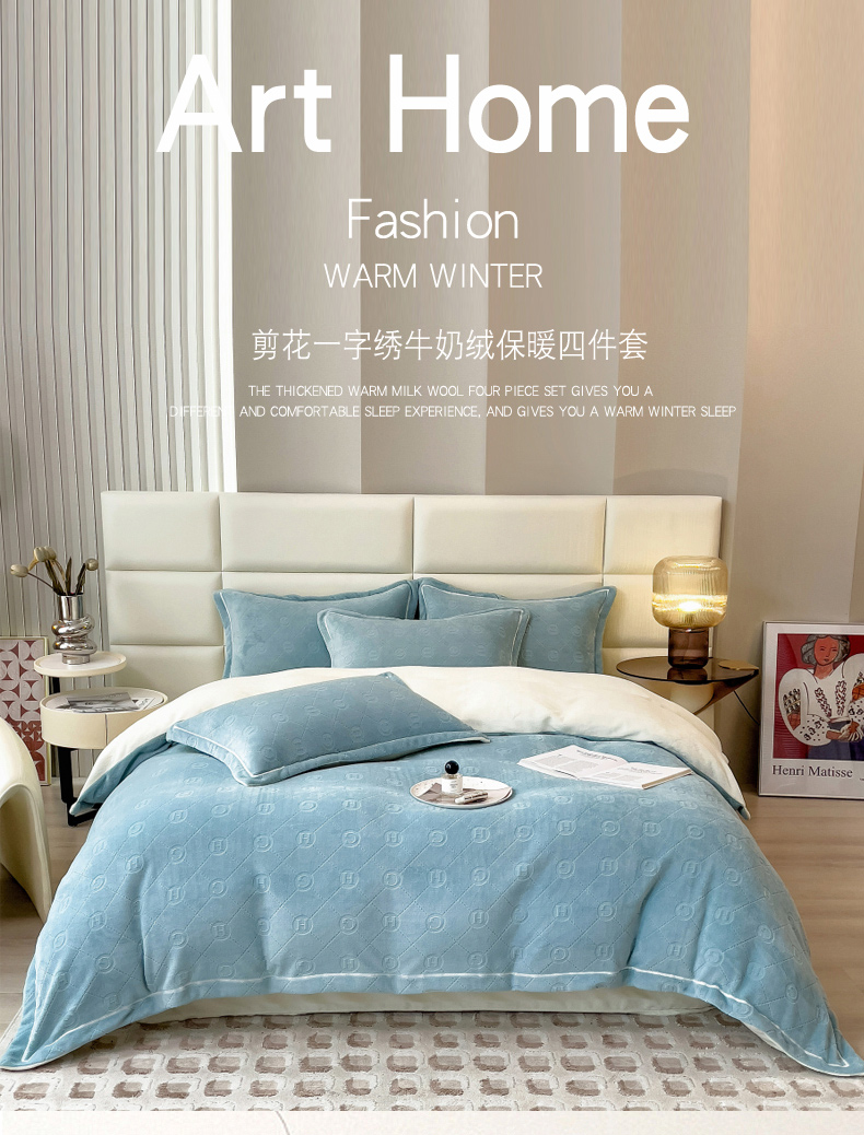 当前位置: 91家纺网 > 商品网购 > 床品套件 > 四件套 > 牛奶绒四件套 > 印季家纺 2025新款HG剪花一字绣牛奶绒四件套 繁星兰-奶白